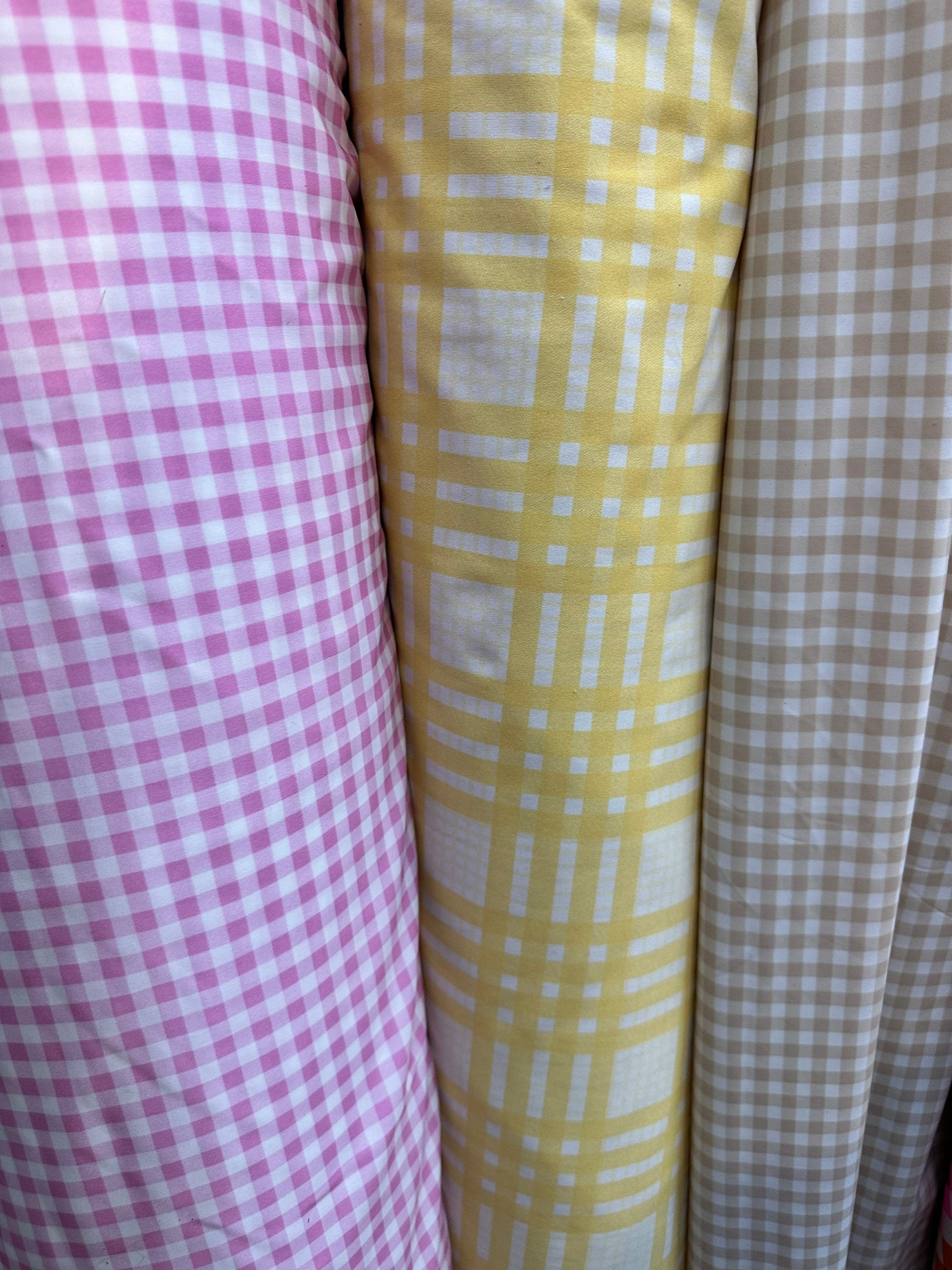 Gingham design print on great quality of nylon spandex 4-way stretch 58/60” Sold by the YD.