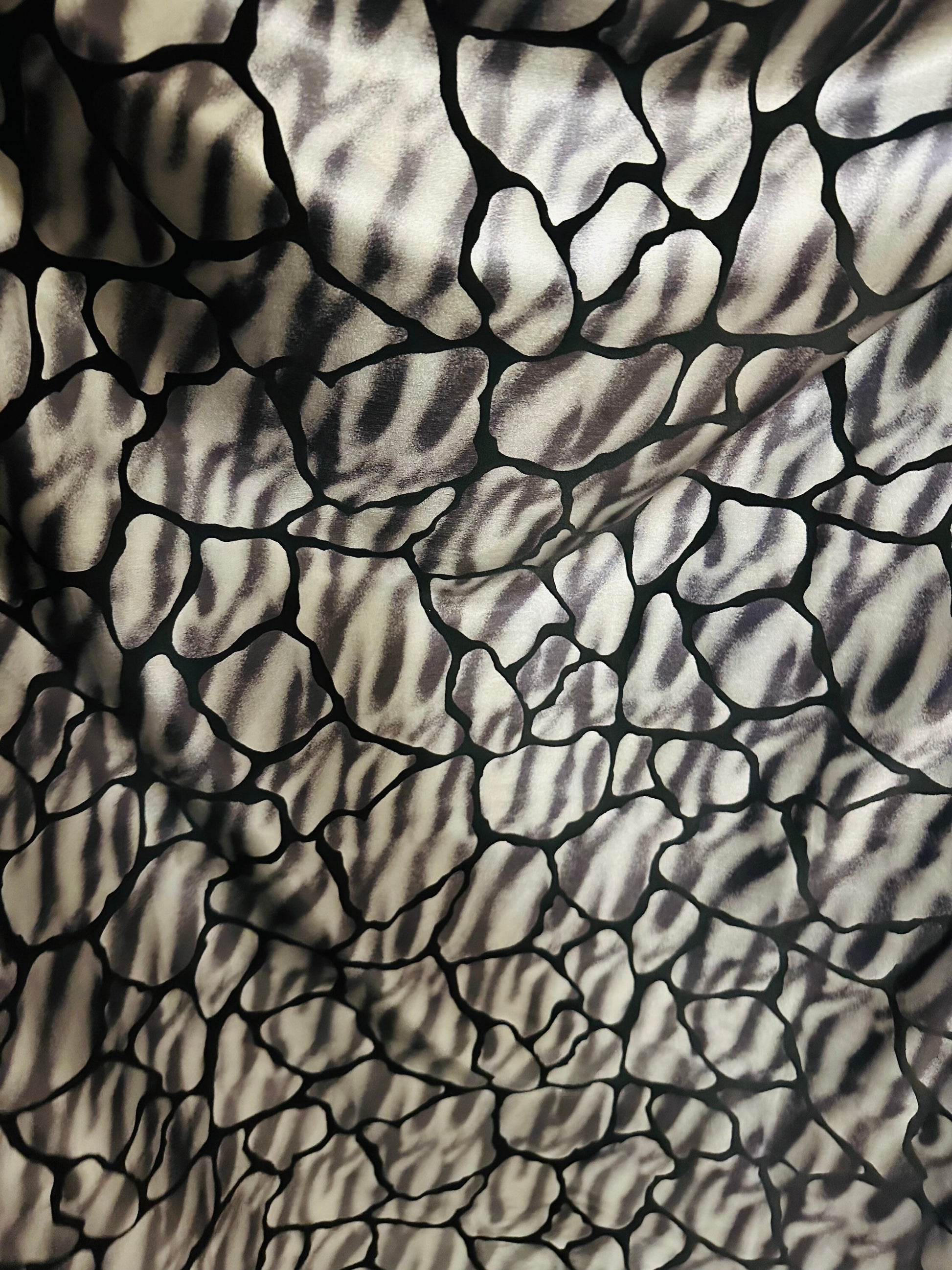 Giraffe abstract design metallic nylon spandex;-way stretch 58/60” Sold by the YD. Ships worldwide from Los Angeles California USA