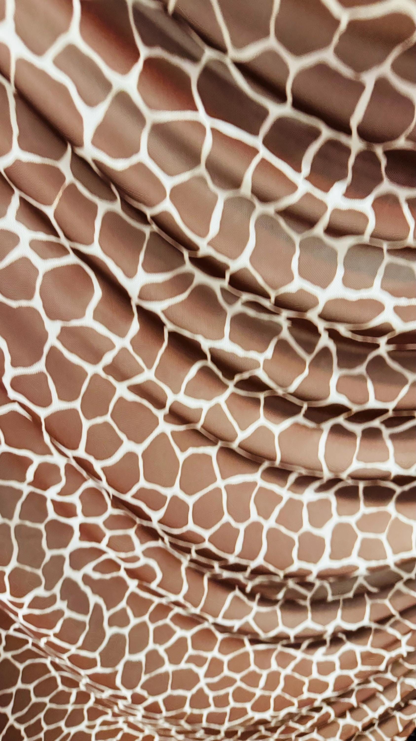 Giraffe design print on power mesh 4-way stretch 58/60” Sold by the YD. Ships Worldwide from Los Angeles California USA.