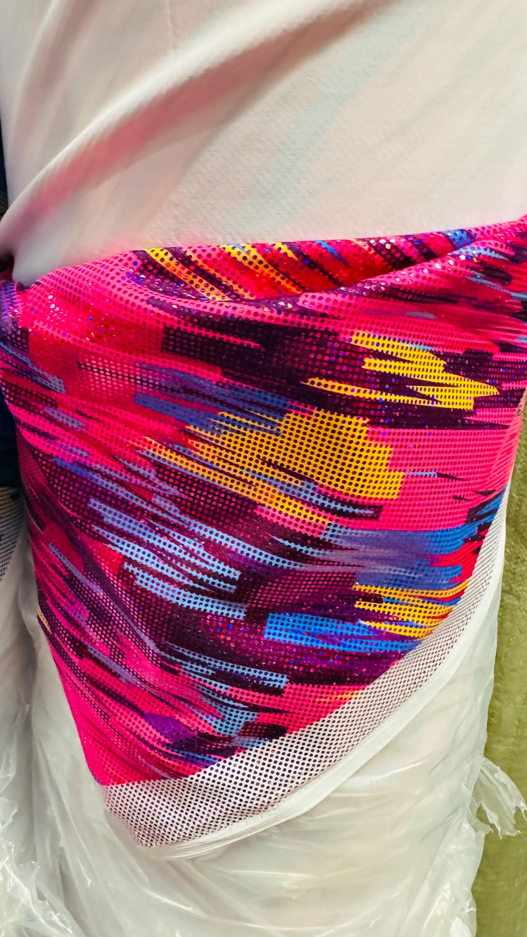 Graffiti Painting Abstract design hologram metallic nylon spandex 4way stretch 58/60" Sold by the YD. Ships worldwide from Los Angeles California USA. High quality fabrics by AlexLAFabrics