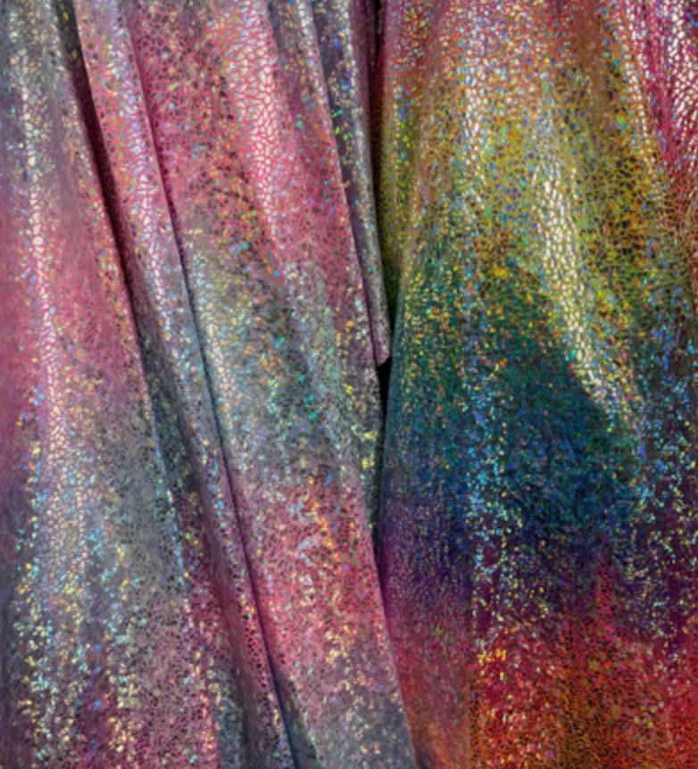 Hologram reptile design metallic multicolor spandex 4-way stretch 58/60” Sold by the YD. Ships Worldwide from Los Angeles California USA.