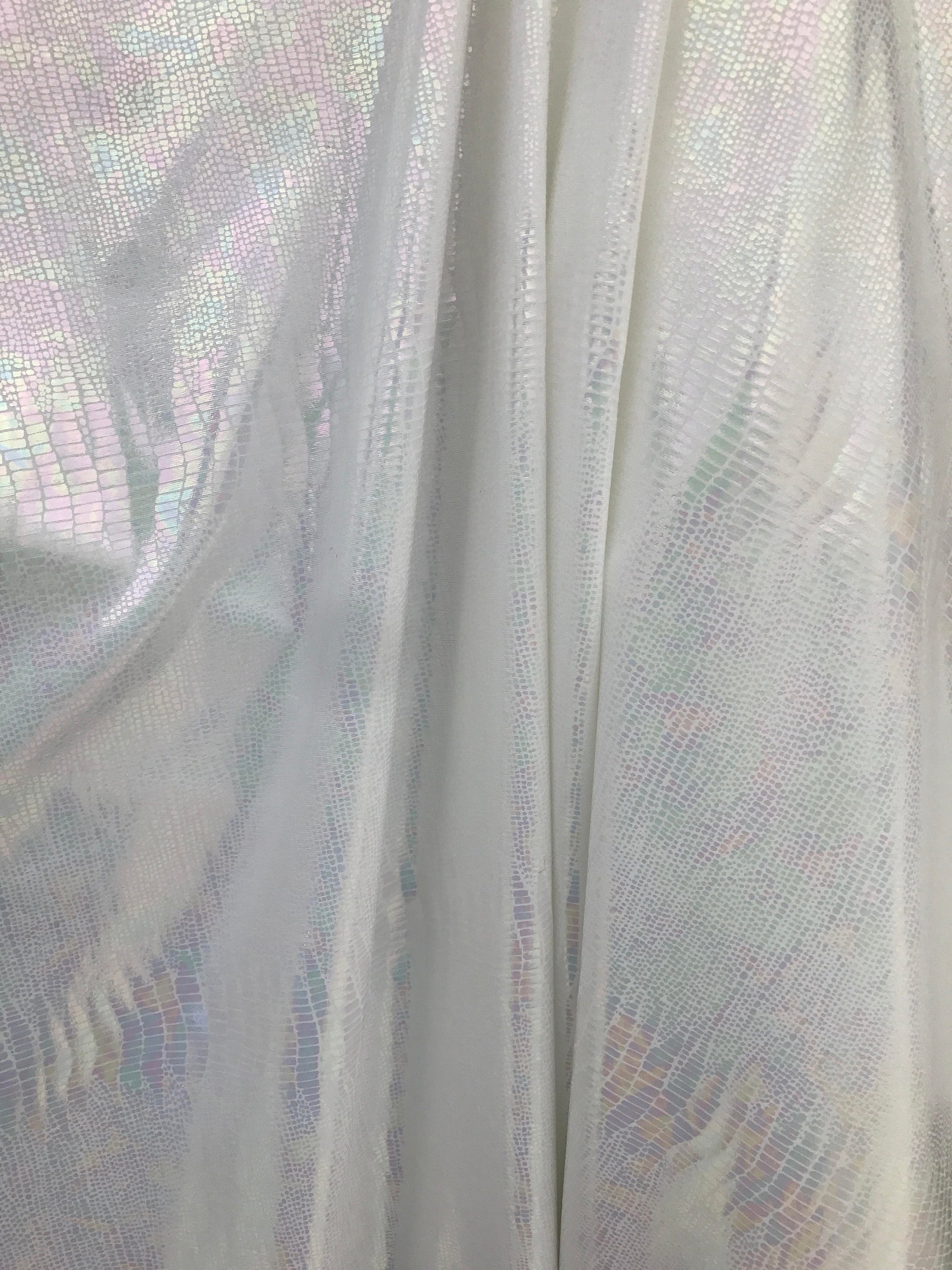 Iridescent snake design Hologram metallic foil on nylon spandex 4way Stretch 58/60" Sold by the YD. Ships worldwide from Los Angeles CA USA