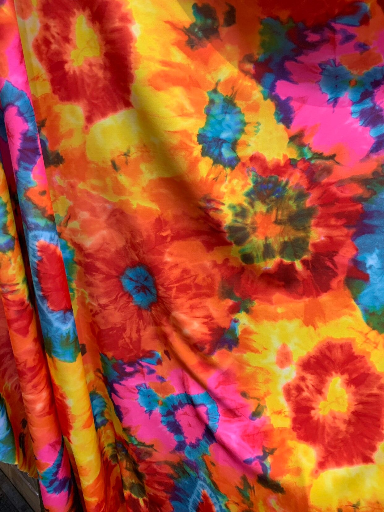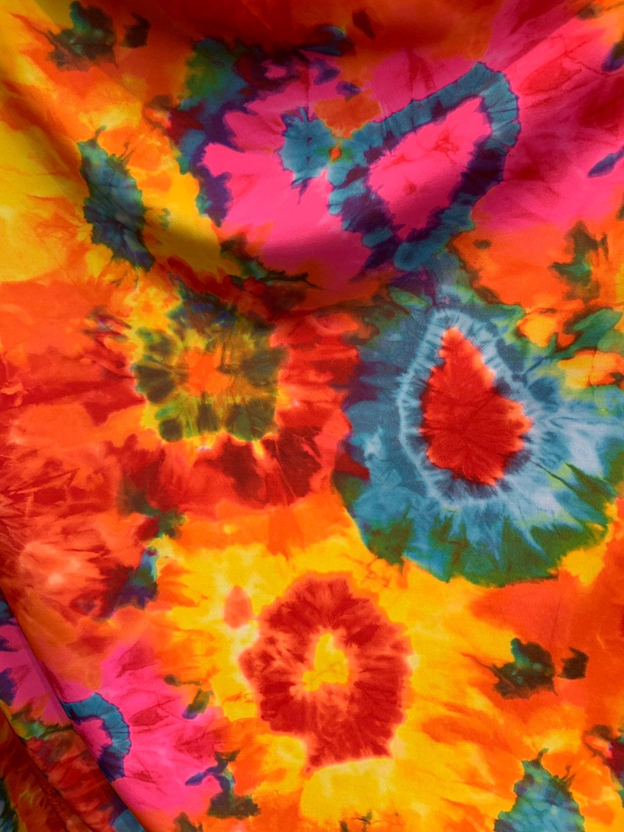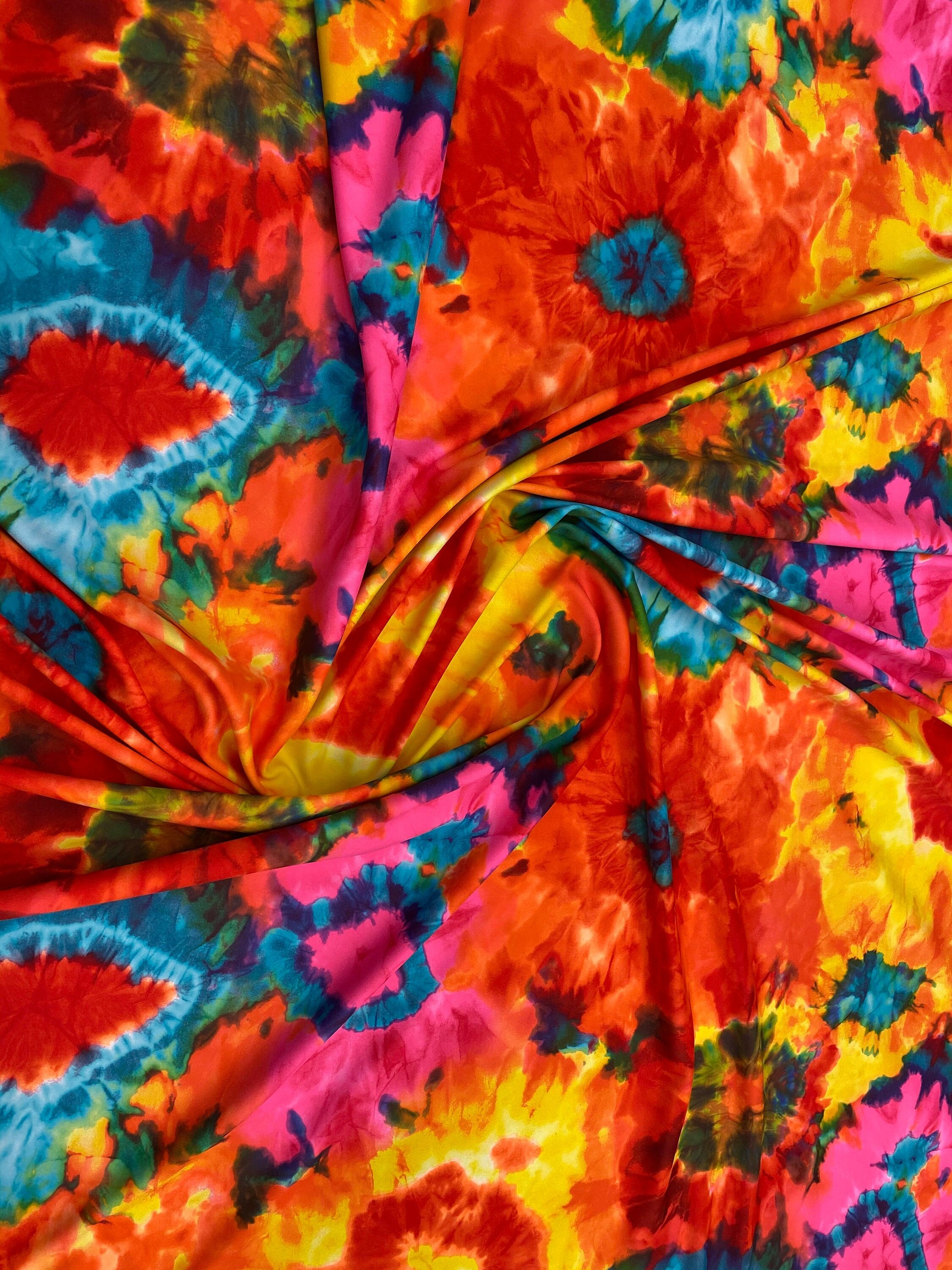 LAVA design, tie dye design nylon spandex 4way stretch 58/60" Sold by the YD. Ships worldwide from Los Angeles California USA.