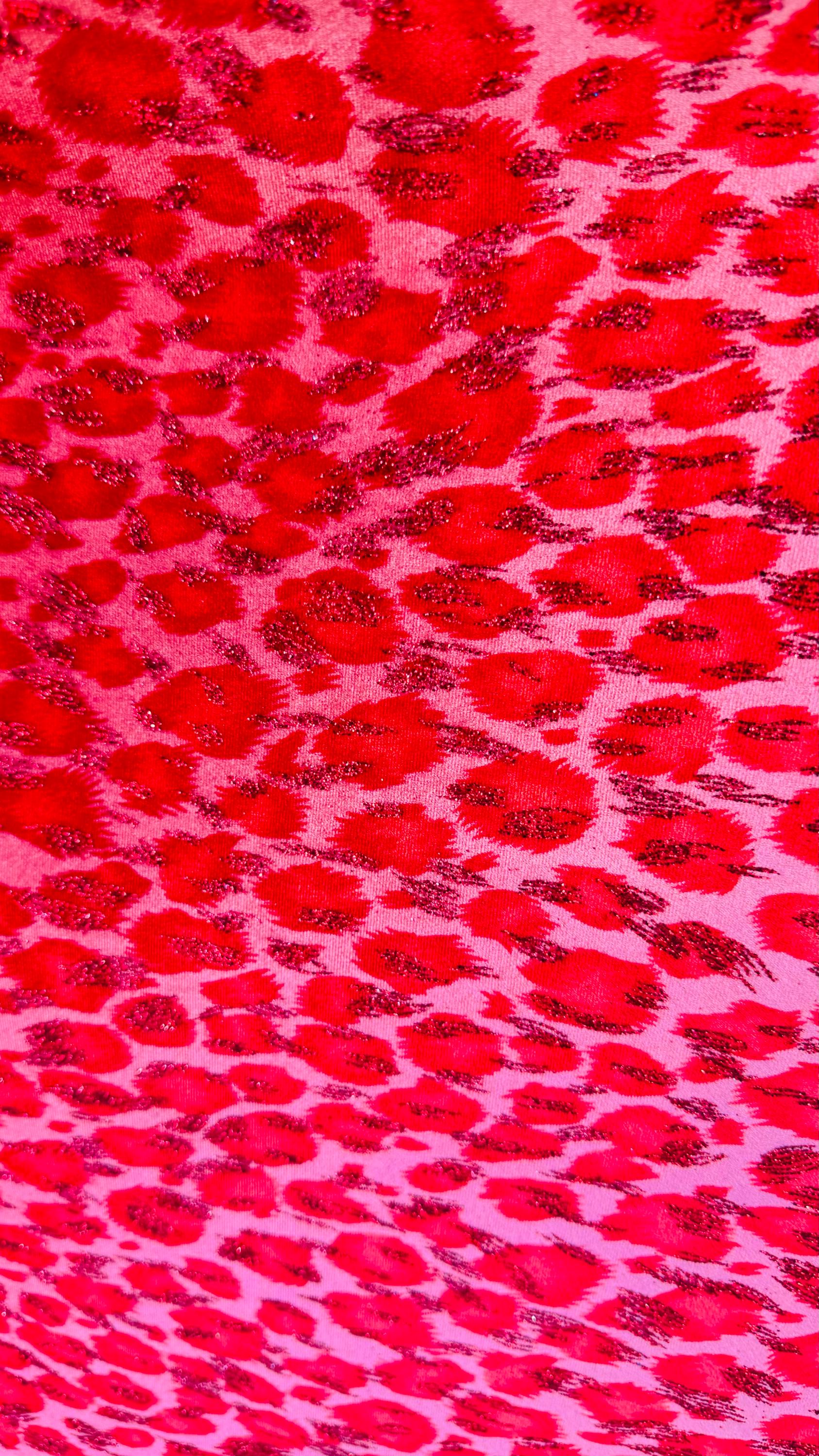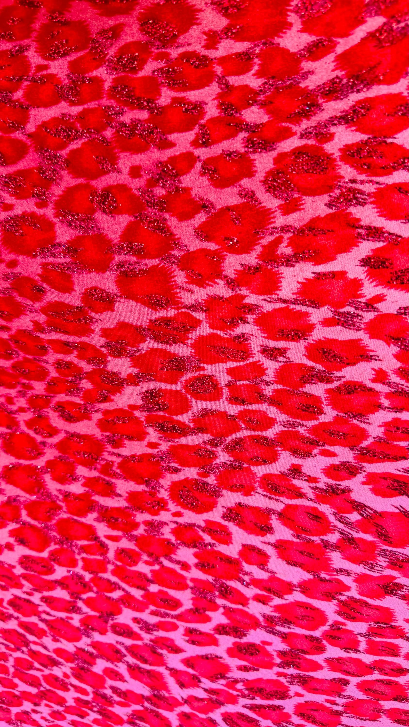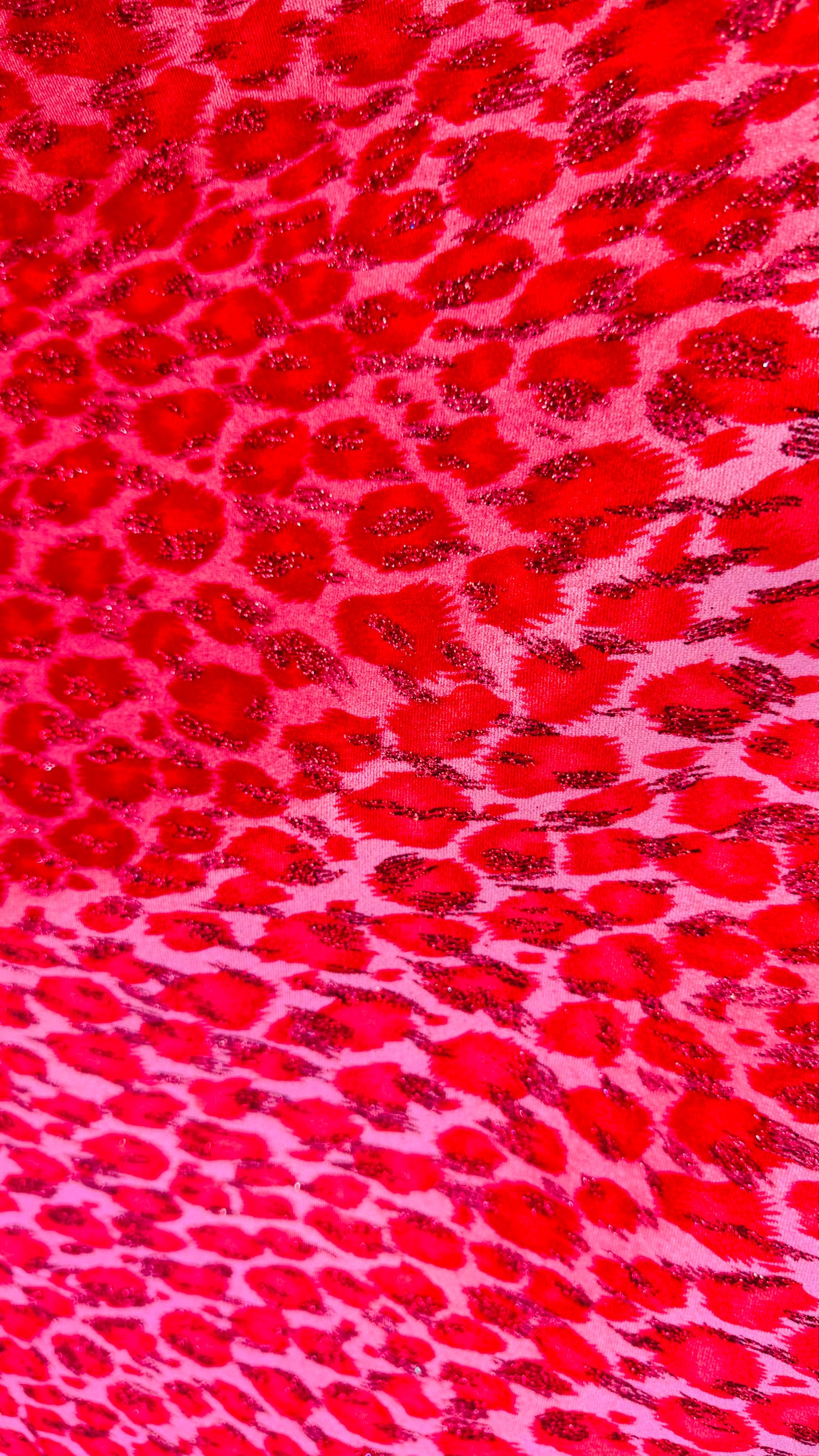 Leopard design Red/Pink with glitter print on velvet 420gsm 4way stretch 58/60” Sold by the YD. Ships worldwide from Los Angeles California