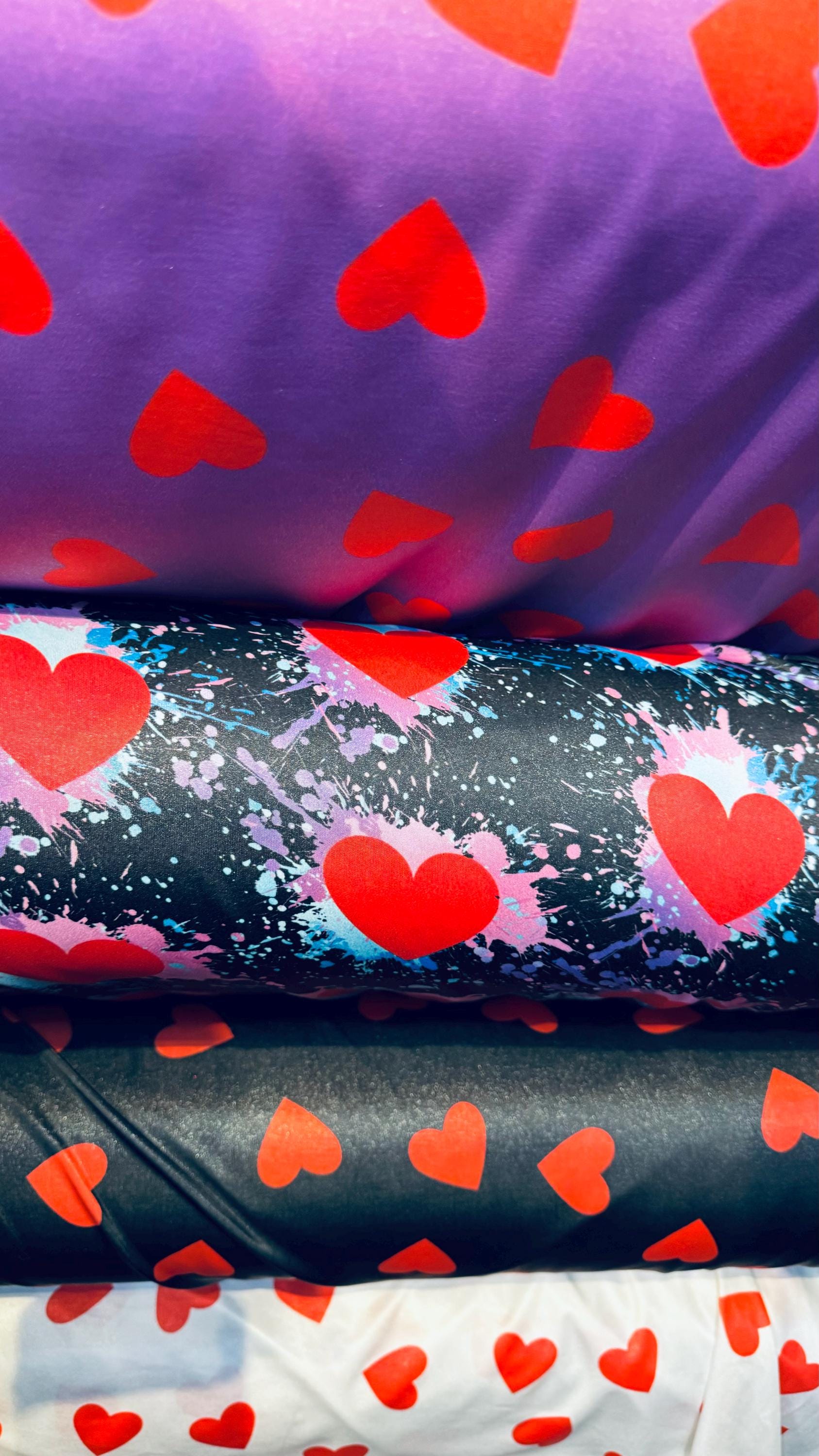 Lovely Hearts design print on great quality of poly spandex 4-way stretch 58/60” High quality fabrics by AlexLAFabrics