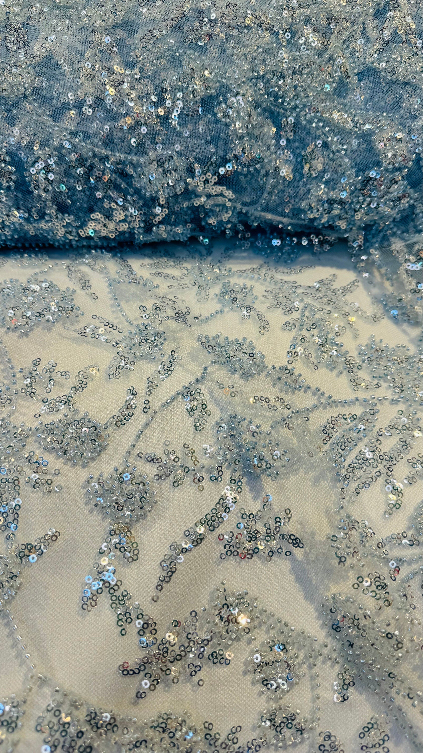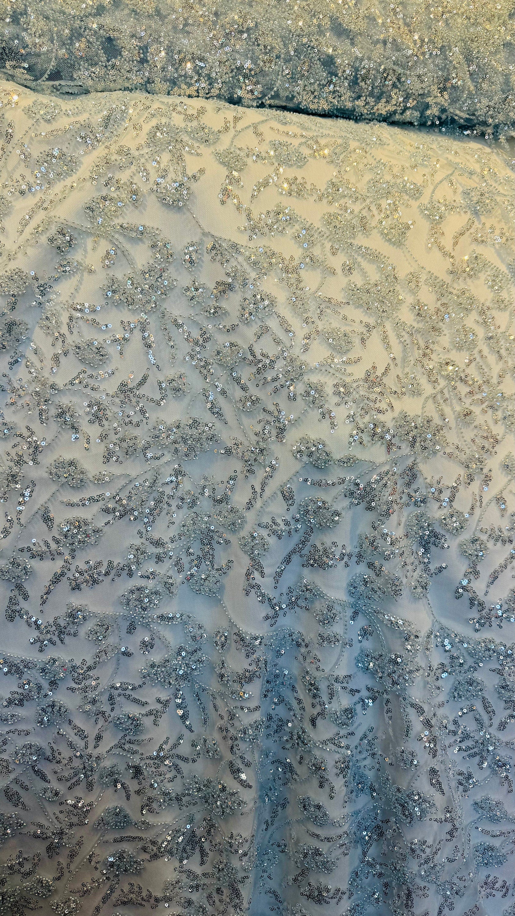 Luxury 3D Beaded Paris lace design embroidered on 4-way stretch mesh 55/57” High Quality fabrics by AlexLAFabrics
