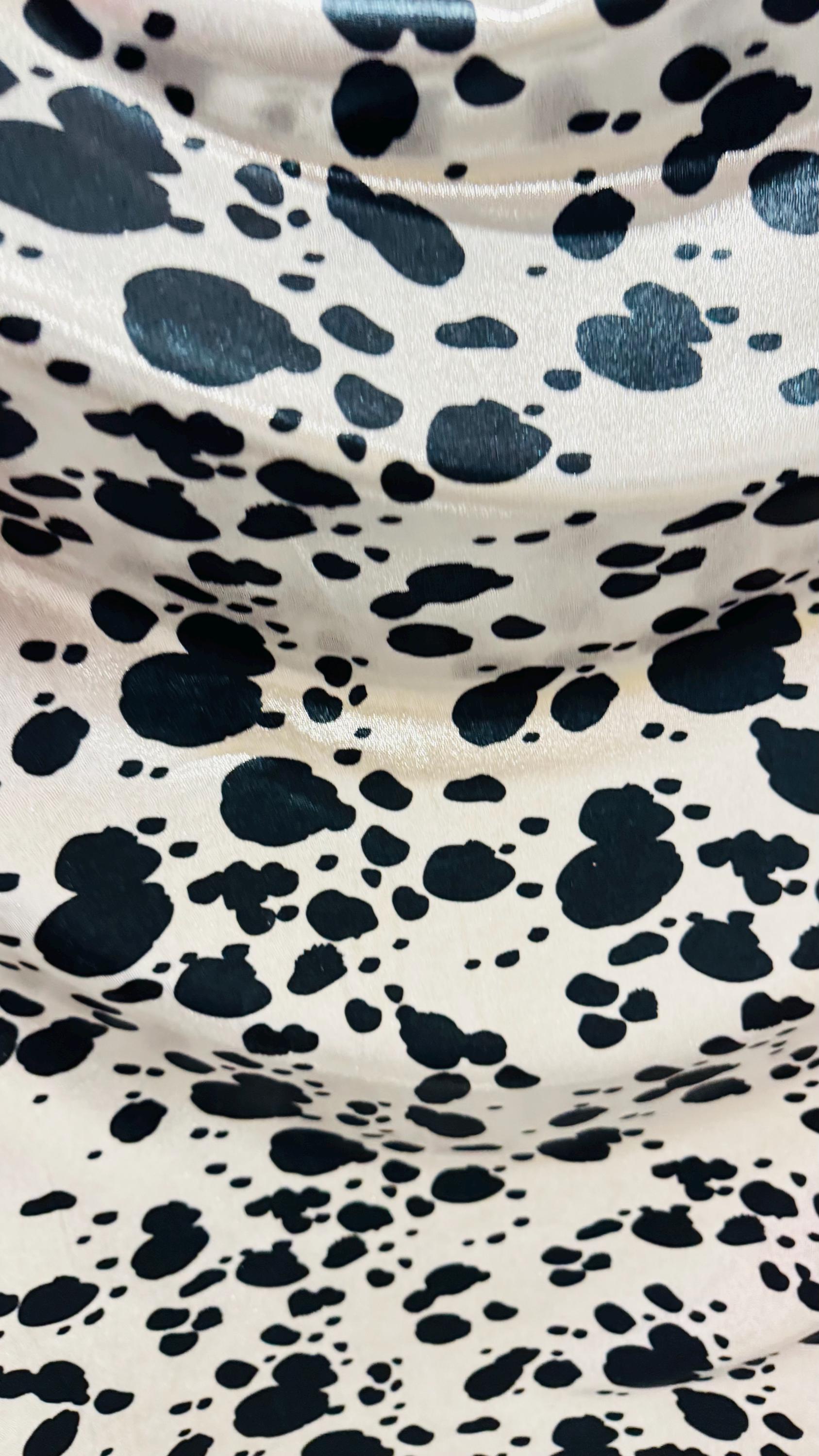 Luxury Dalmatian design on metallic nylon spandex with foggy foil 4-way stretch 58/60” High quality fabrics by AlexLAFabrics Sold by the YD. Ships worldwide from Los Angeles California USA. High quality fabrics by AlexLAFabrics