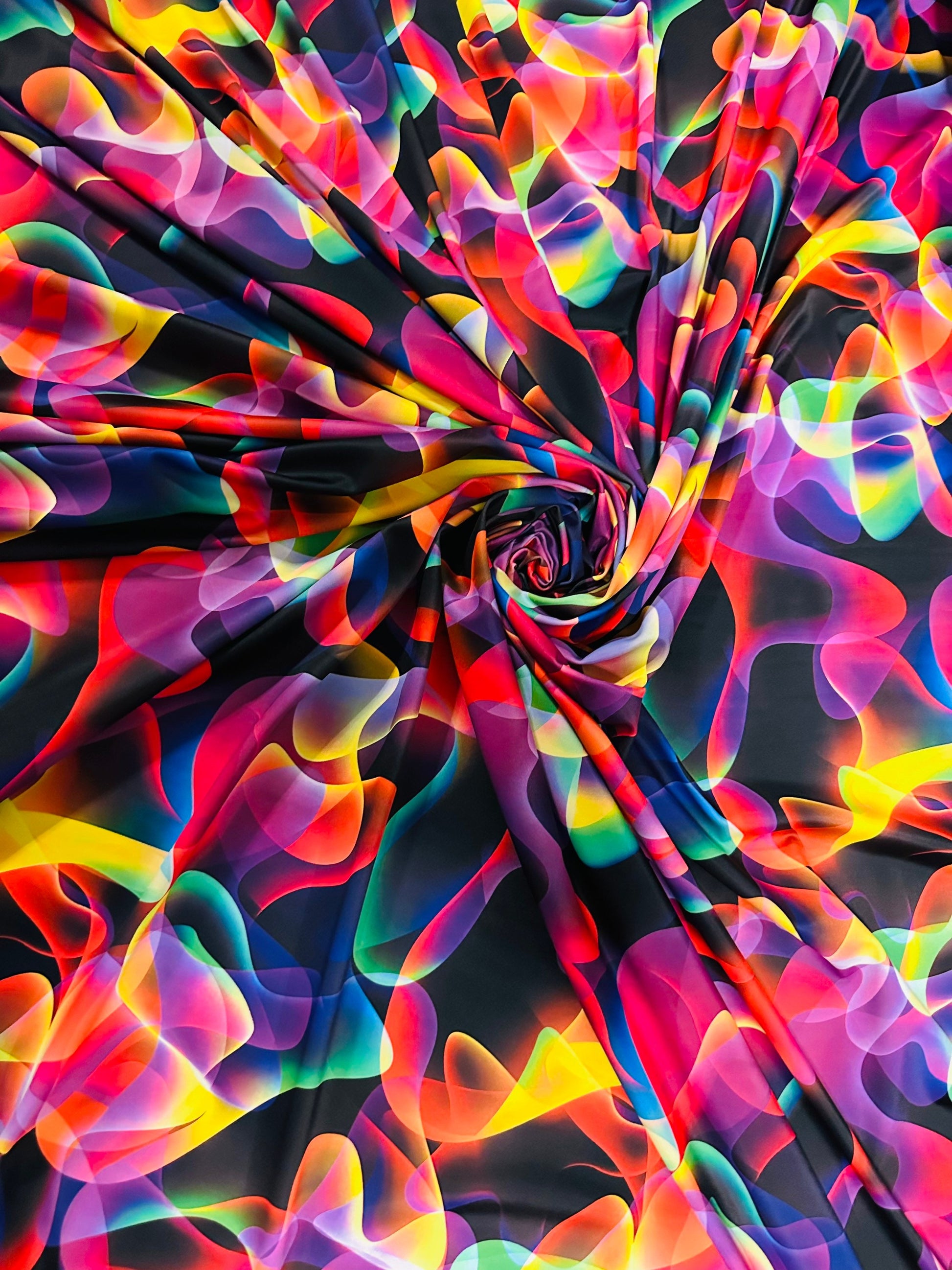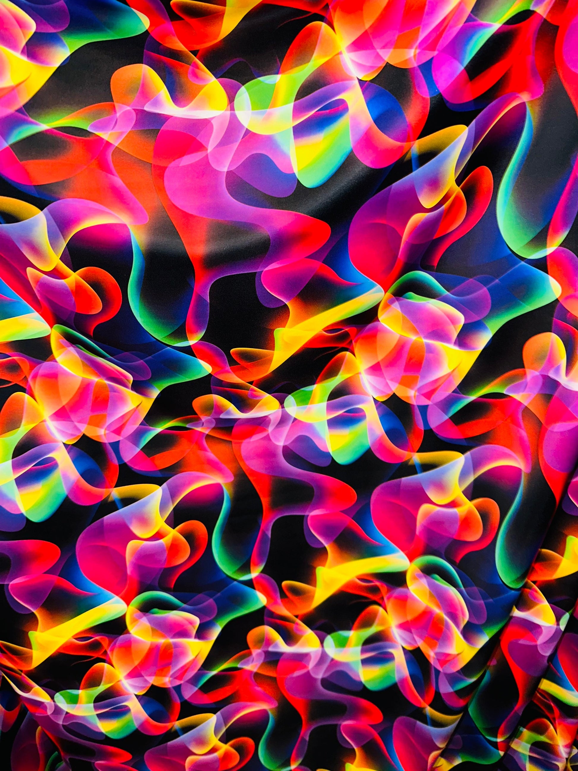 Luxury modern abstract design print on nylon spandex best quality UV light it glows under black light spandex 4-way stretch 58/60” Sold by the YD. Ships worldwide from Los Angeles California USA