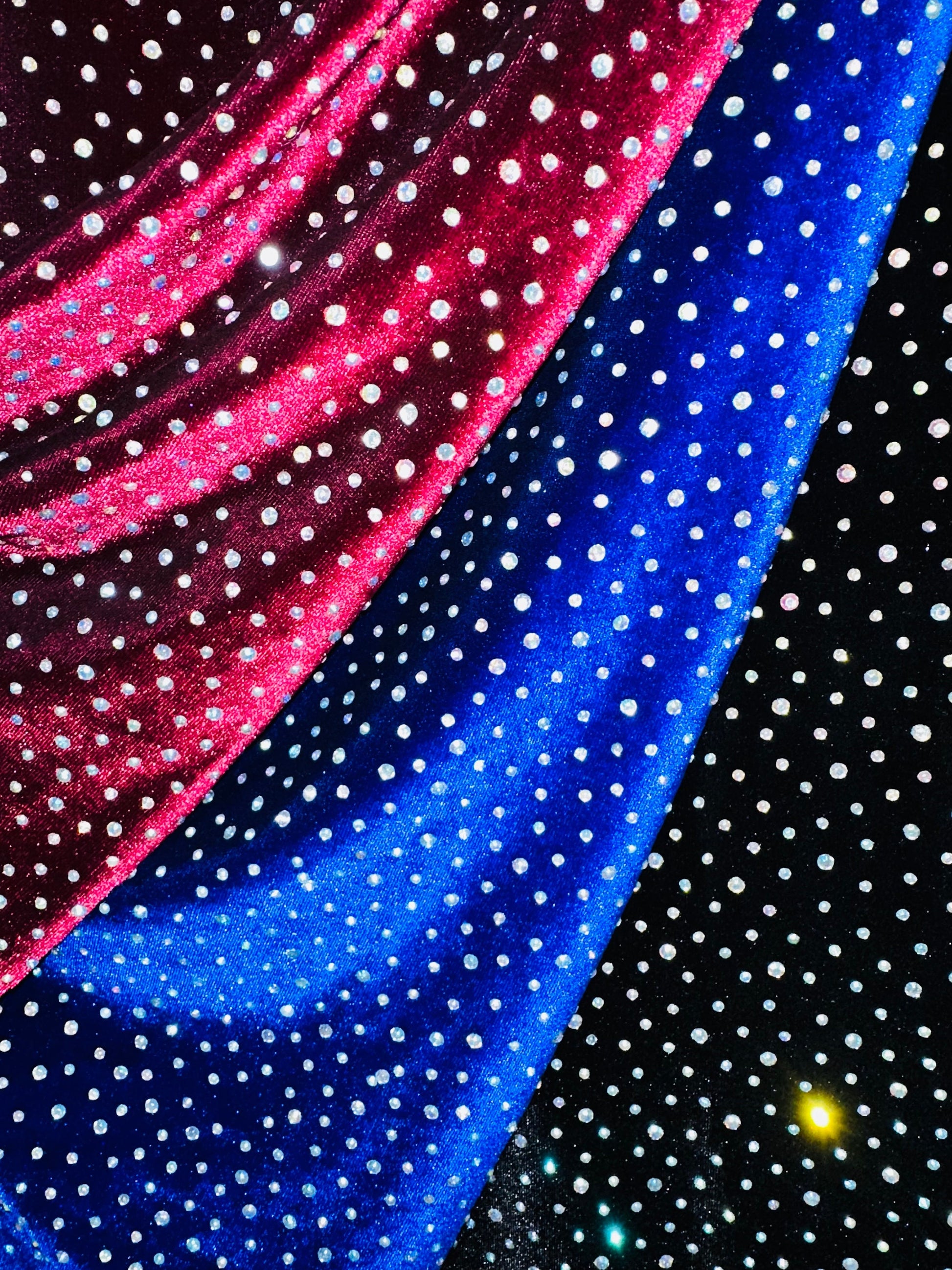 Luxury Rhinestone on stretch velvet 4-way stretch high quality fabrics by AlexLAFabrics