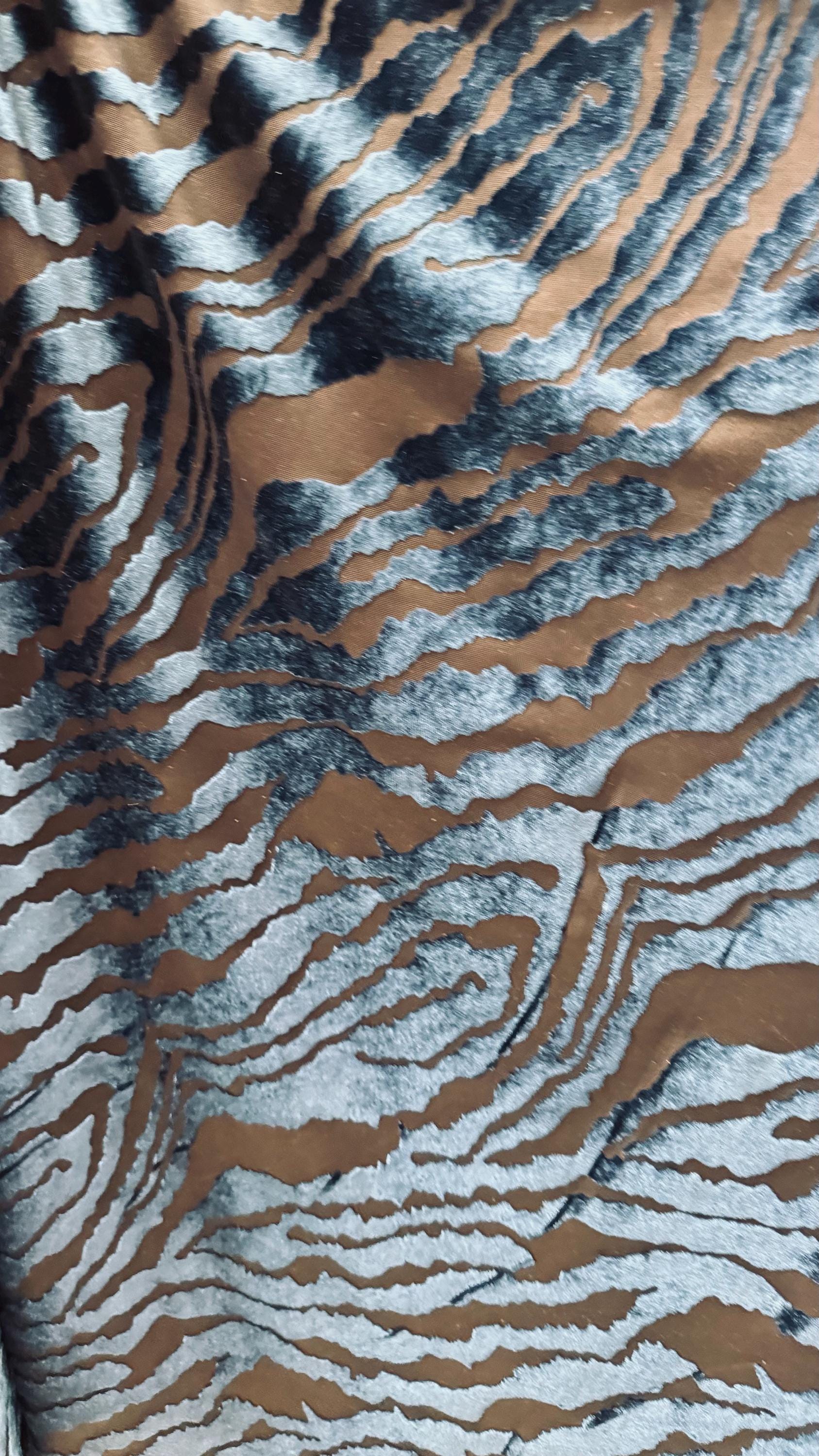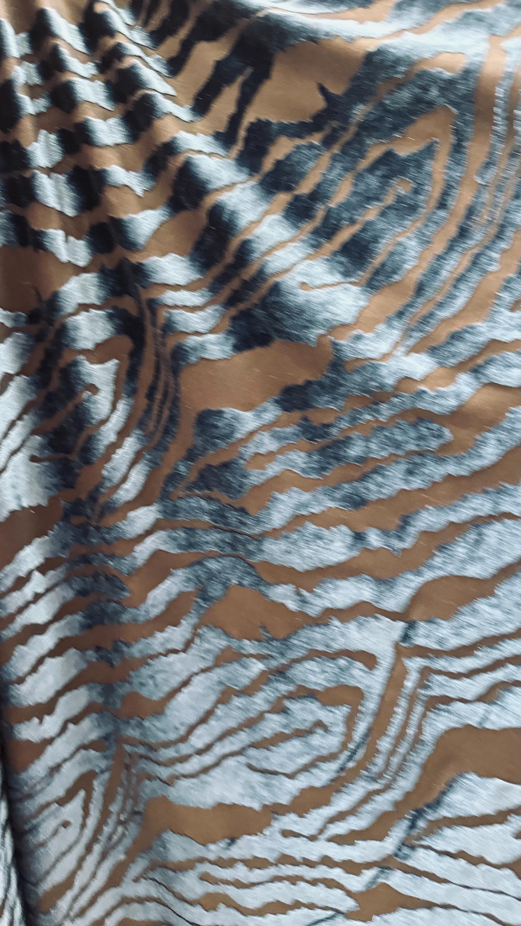 Luxury Tiger design Black/Navy on stretch Burnout velvet 4-way 58/60” Sold by the YD. Ships worldwide from Los Angeles California USA. High quality from AlexLAFabrics