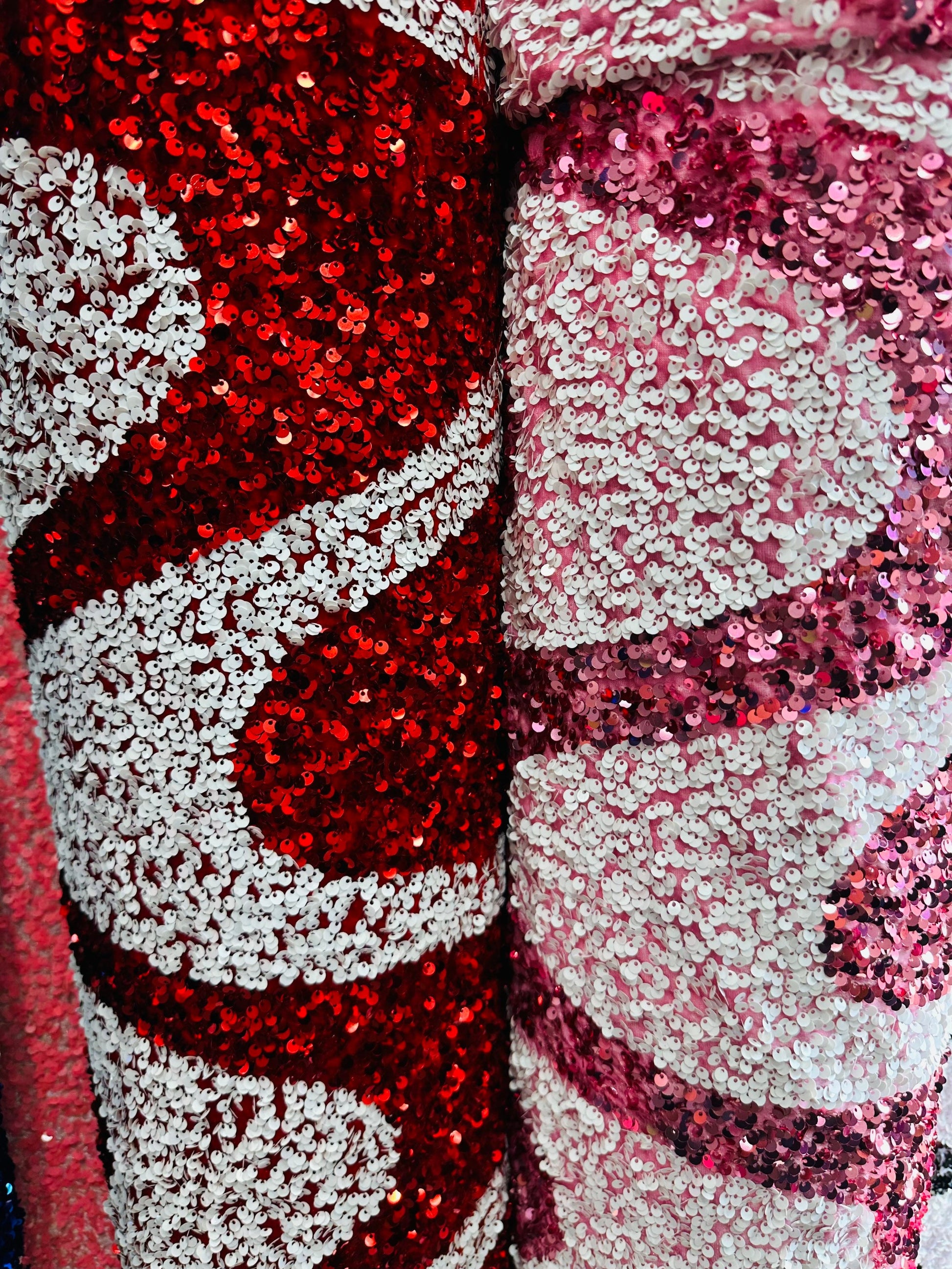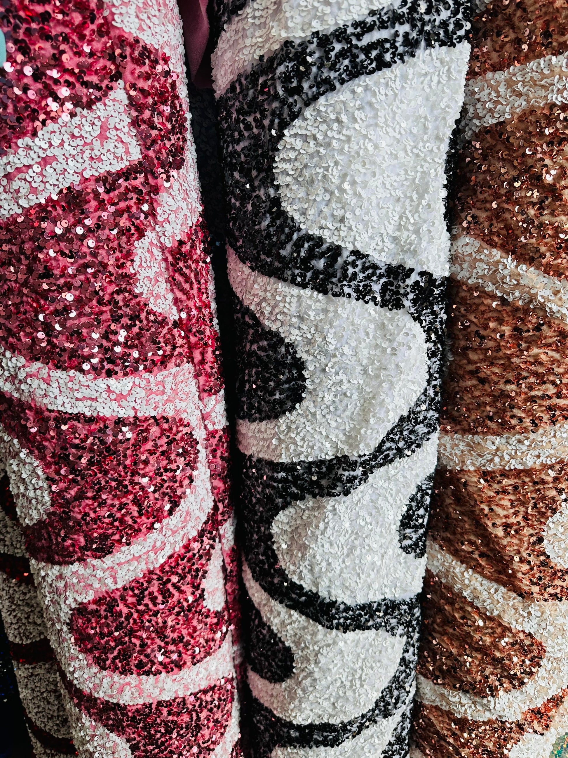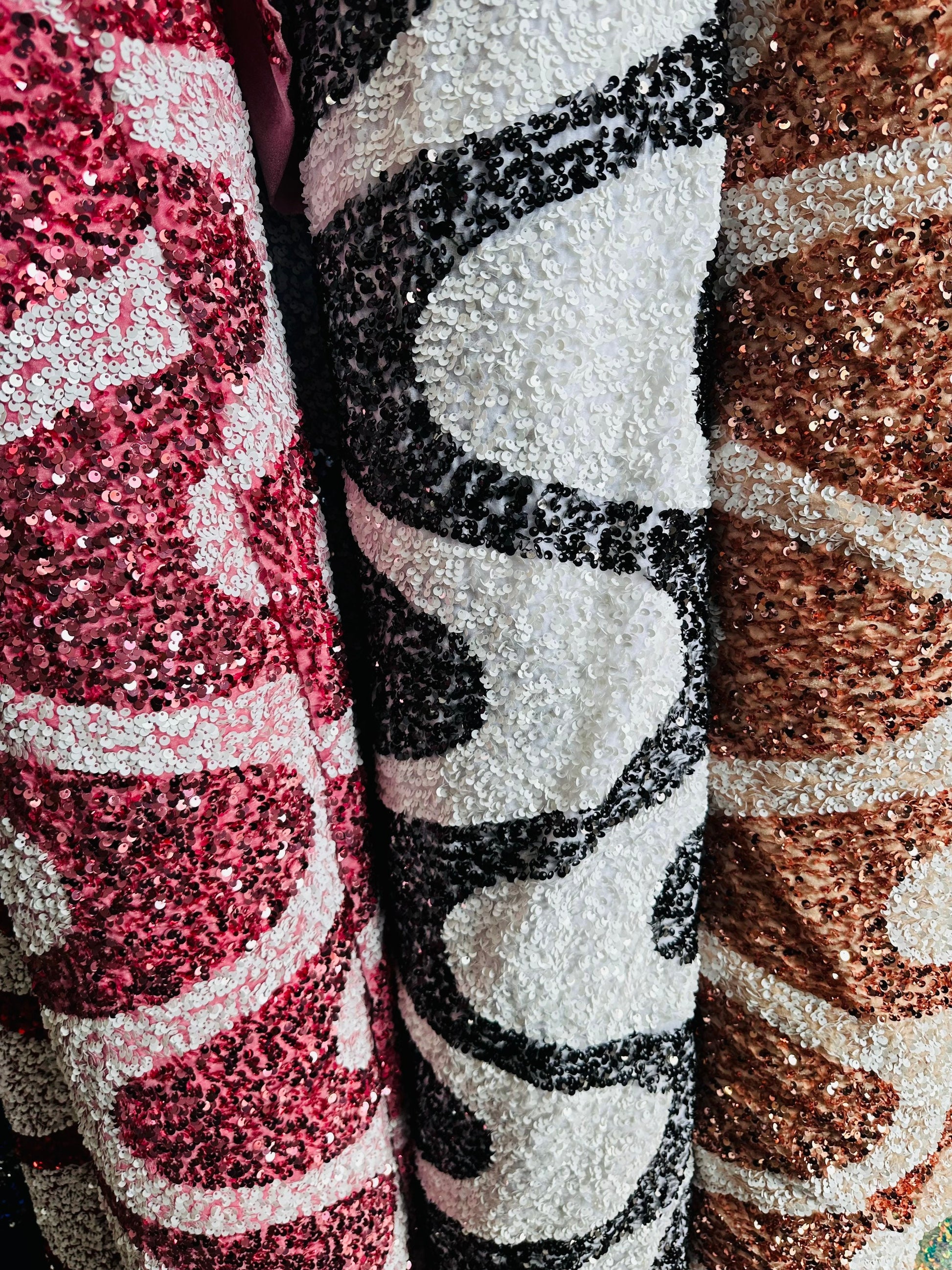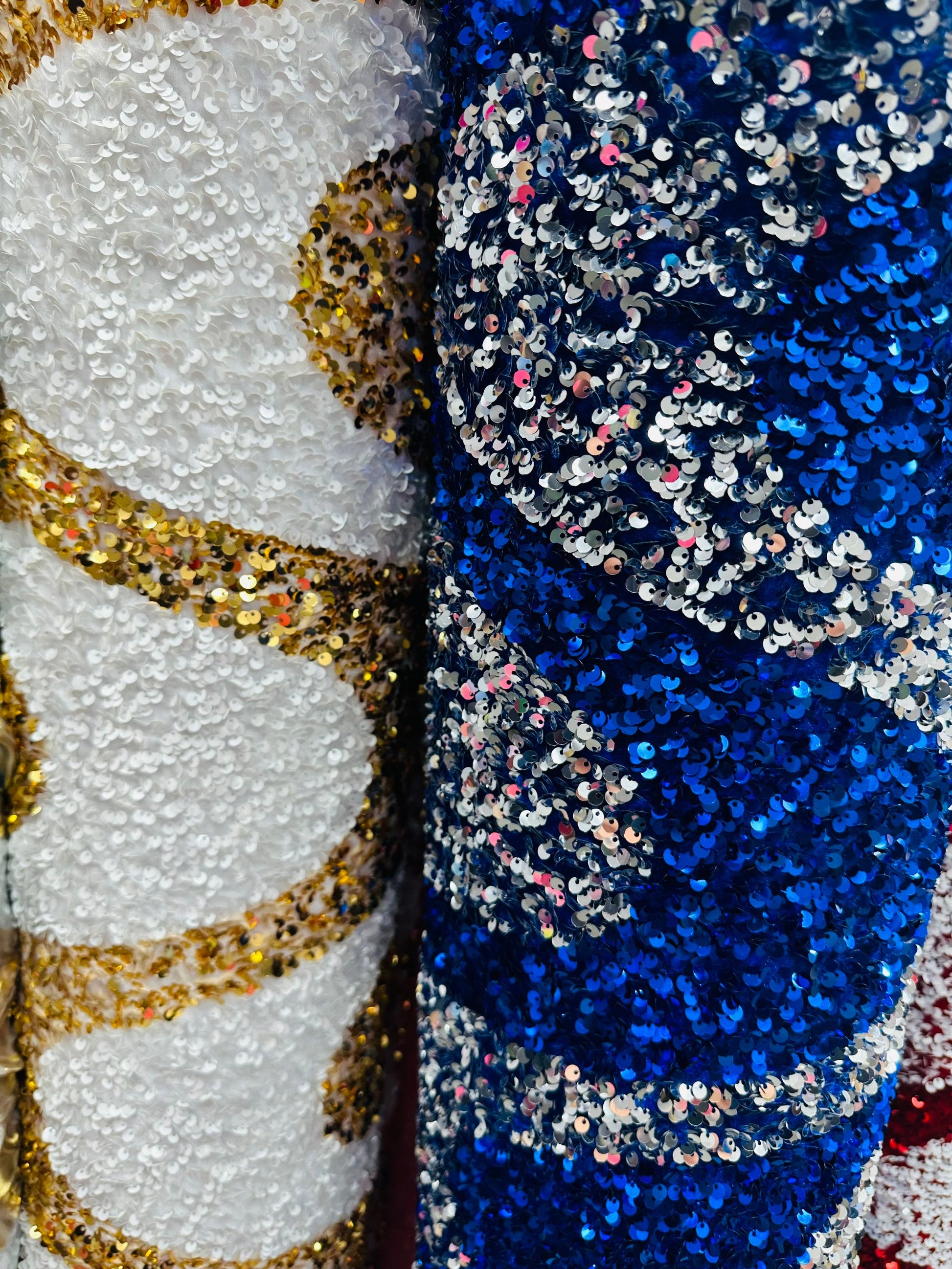 Luxury Wavy sequins design embroidered on stretch velvet 4-way stretch 2-tone sequins 58/60” Sold by the YD. Ships worldwide from Los Angeles California USA