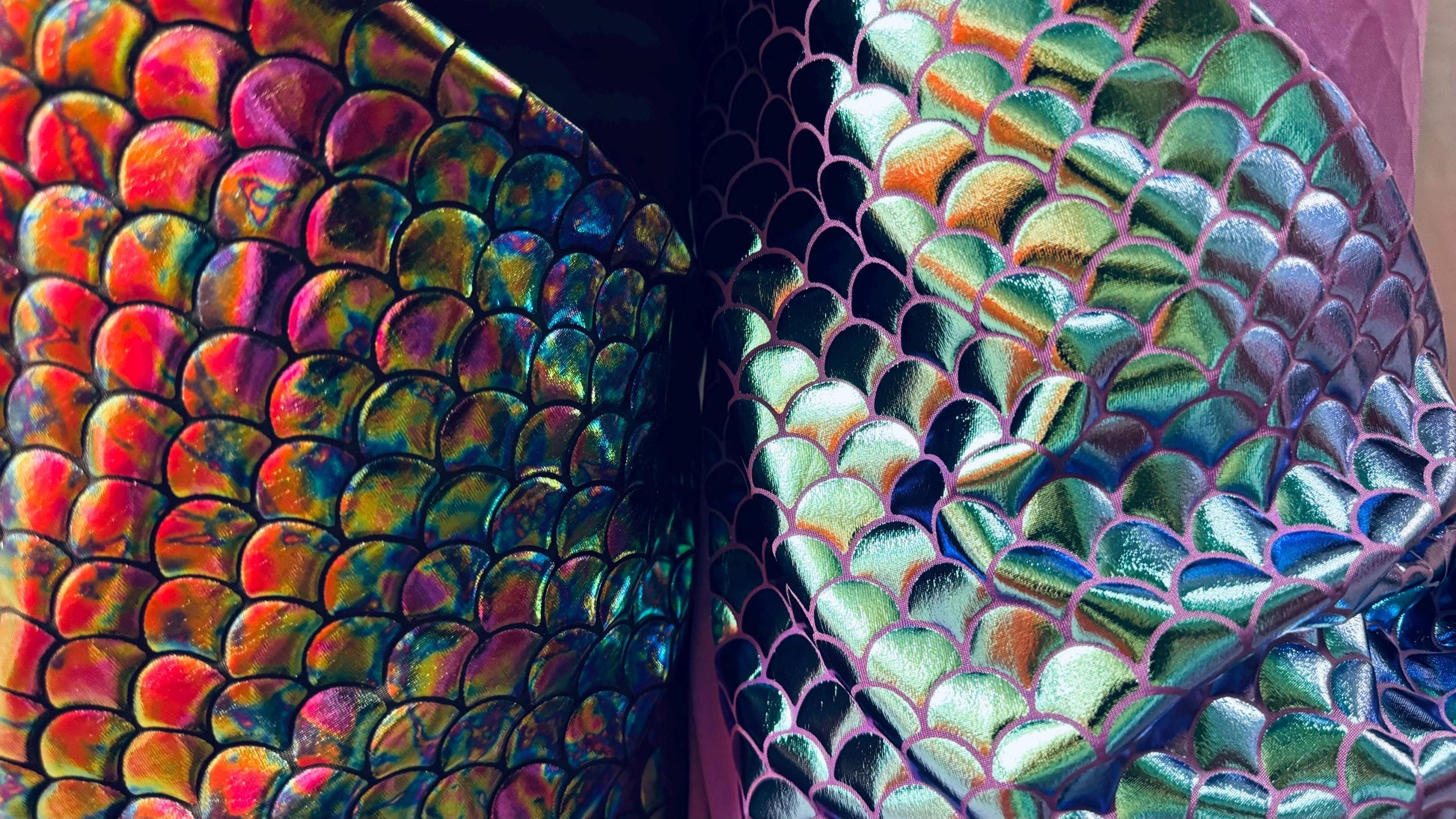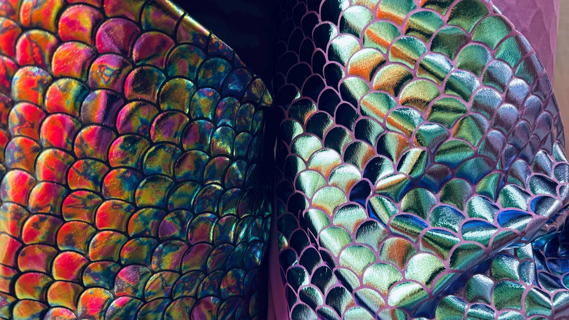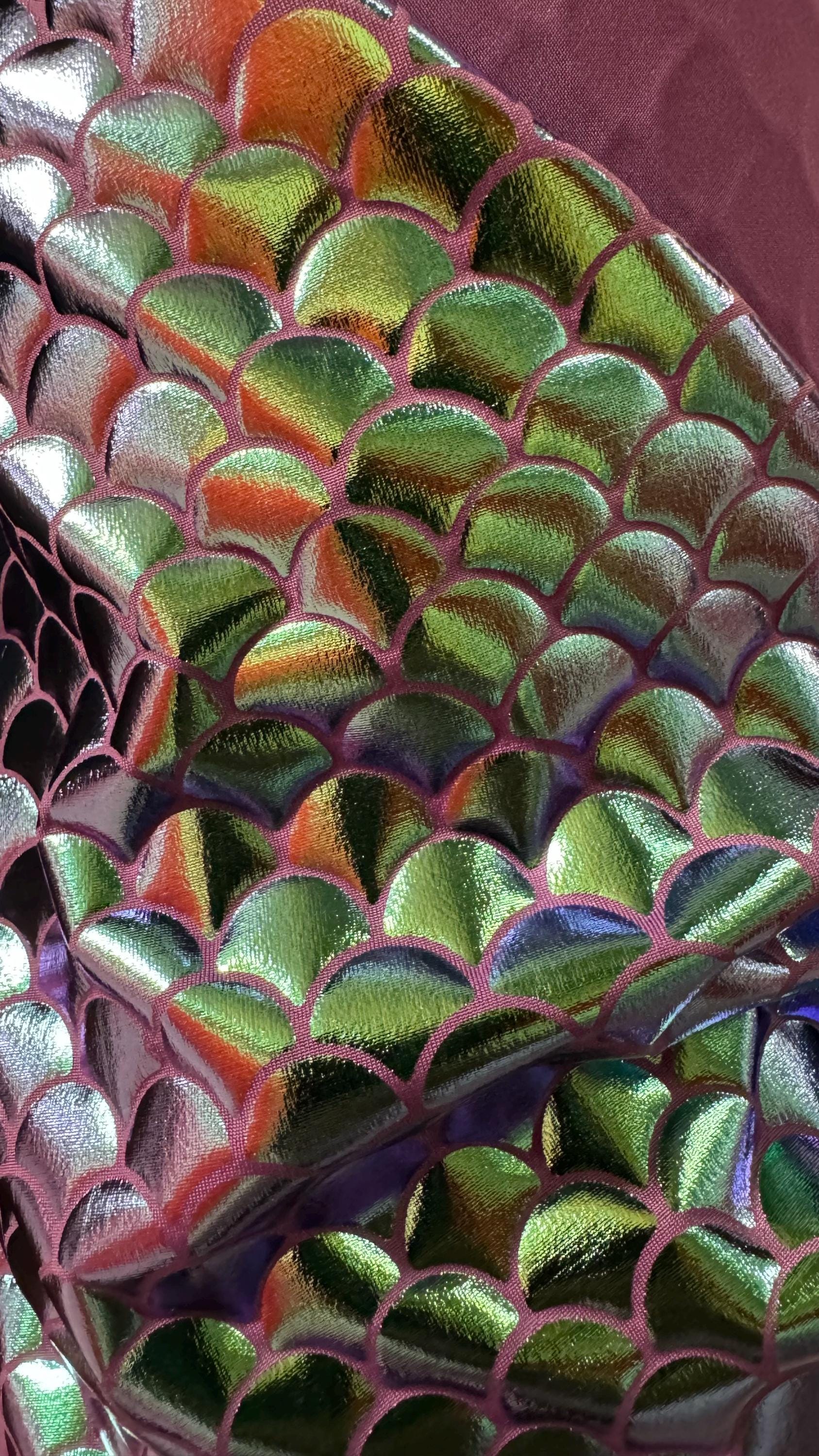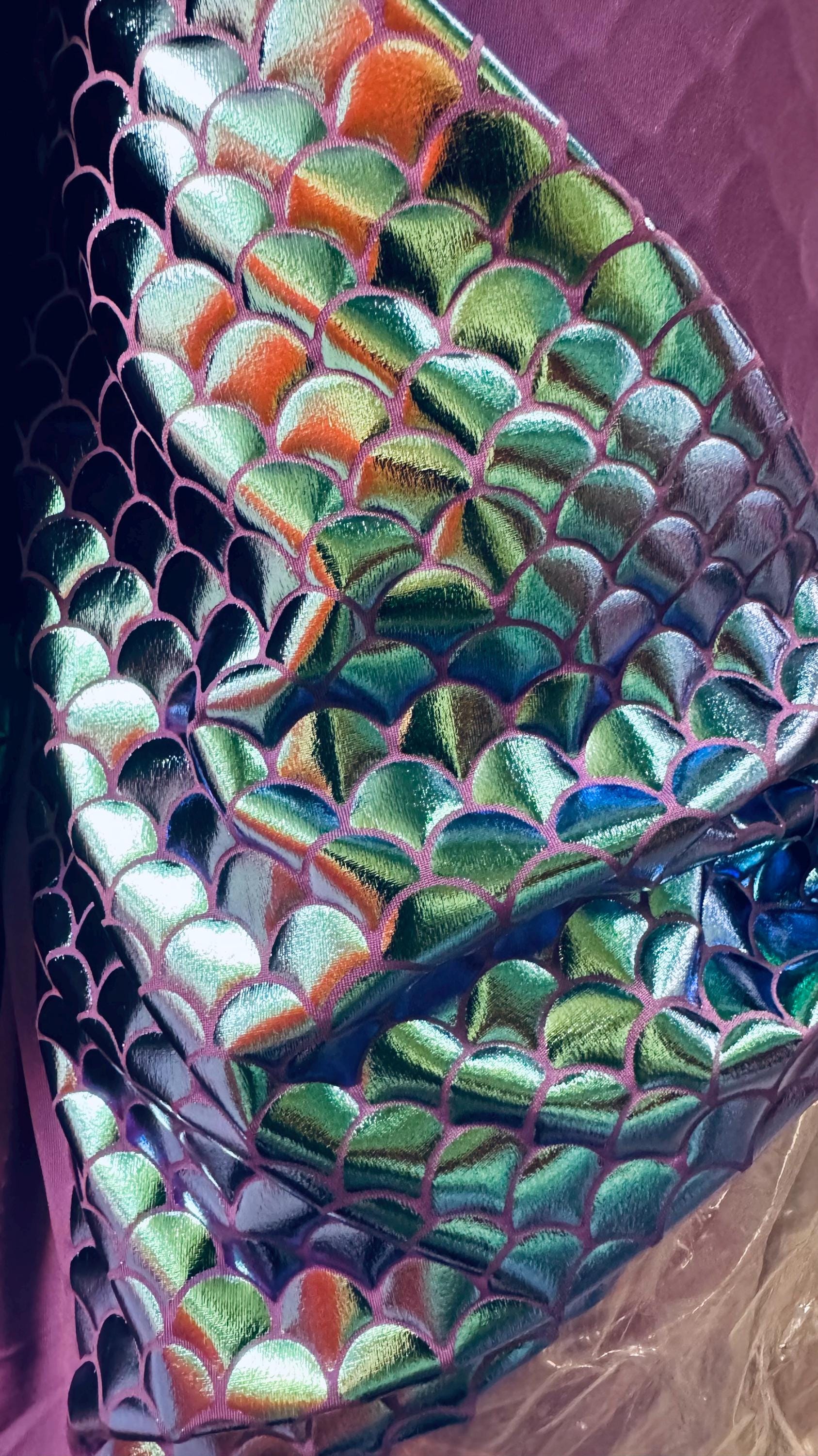 Mermaid fish scale design Hologram Nylon spandex 4-way stretch 58/60” Sold by the YD. Ships worldwide from Los Angeles California USA. High quality fabrics by AlexLAFabrics