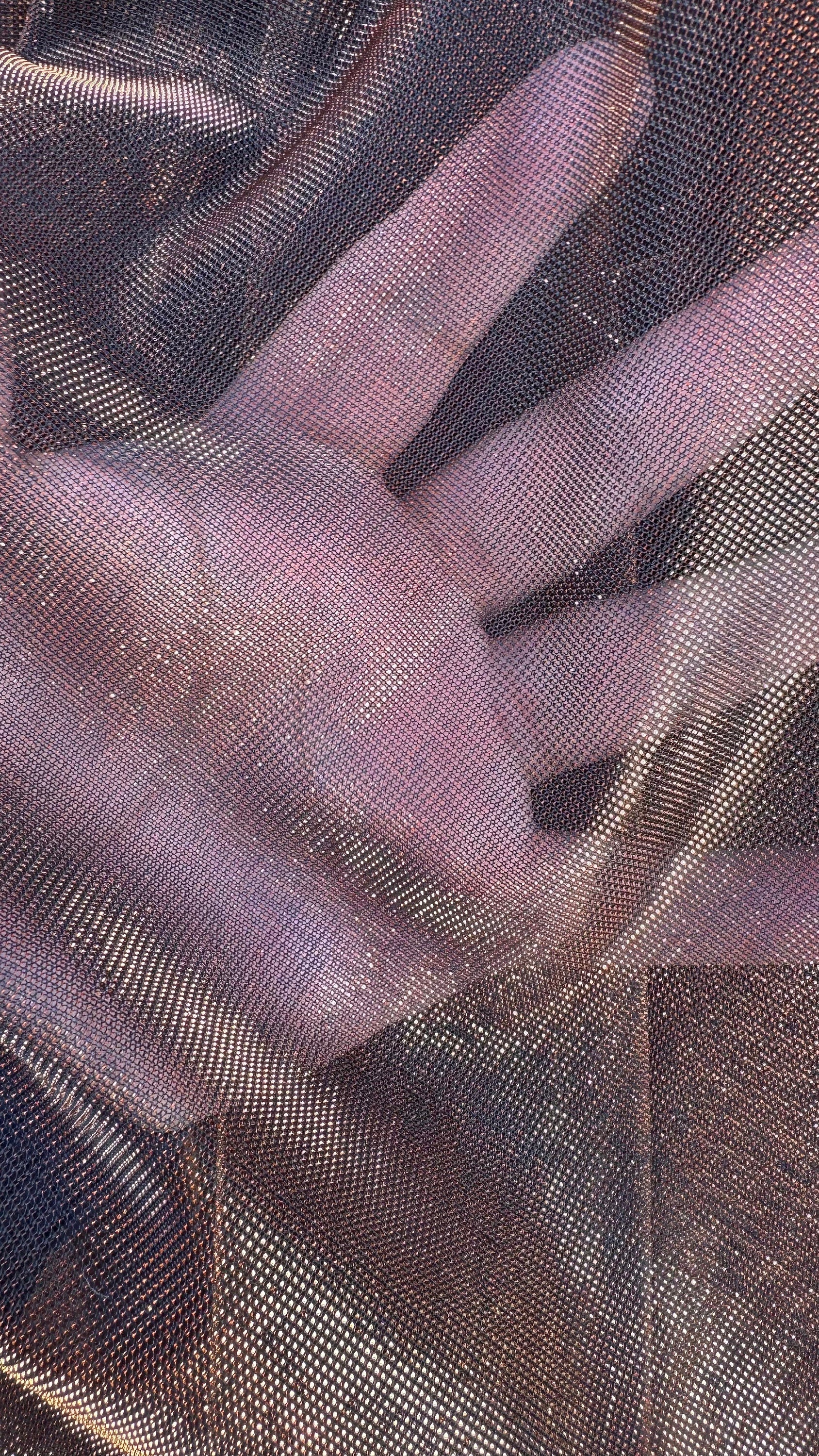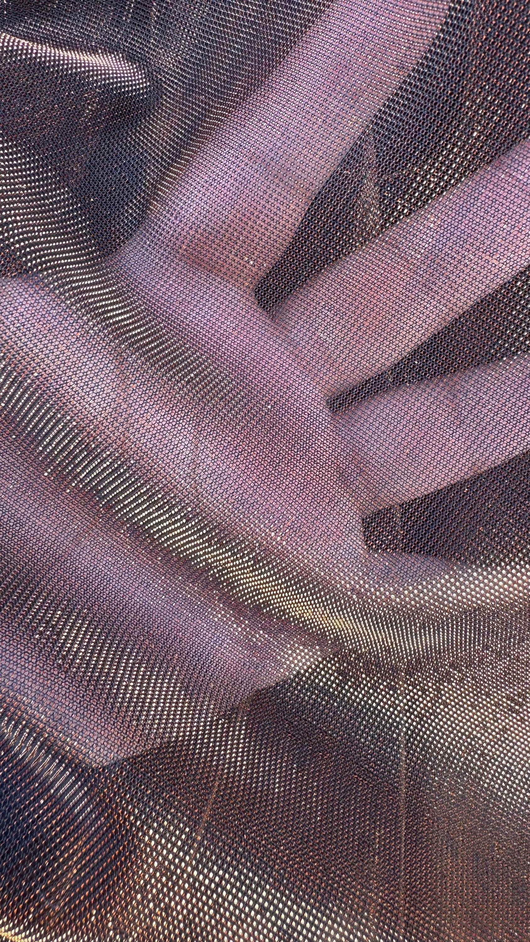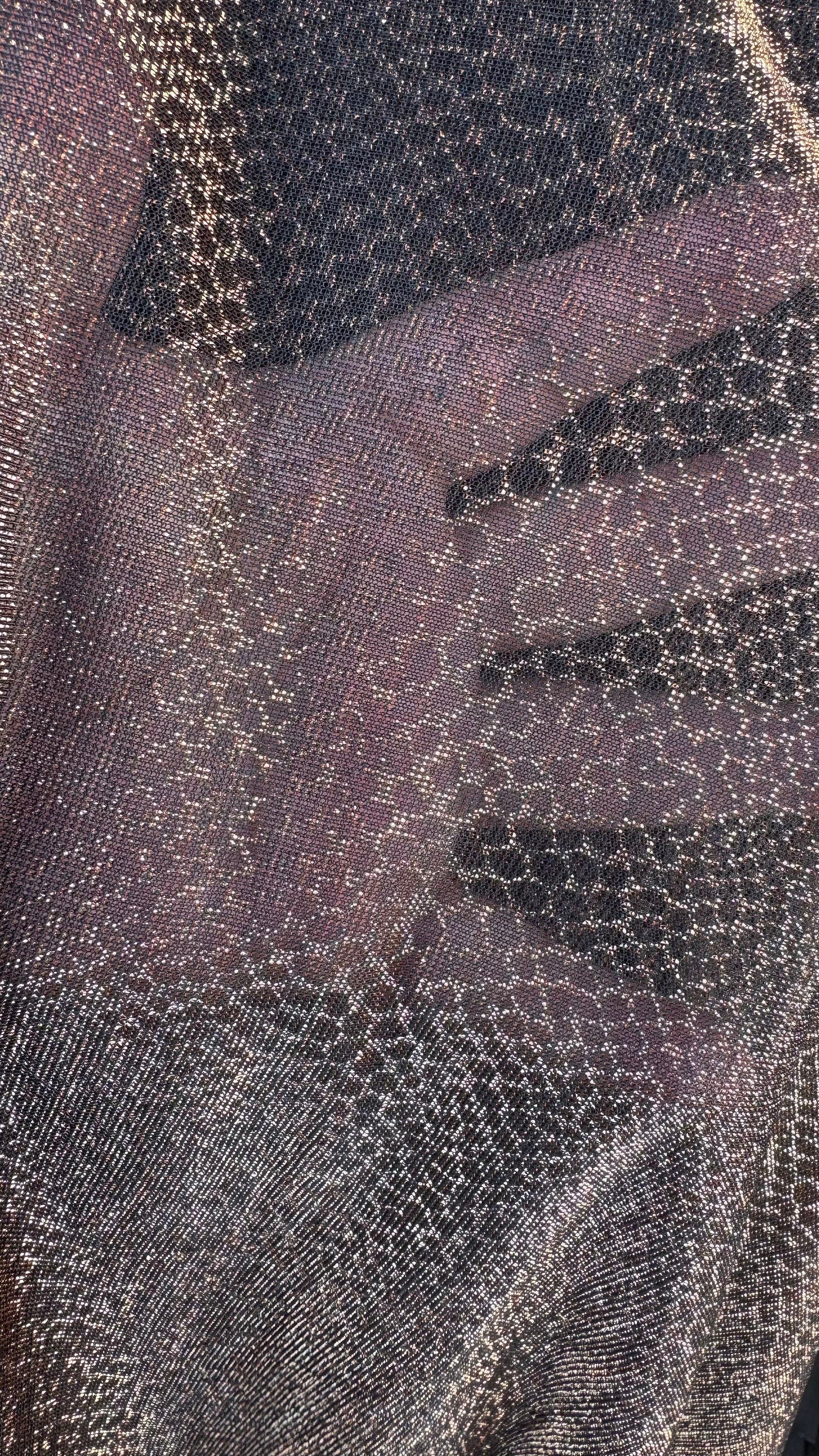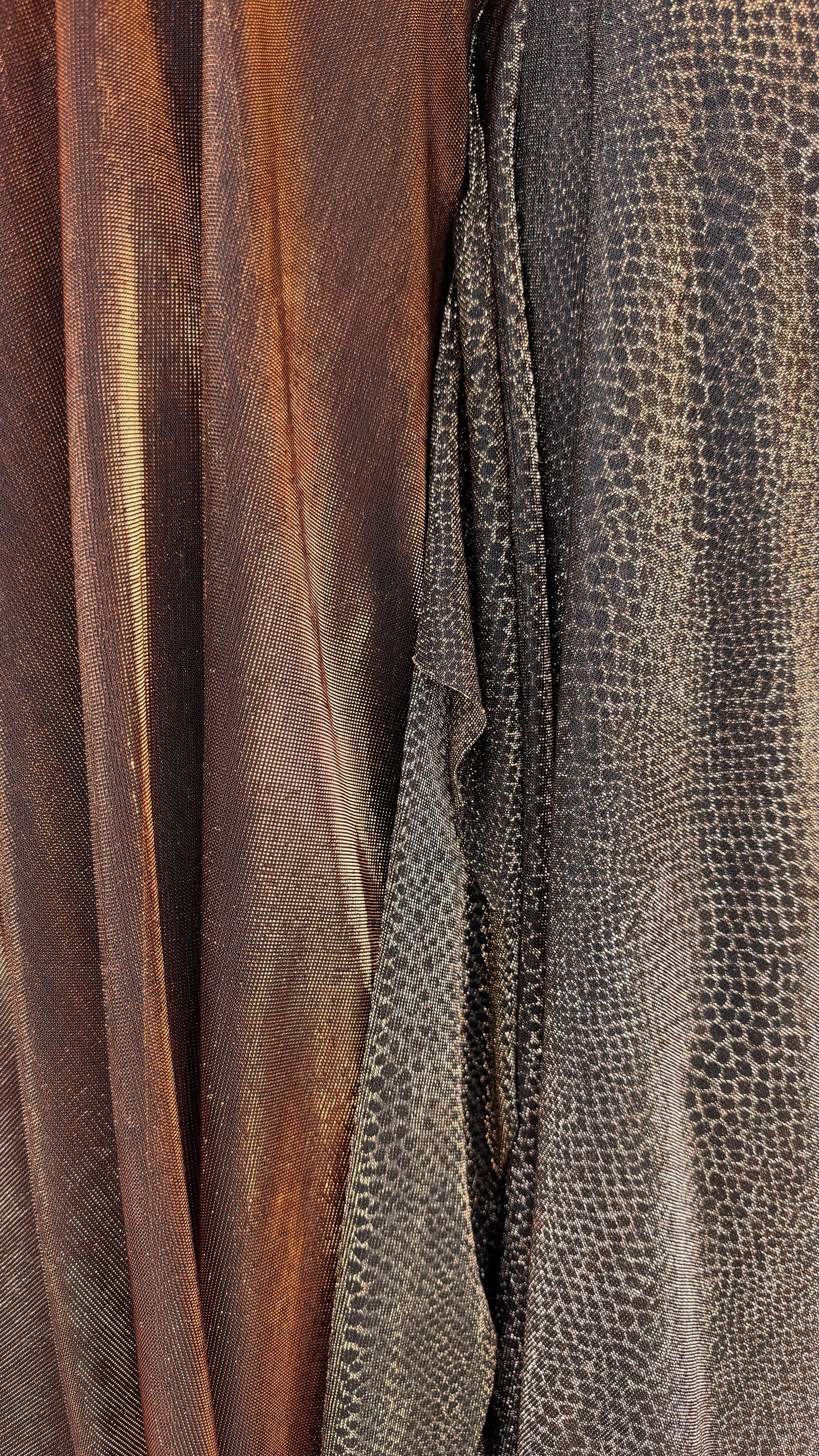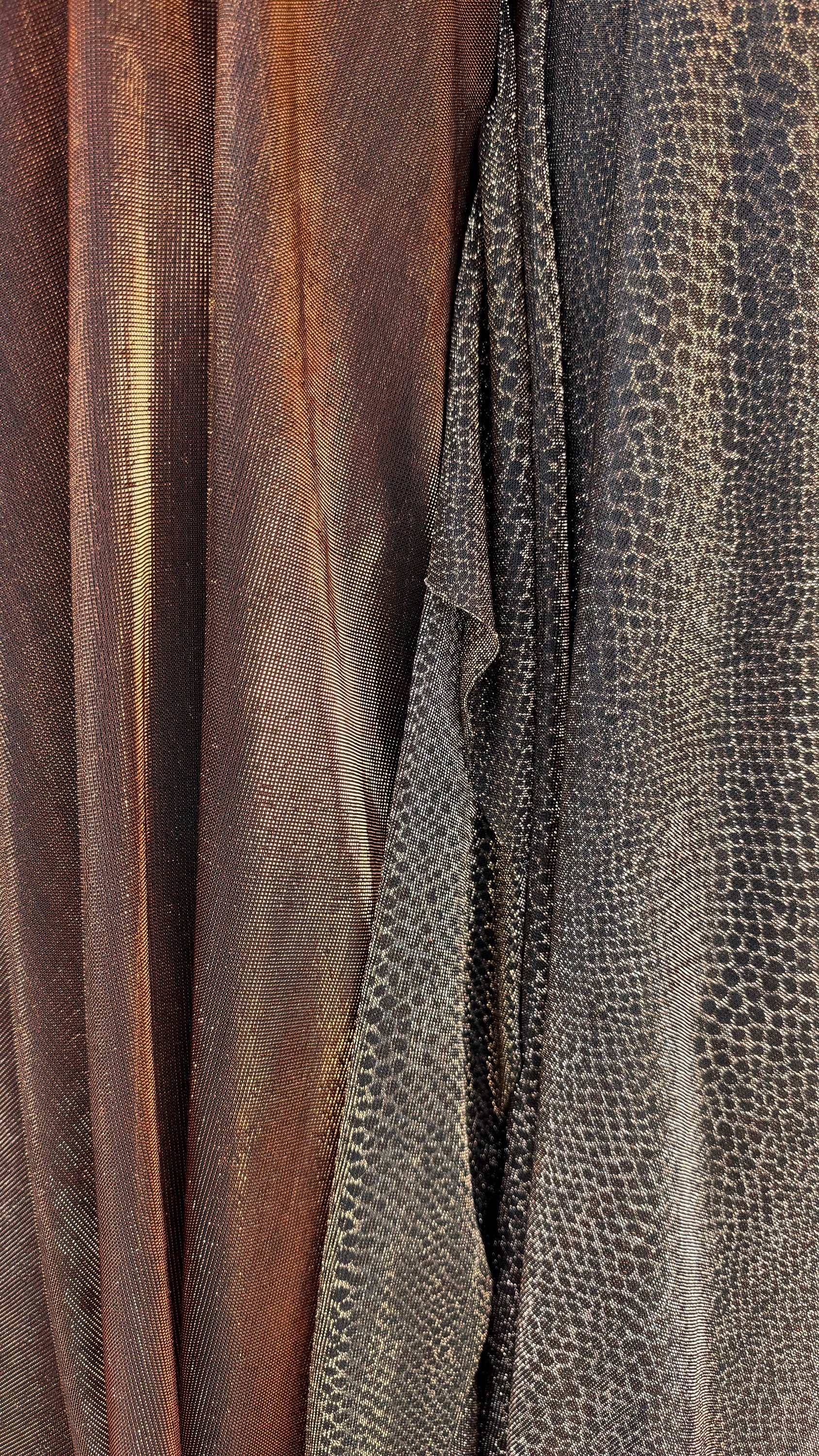 Metallic iridescence mesh plain copper and snake skin copper 2-way stretch 58/60” High quality fabrics by AlexLAFabrics