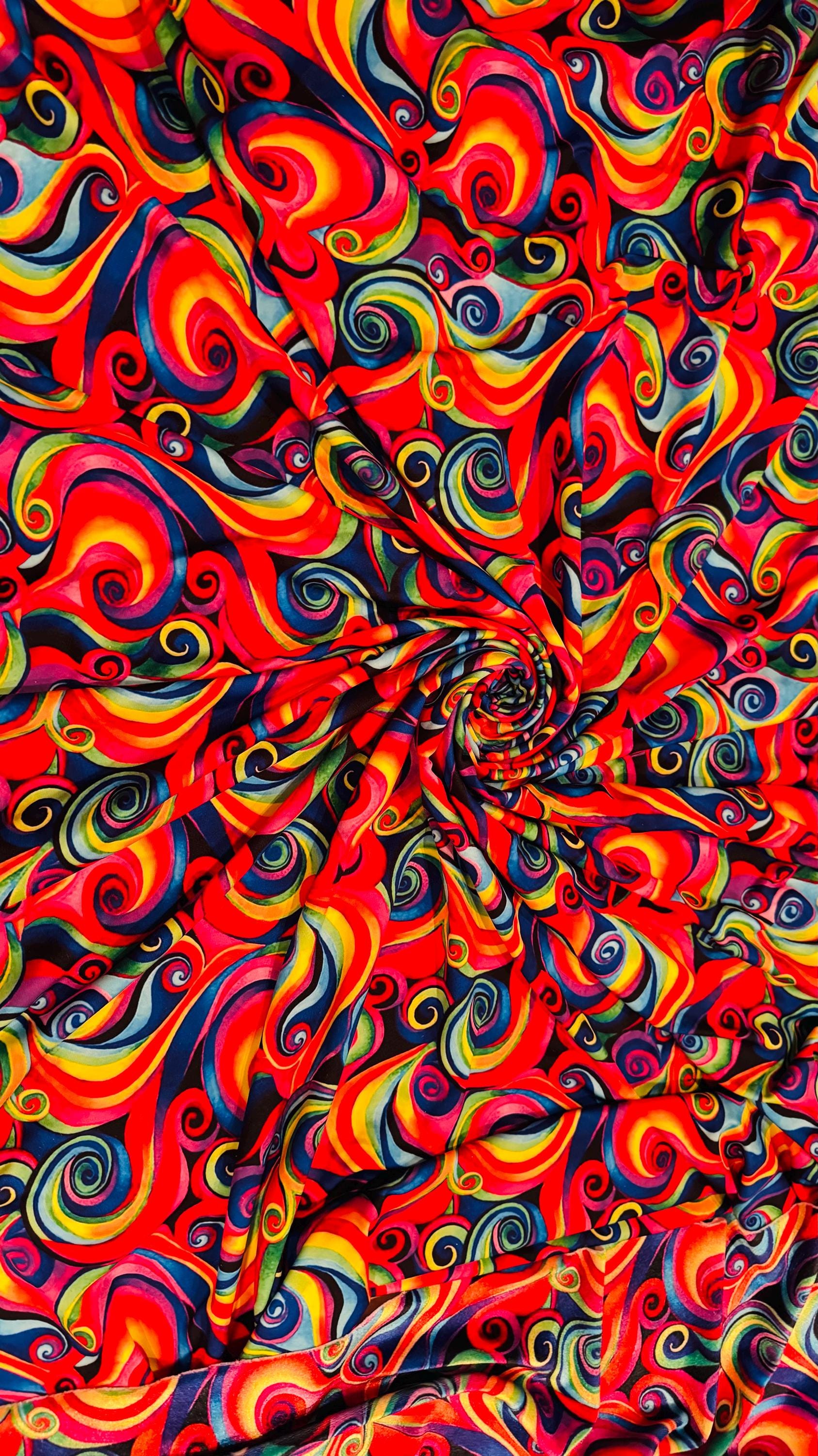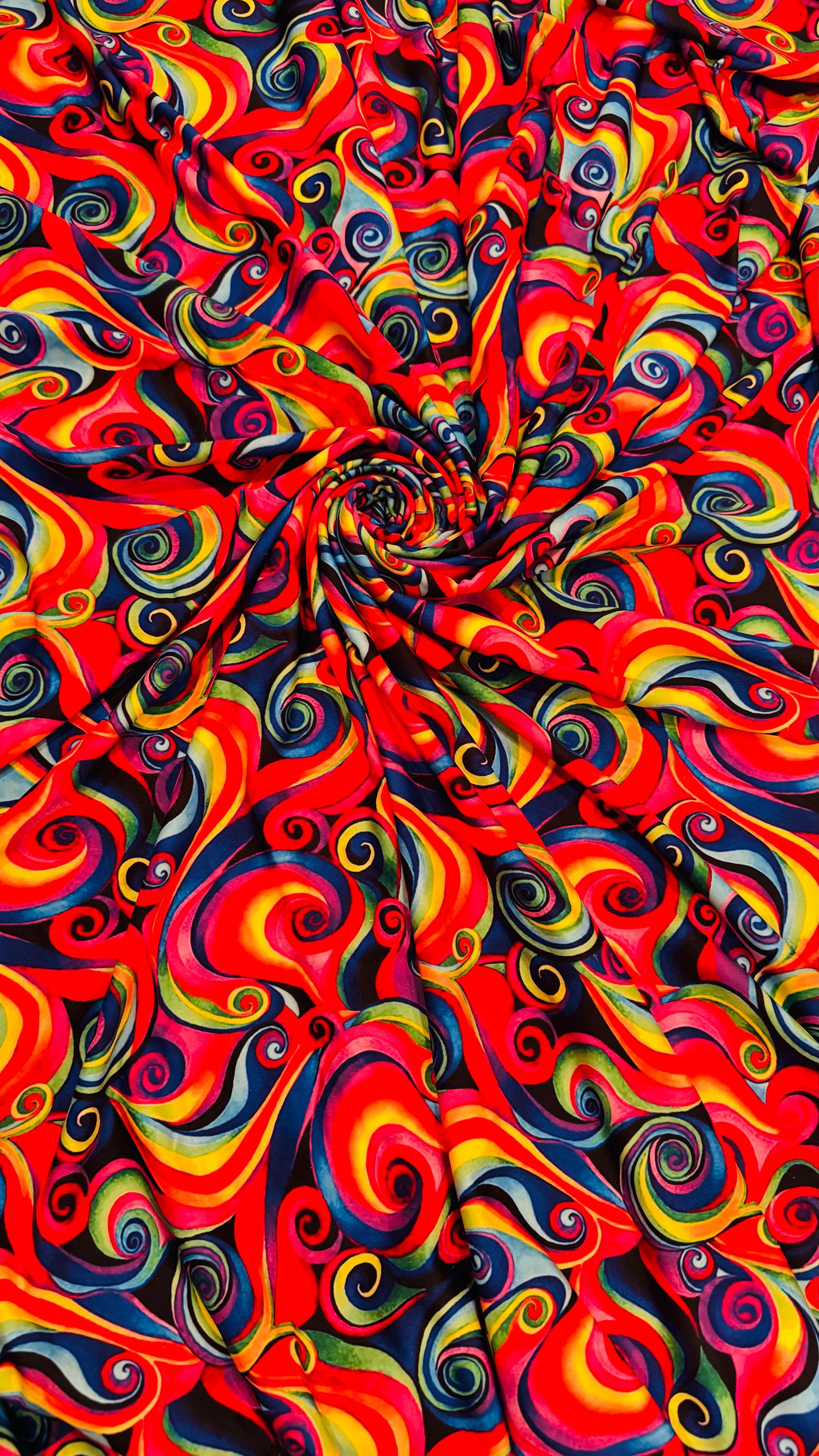 Modern abstract Paisley design Rainbow multicolor heavy stretch velvet 4-way 58/60” Sold by the YD. Ships worldwide from Los Angeles California USA.