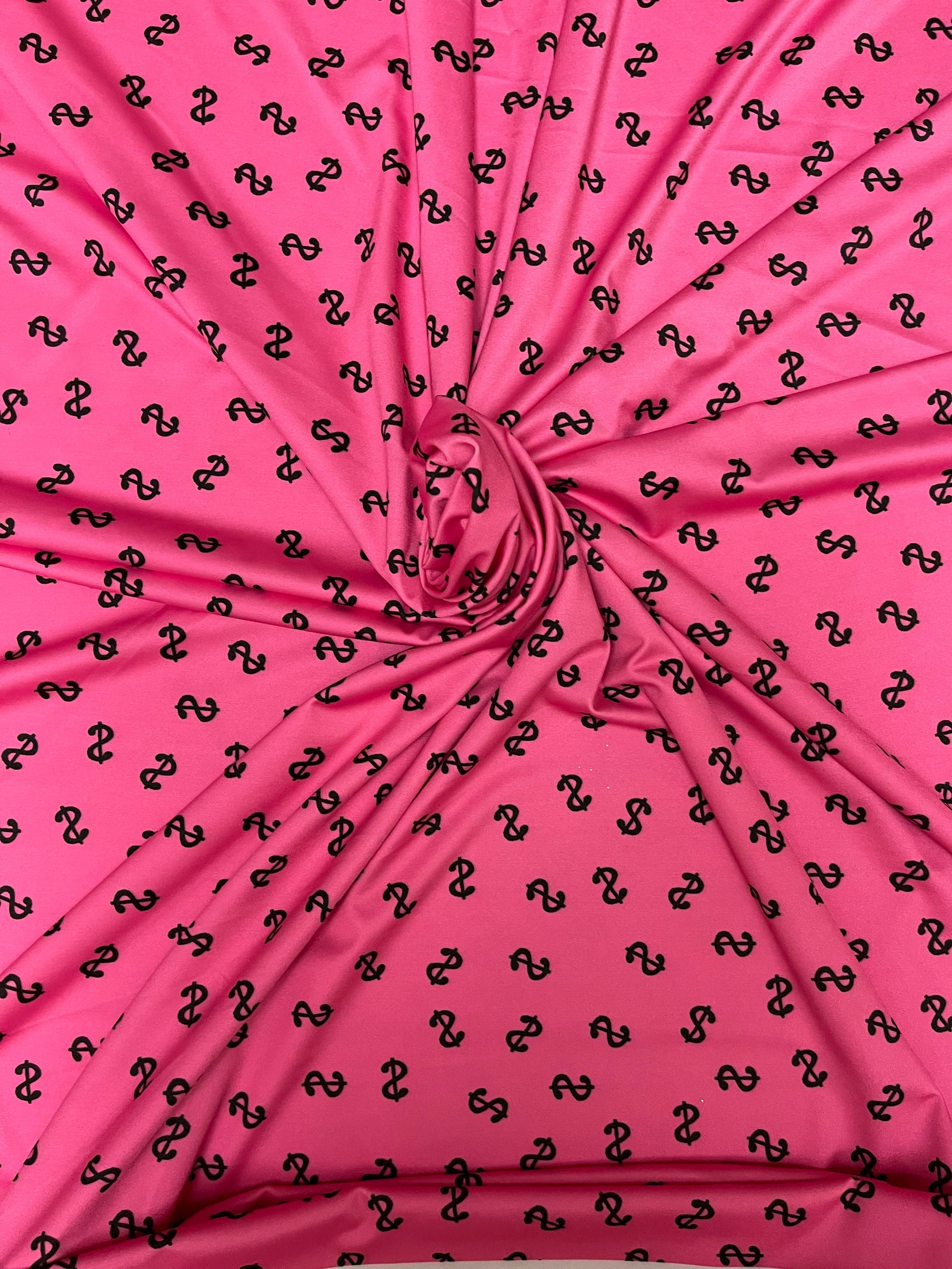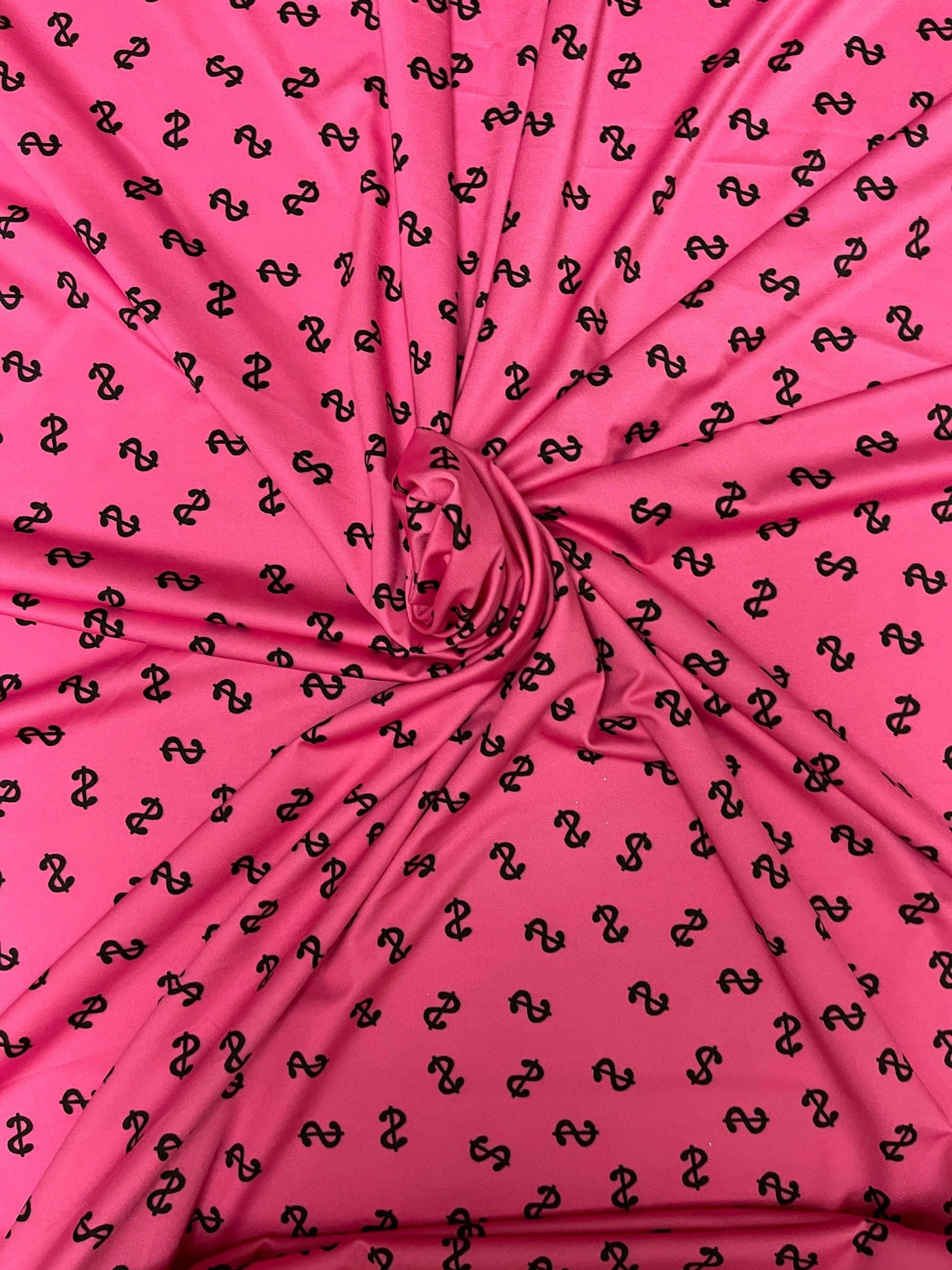 Money symbol design pink/black print on best quality of nylon spandex 4-way stretch 58/60” Sold by the YD. Ships Worldwide from Los Angeles