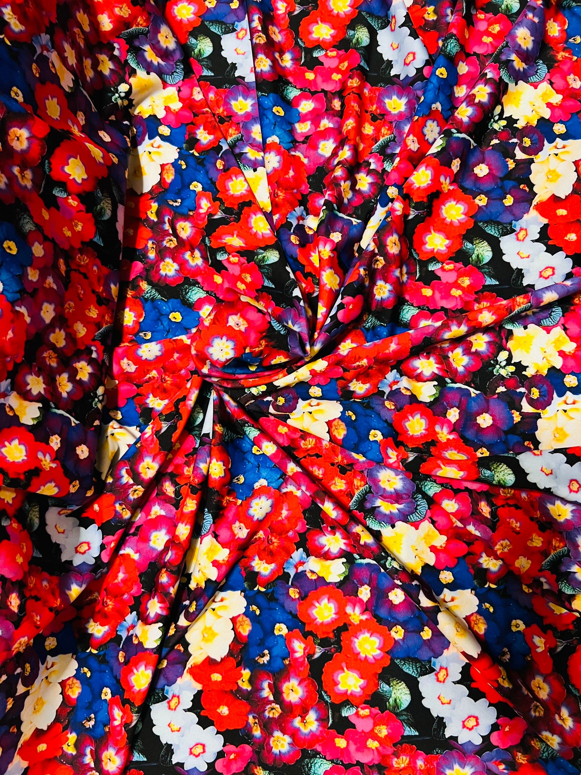 Multicolor flowers design new Luxury print nylon spandex 4-way stretch 58/60” Sold by the YD. Ships Worldwide from Los Angeles California US