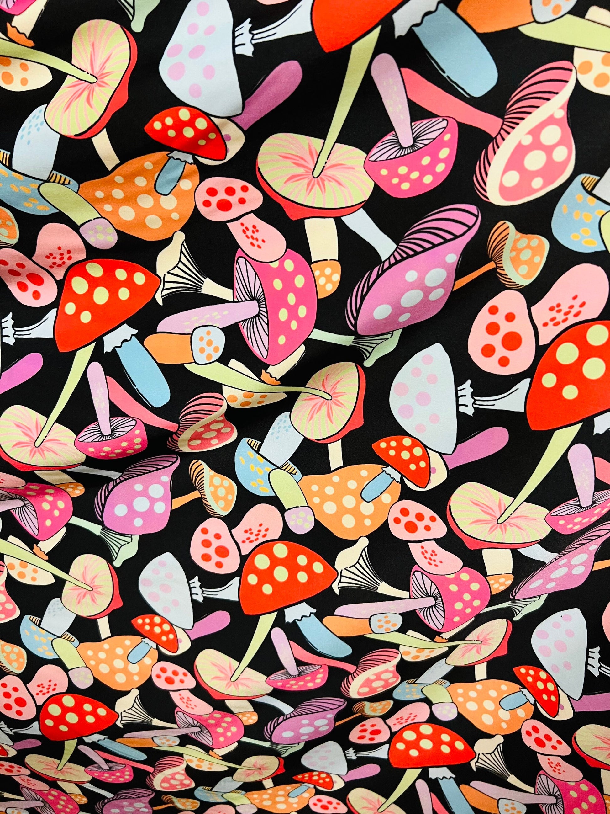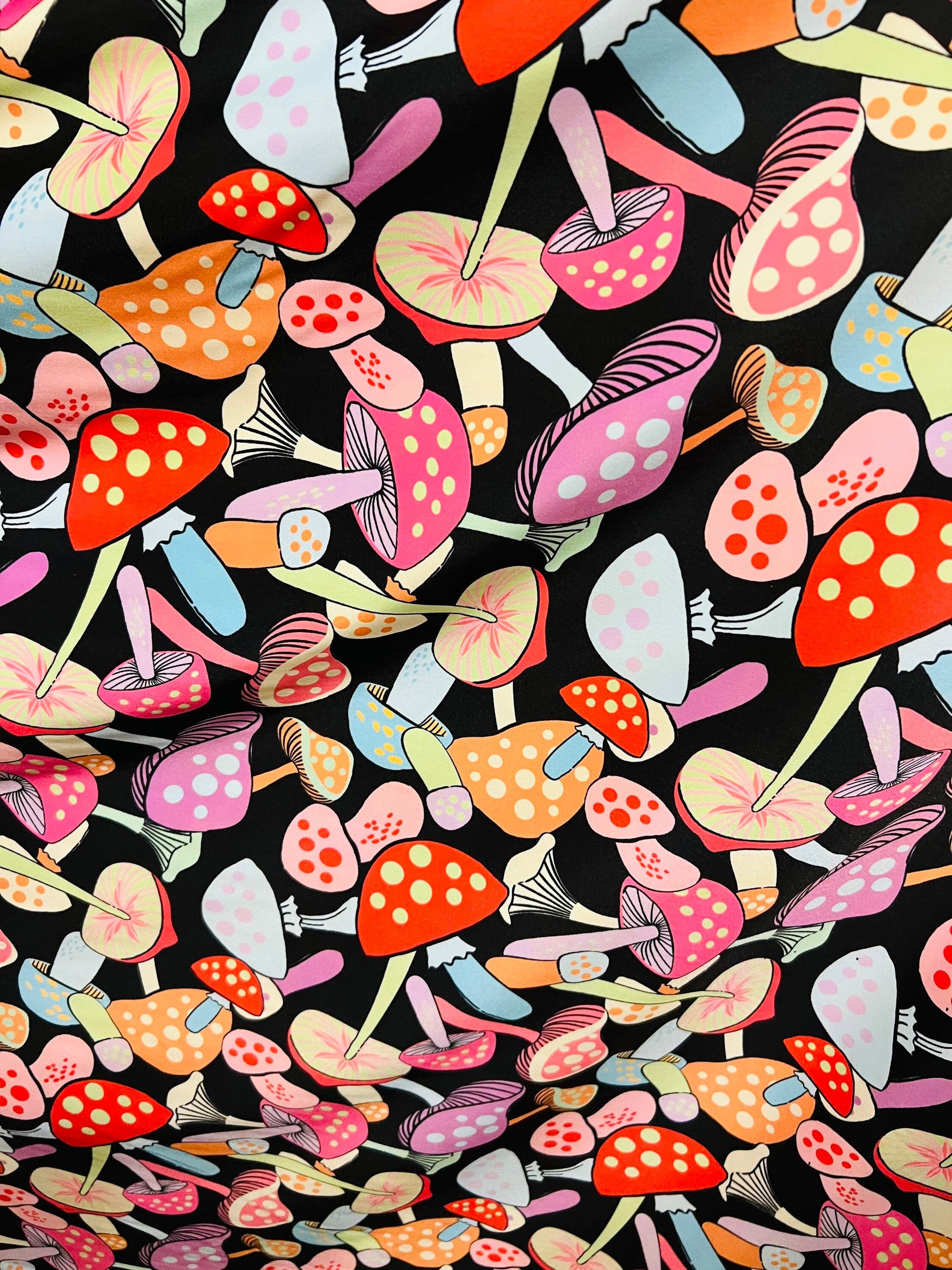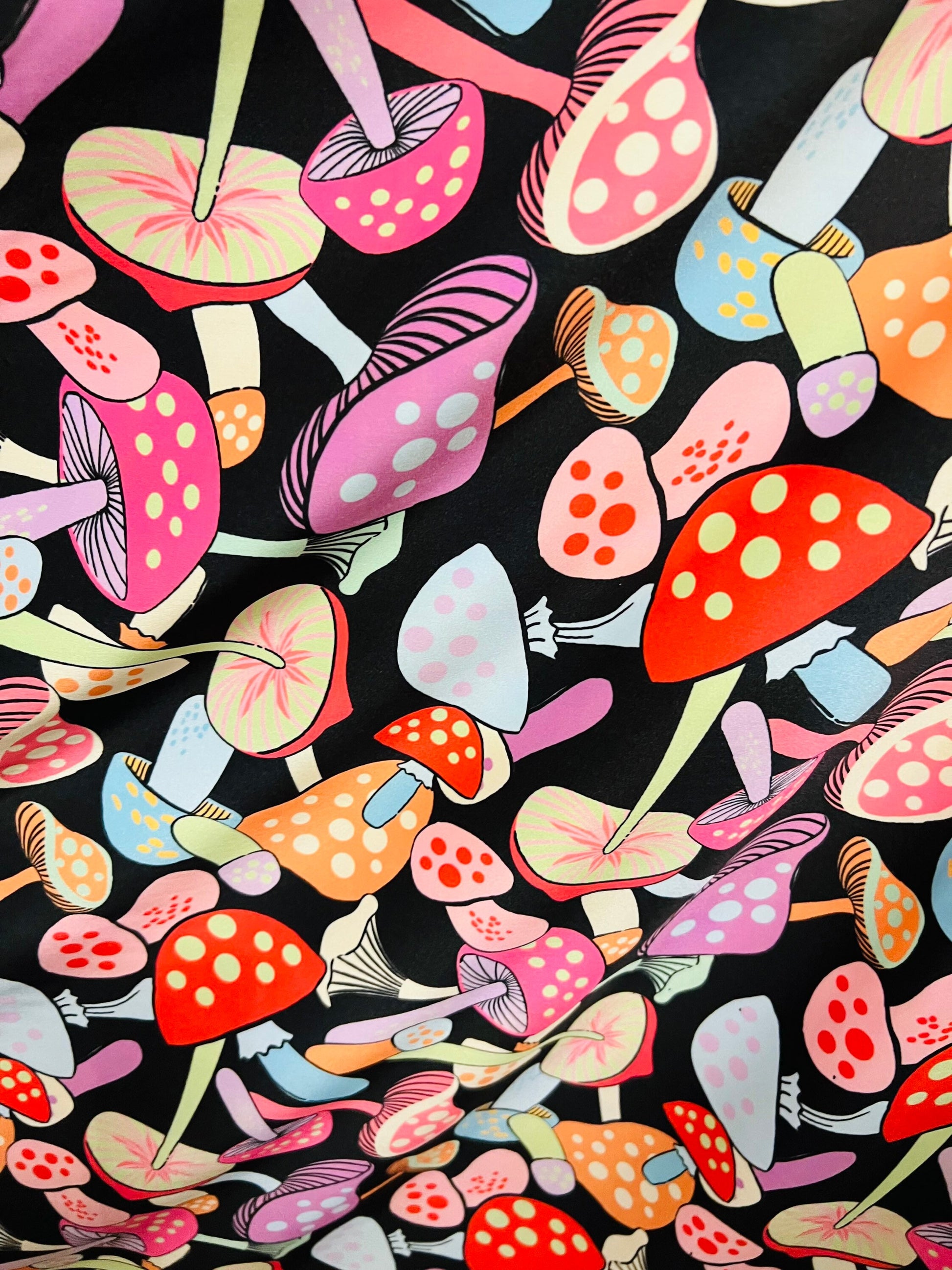 Mushrooms in wonderland design Multicolor print on best quality of nylon spandex 4-way stretch 58/60” Sold by the YD. Ships Worldwide From Los Angeles California USA