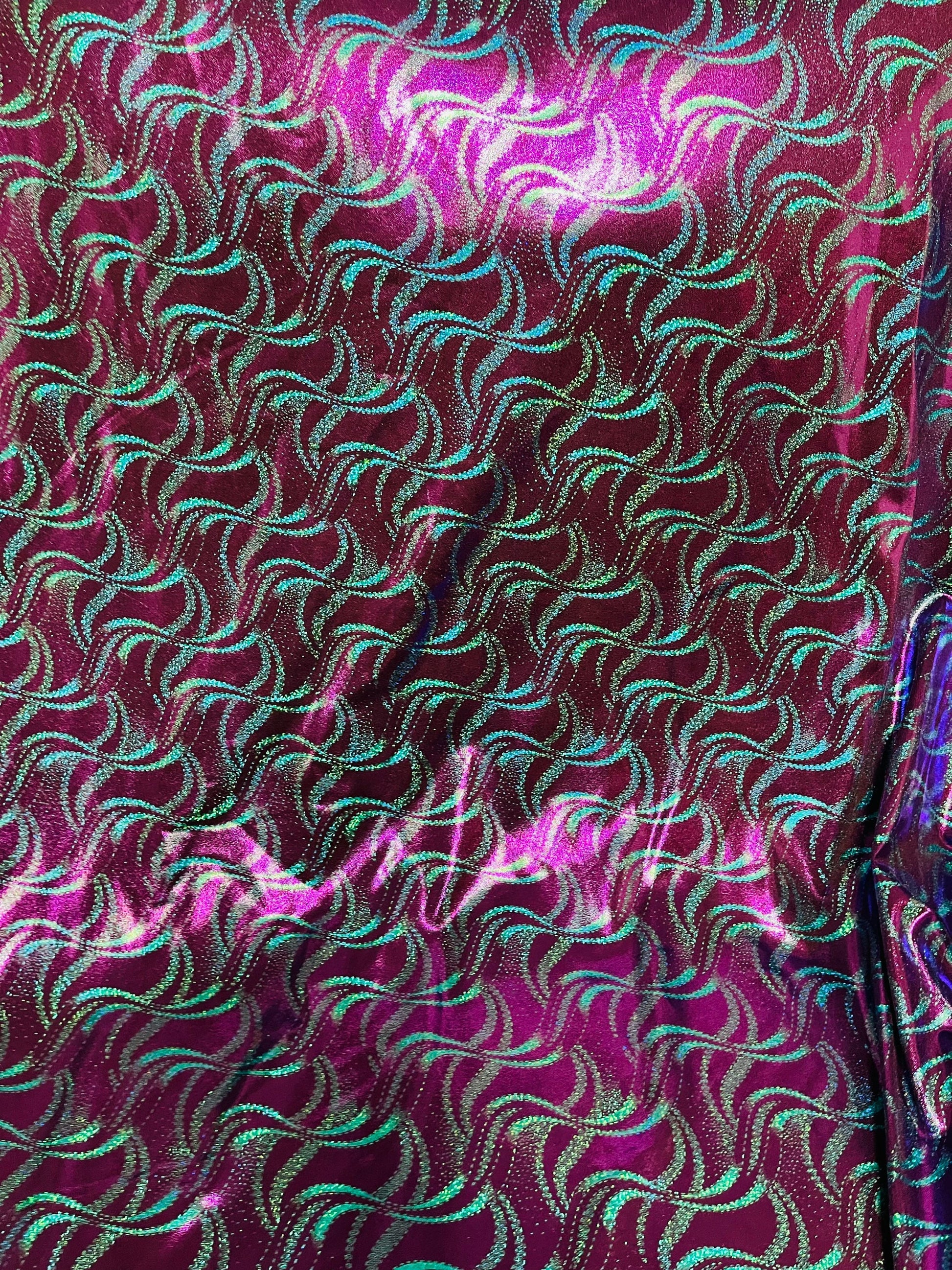New abstract design hologram nylon spandex 4-way stretch 58/60” Sold by the YD. Ships Worldwide from Los Angeles California USA.