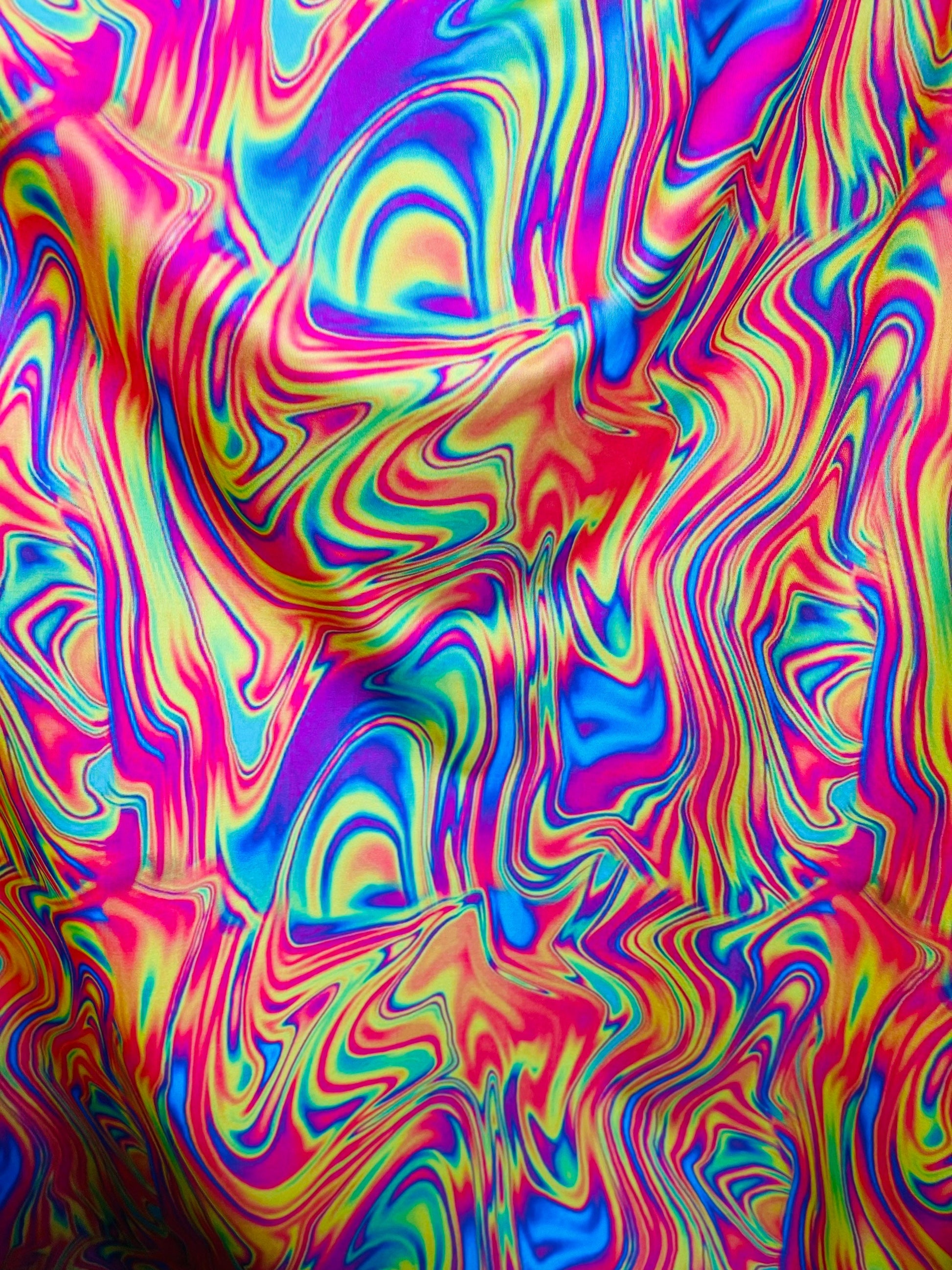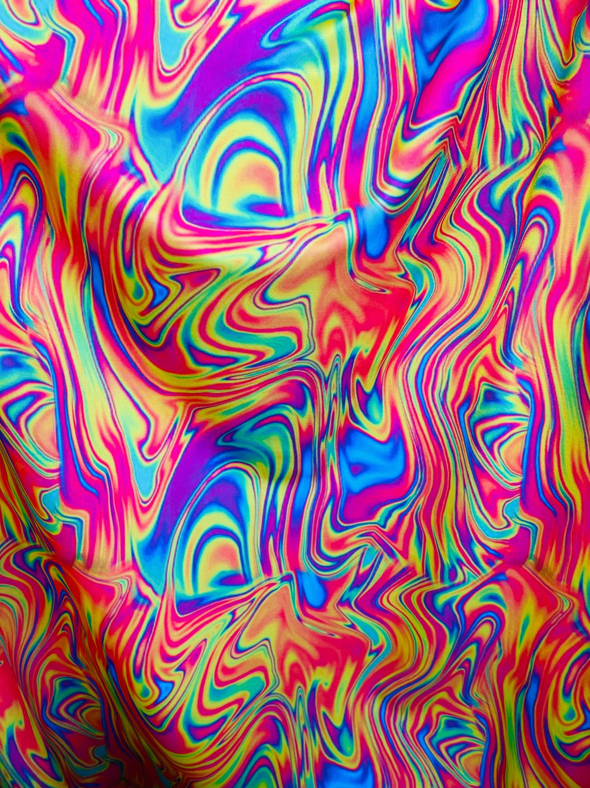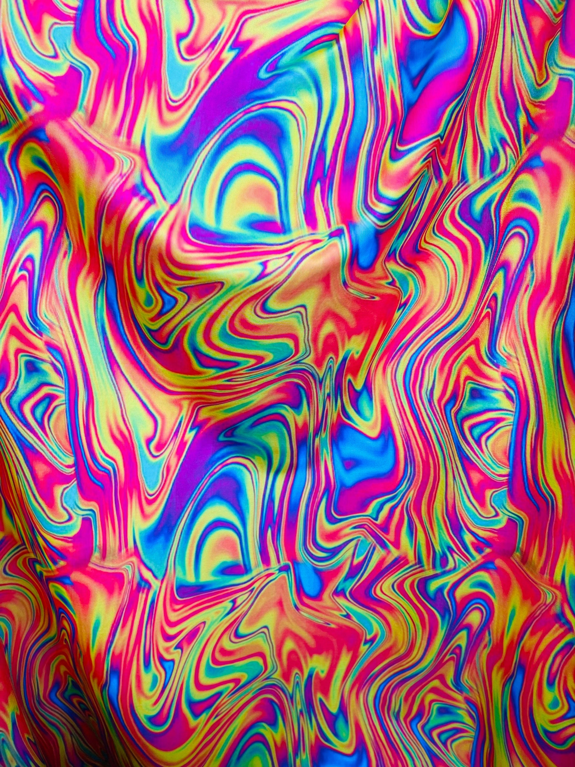 New abstract design lava multicolor print on great quality of nylon spandex 4-way stretch 58/60” Sold by the YD. Ships Worldwide from Los Angeles California USA.