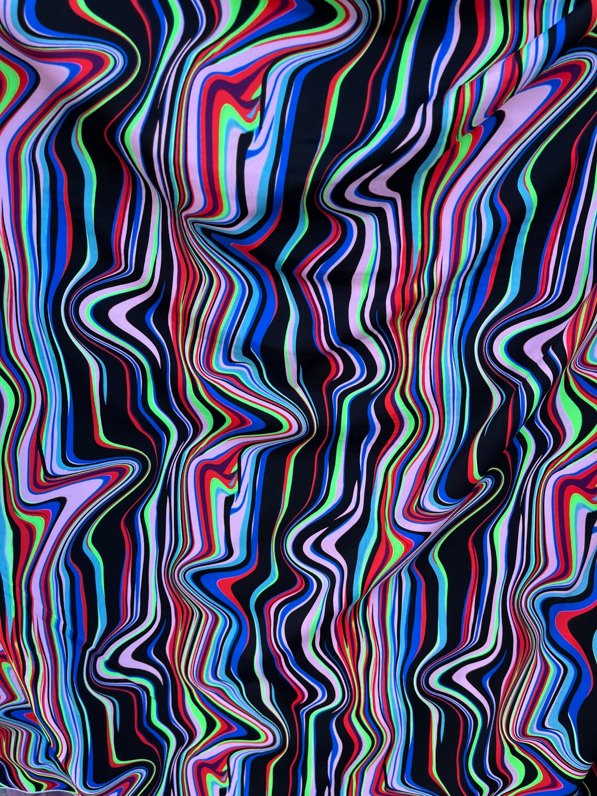 New abstract design multicolor print on best quality of nylon spandex 4-way stretch 58/60” Sold by the YD. Ships worldwide from Los Angeles California USA.