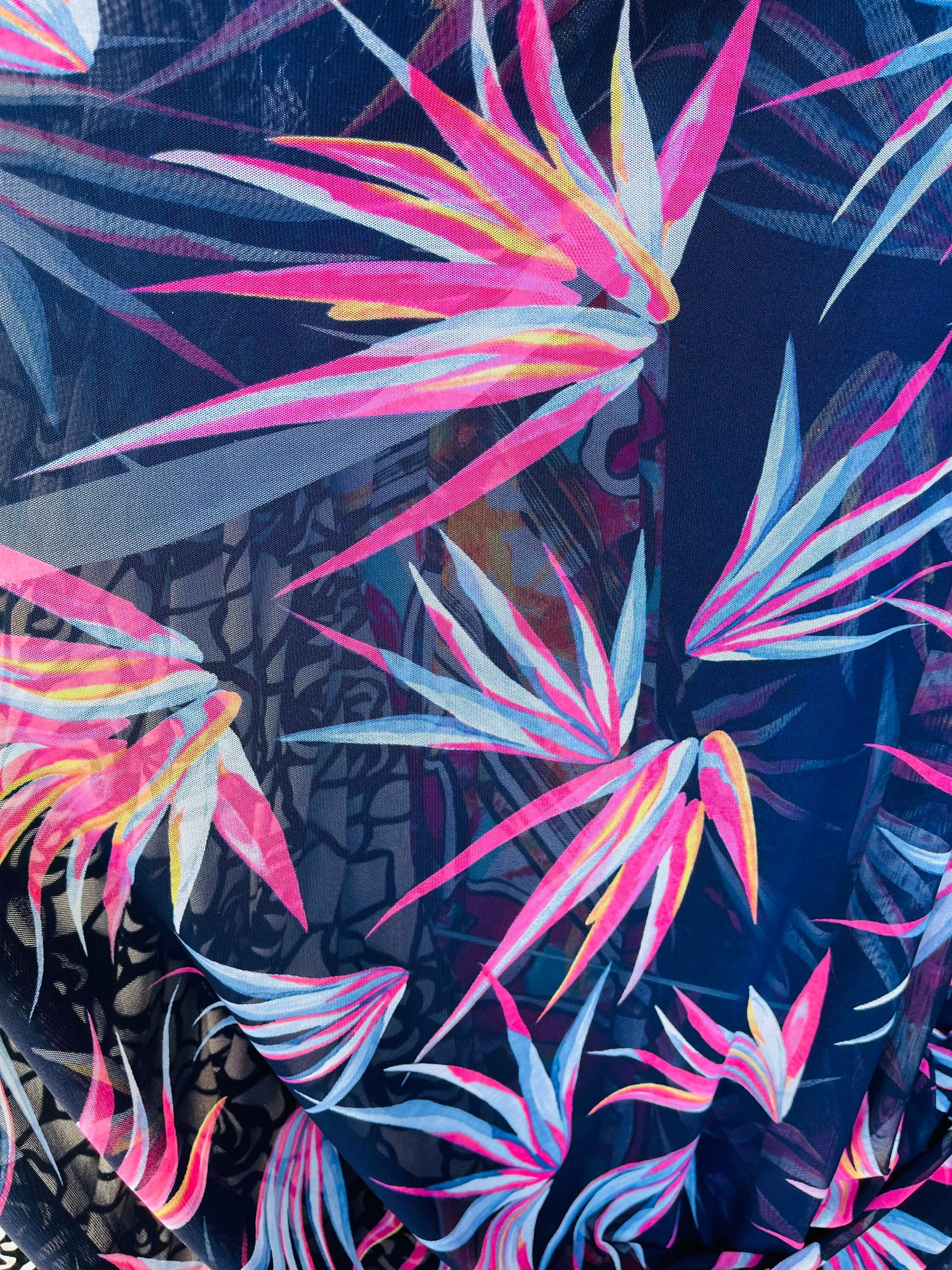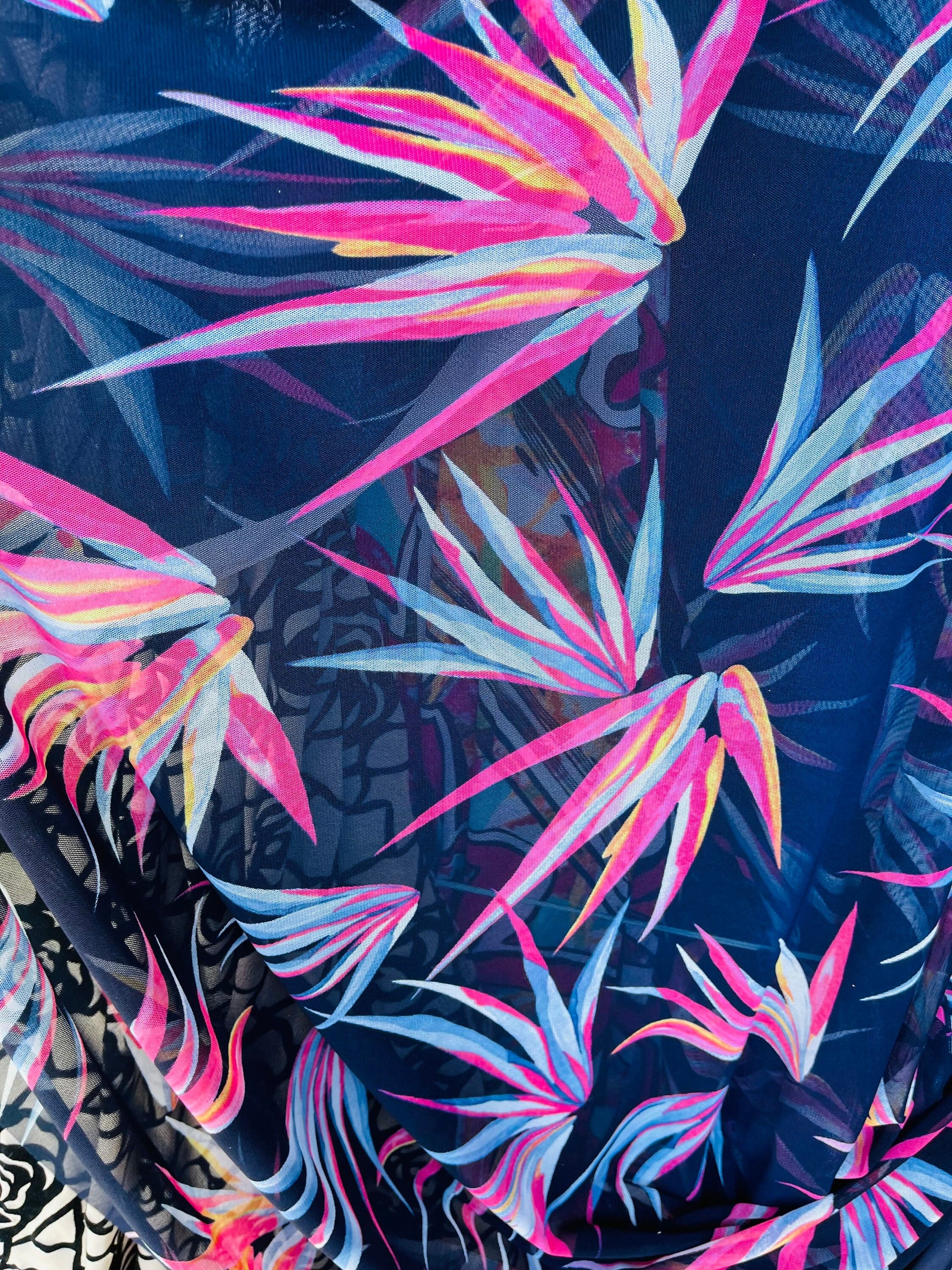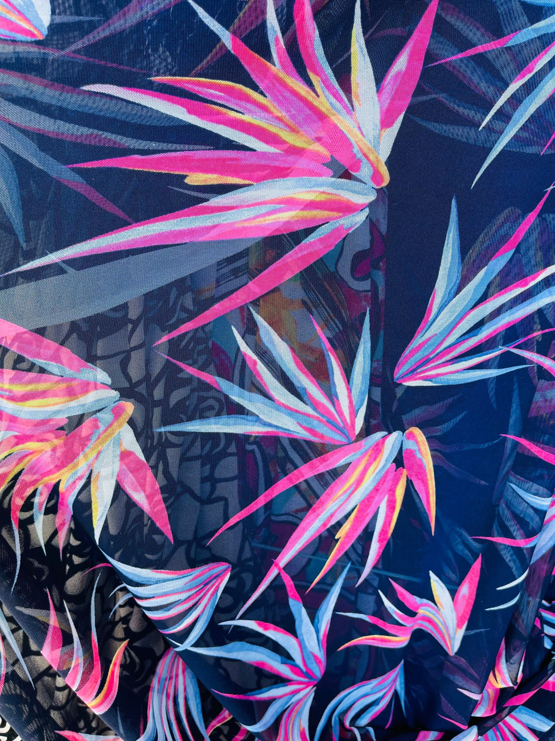 New abstract design print on great quality of power mesh 4-way stretch 58/60” Sold by the YD. Ships Worldwide from Los Ángeles California USA