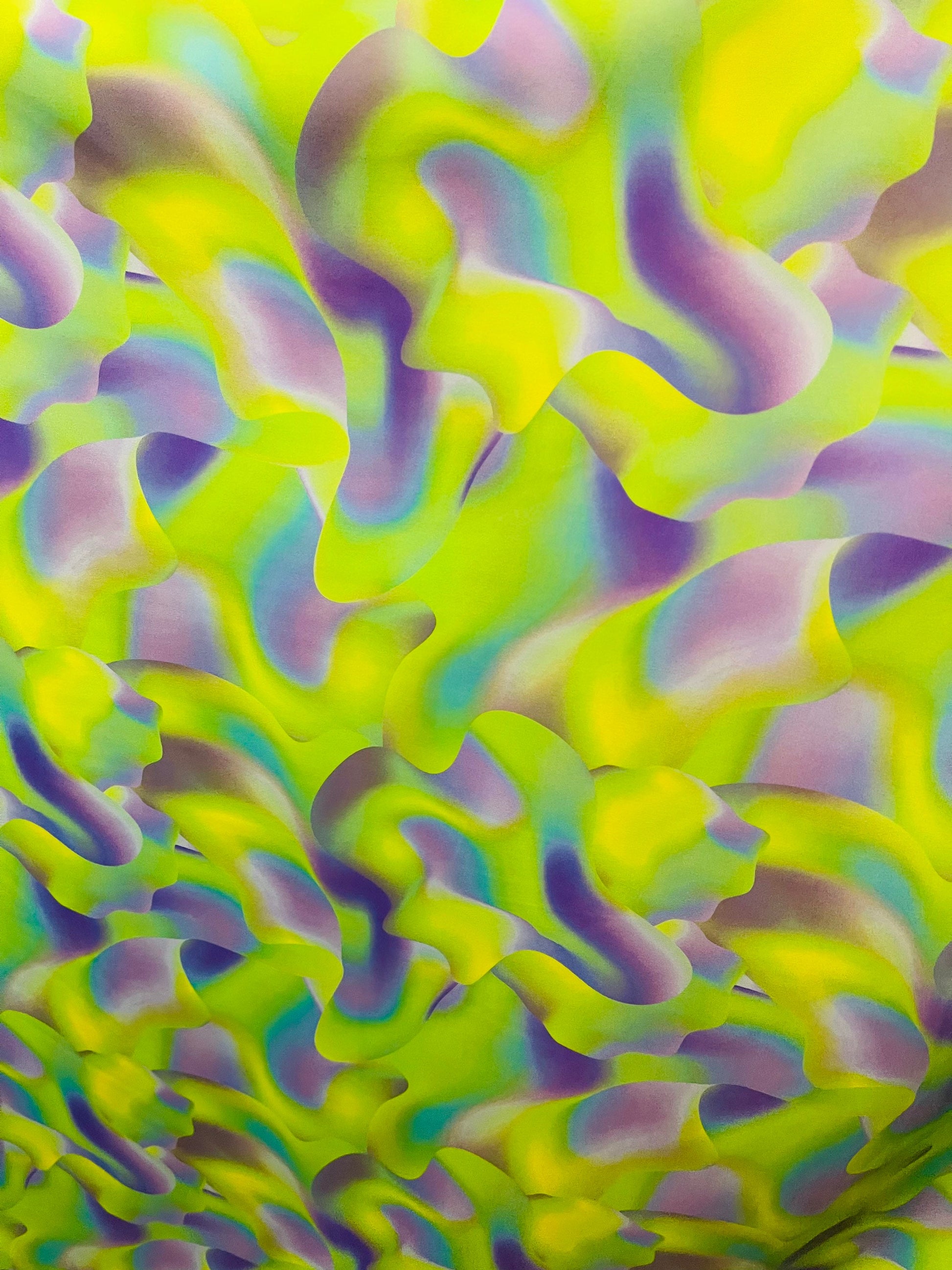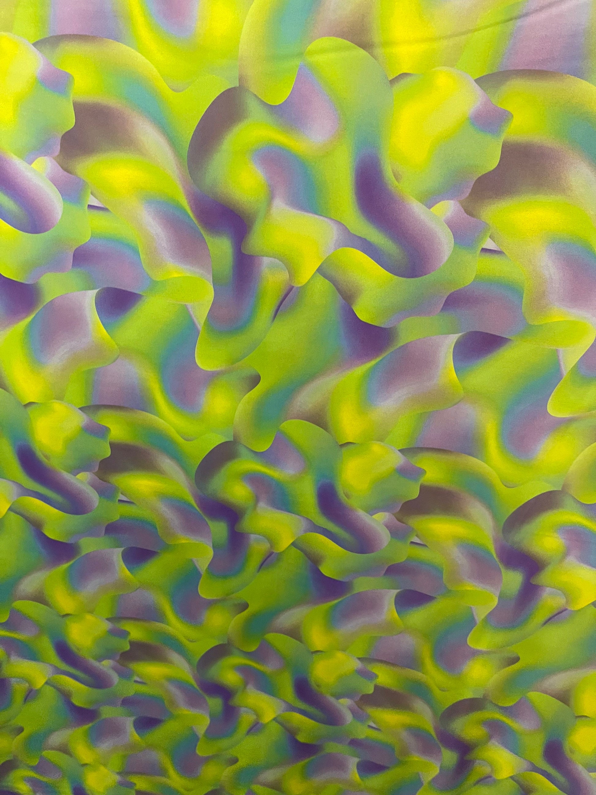 New abstract lava design Green/Purple print on best quality of nylon spandex 4-way stretch 58/60” Sold by the YD. Ships Worldwide from Los Angeles California USA.
