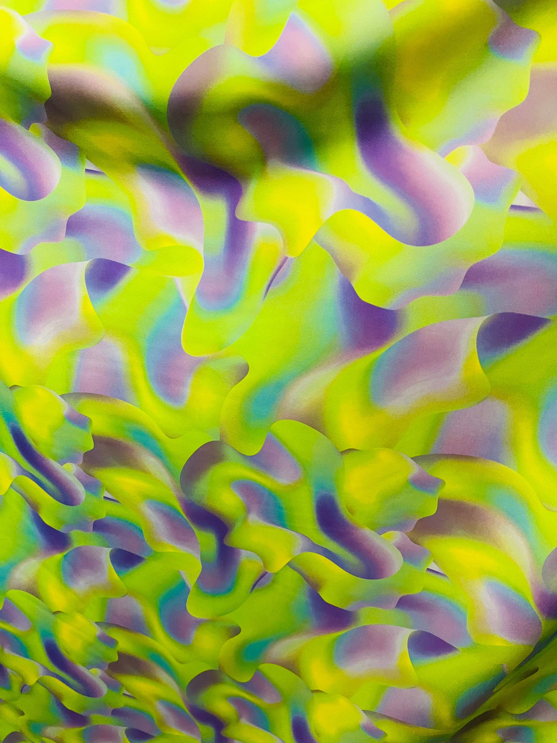 New abstract lava design Green/Purple print on best quality of nylon spandex 4-way stretch 58/60” Sold by the YD. Ships Worldwide