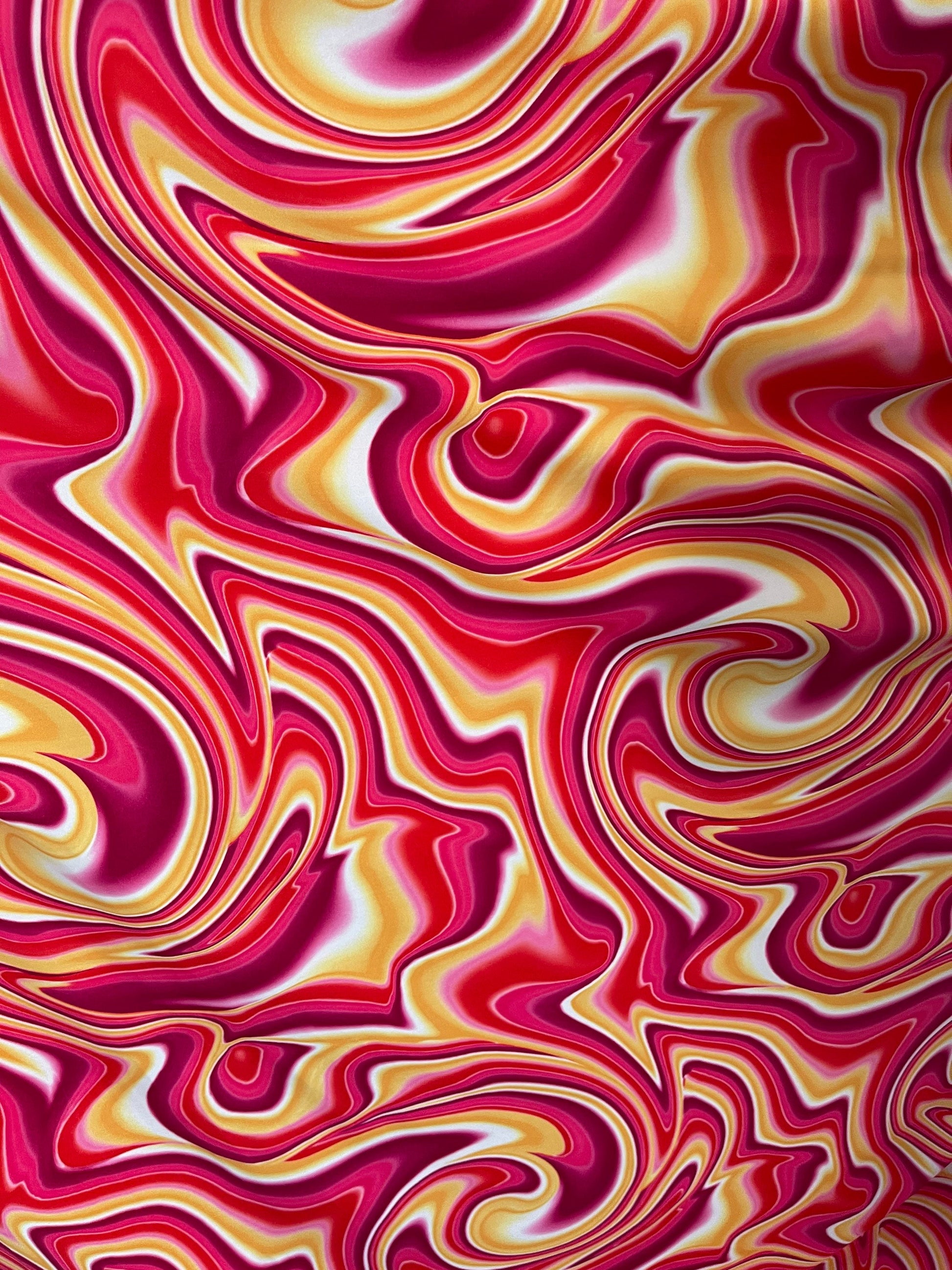 New abstract lava design Magenta/multicolor print on best quality of nylon spandex 4-way stretch 58/60” Sold by the YD. Ships worldwide From Los Angeles California USA.