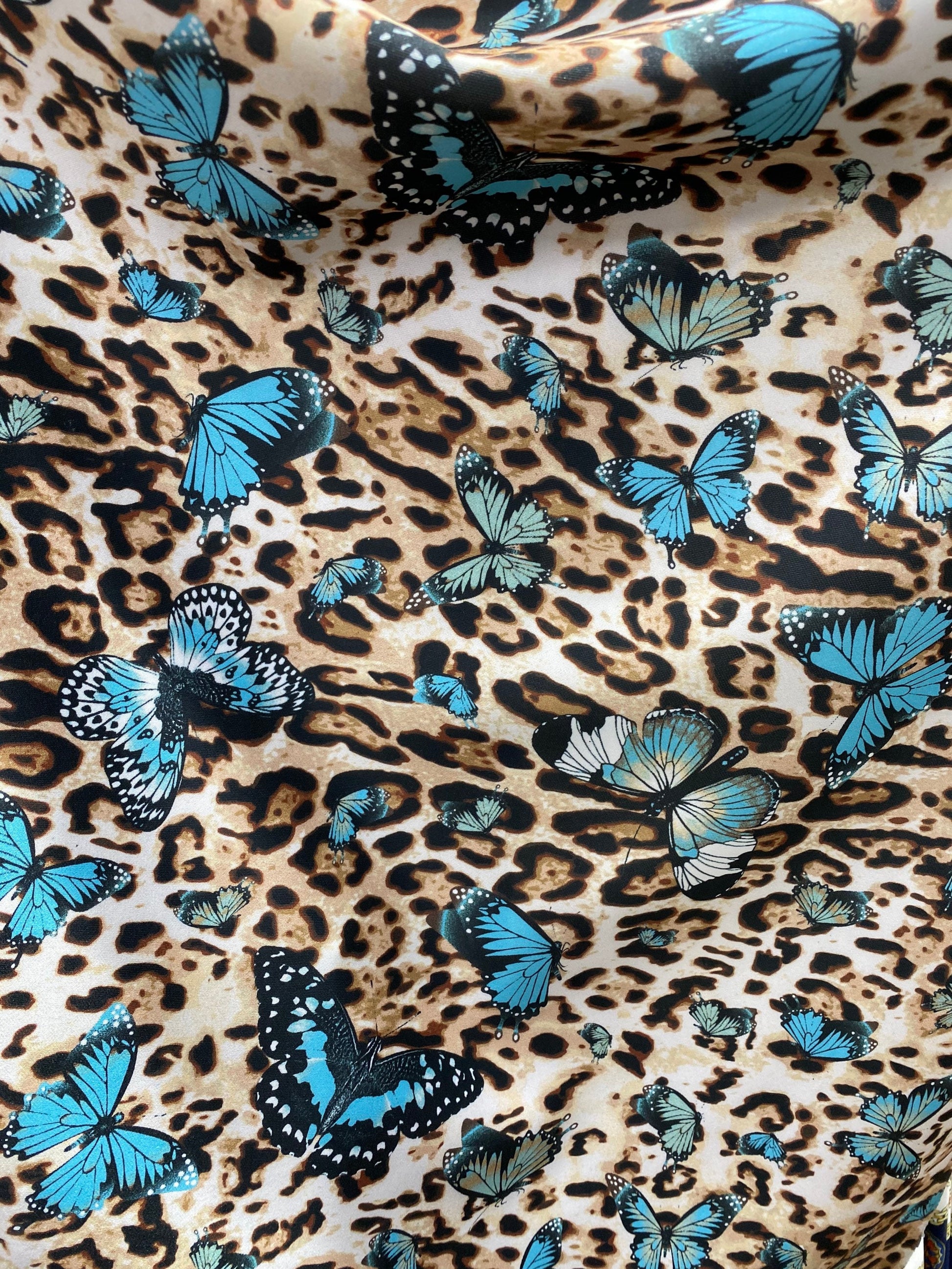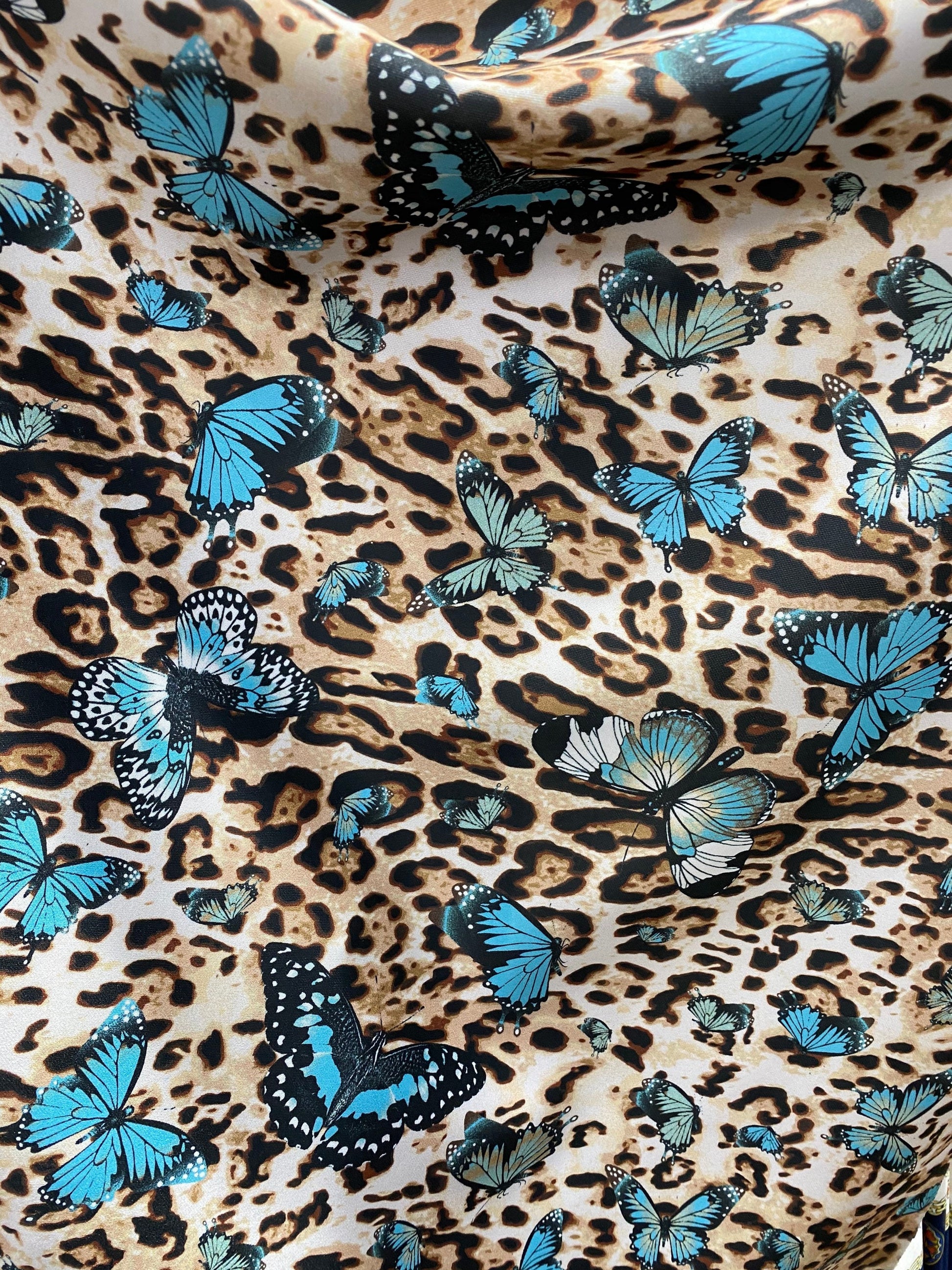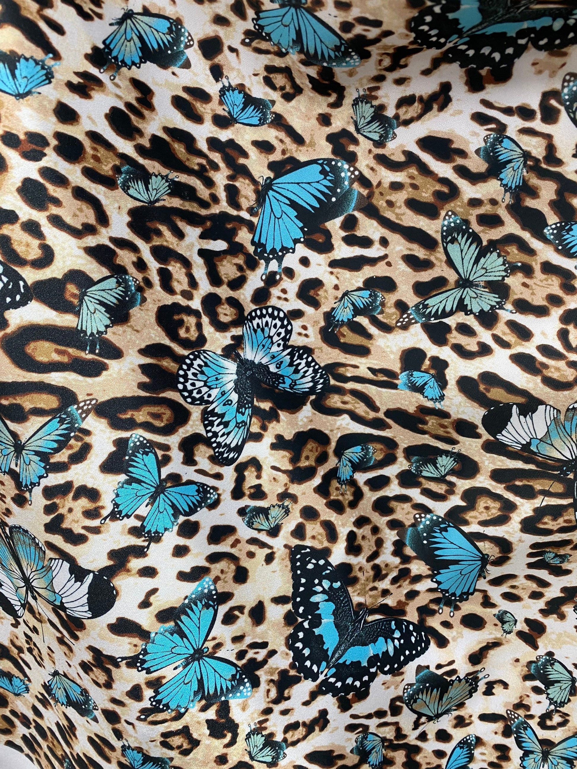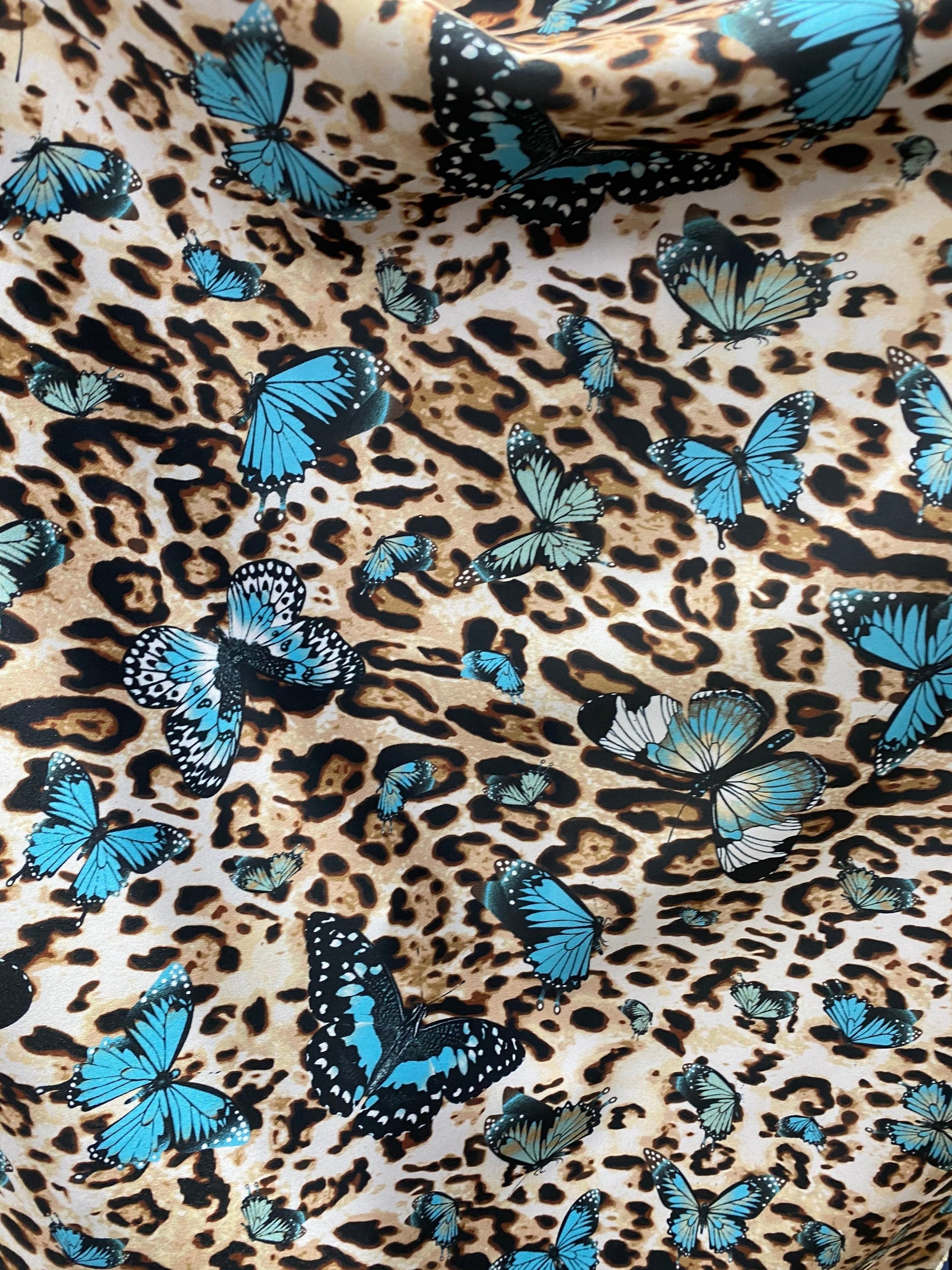 New butterfly design print on poly techno spandex 2-way stretch 58/60” Sold by the YD. Ships Worldwide from Los Angeles California USA.