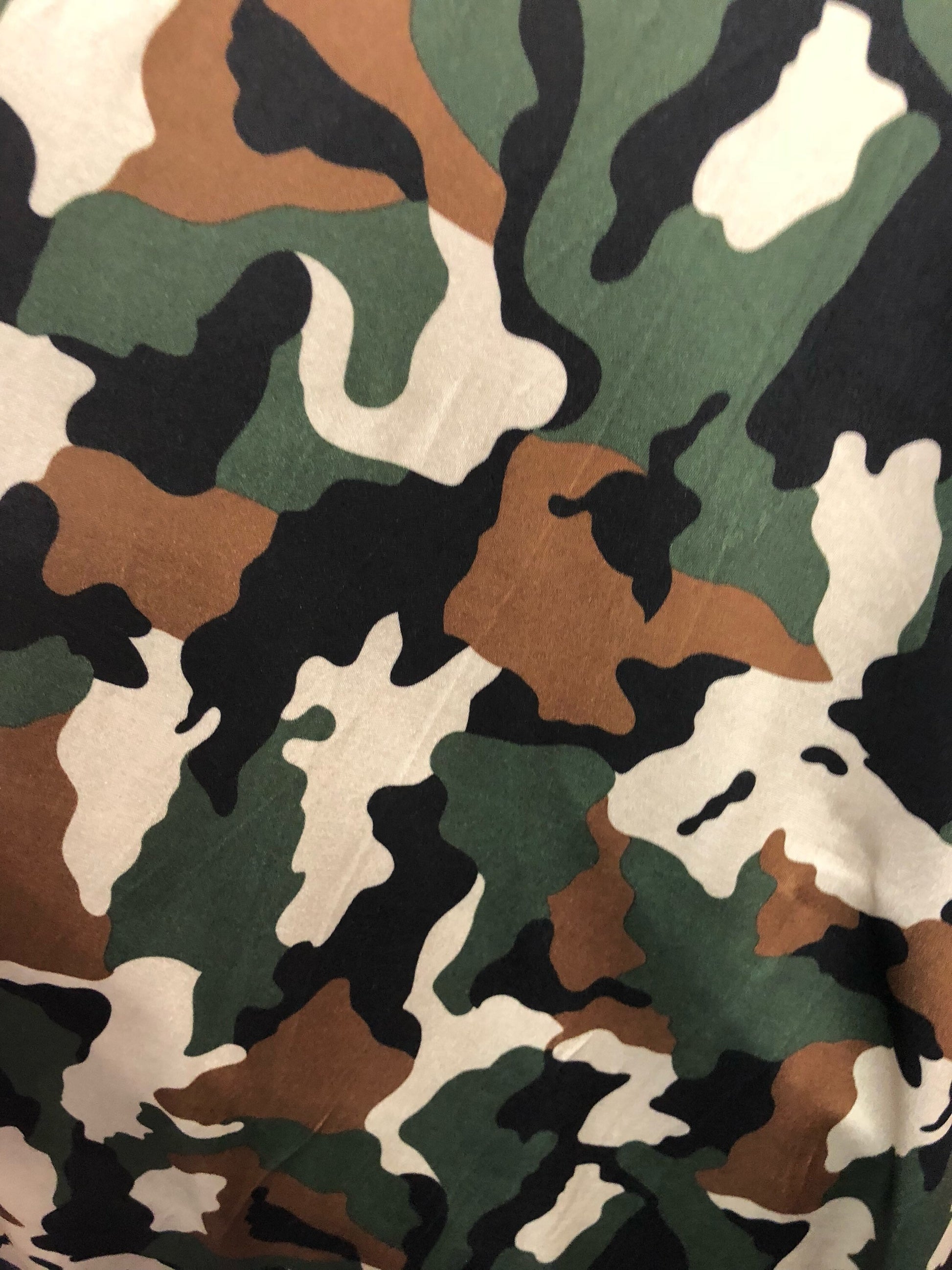 New camouflage design nylon spandex 4way Stretch 58/60" Sold by the YD. Ships worldwide from Los Angeles California USA