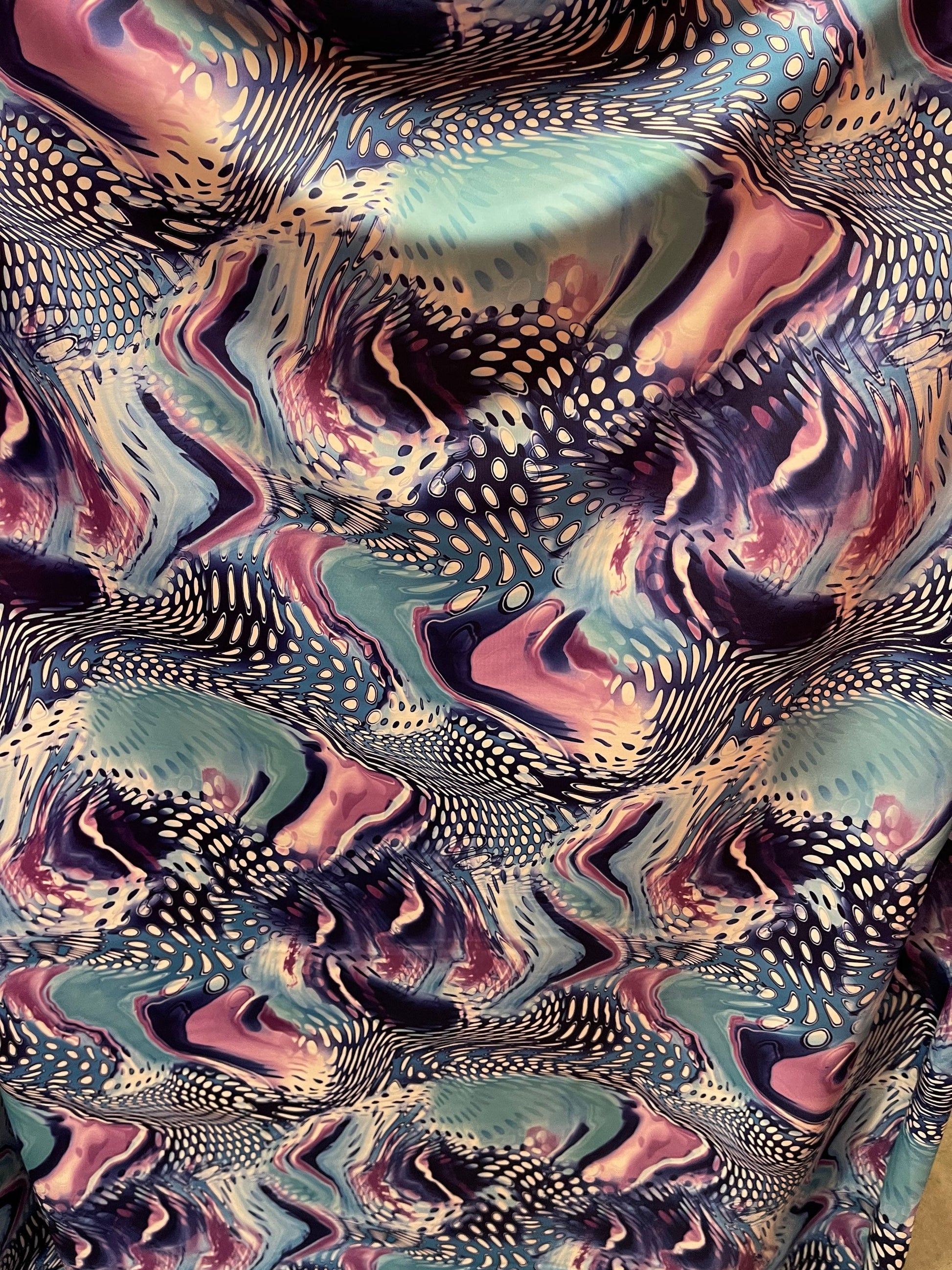 New Exotic abstract design Multi animal print on best quality of nylon spandex 4-way stretch 58/60” Sold by the YD. Ships Worldwide from Los Angeles California USA.