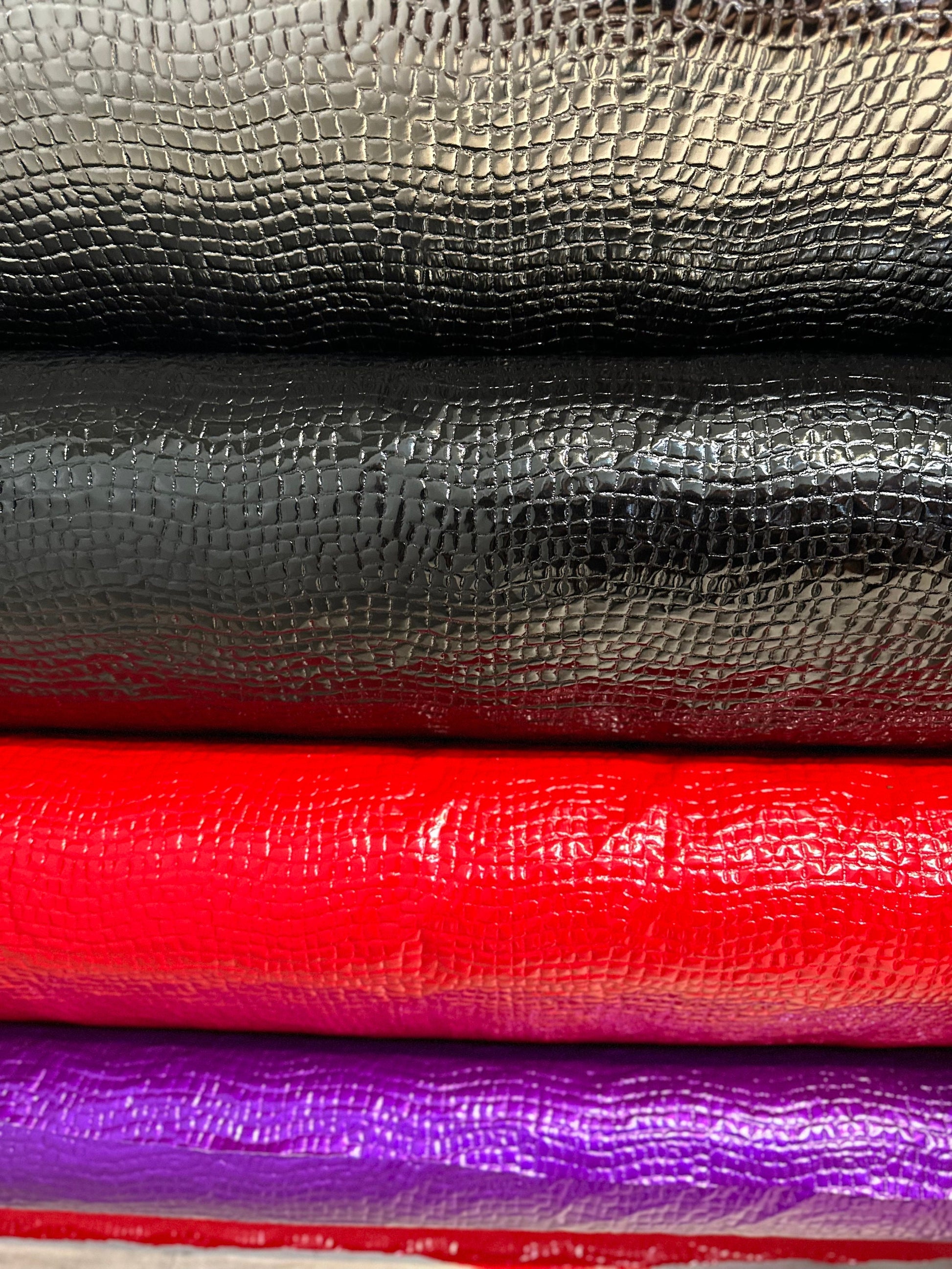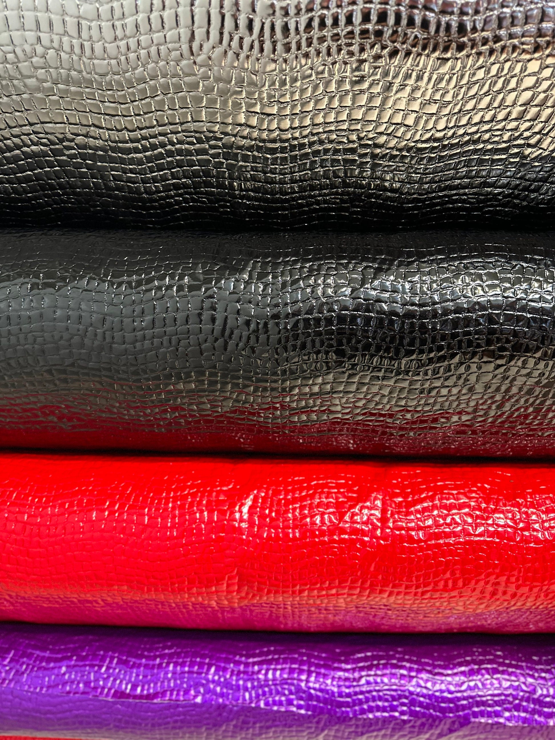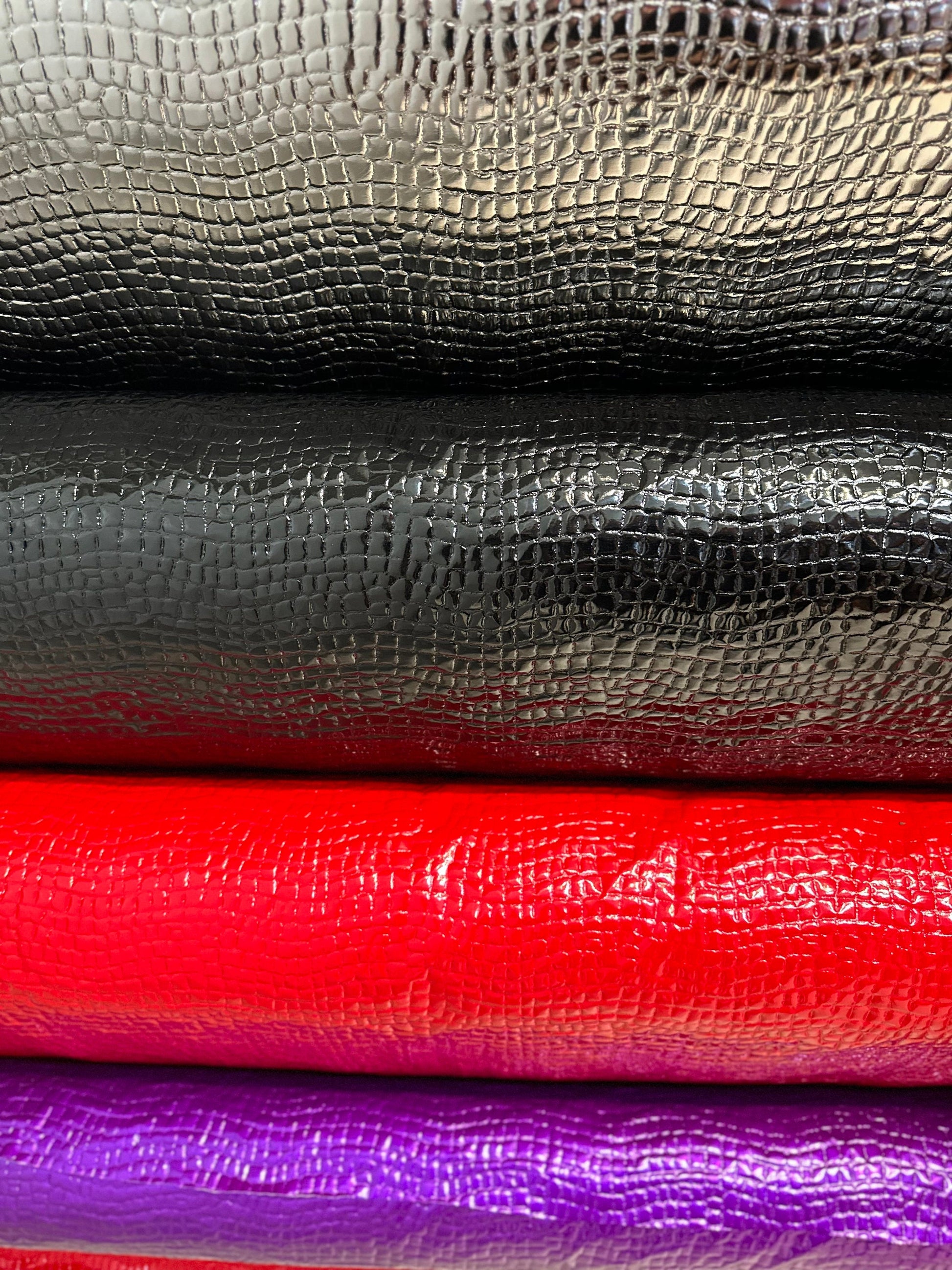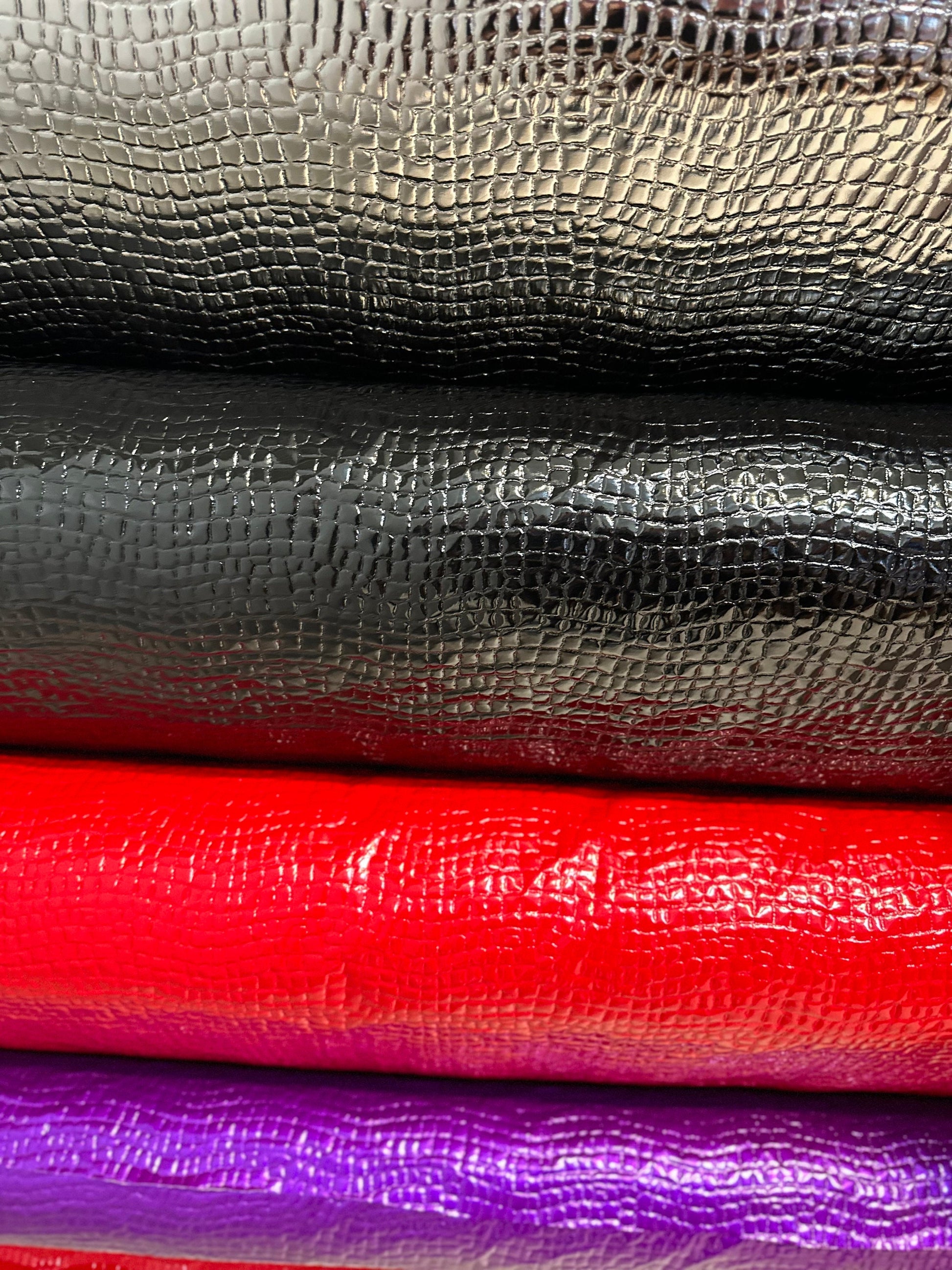 New Exotic Alligator design PU coated stretch vinyl 4-way stretch 58/60” Sold by the YD. Ships worldwide from Los Angeles California USA.