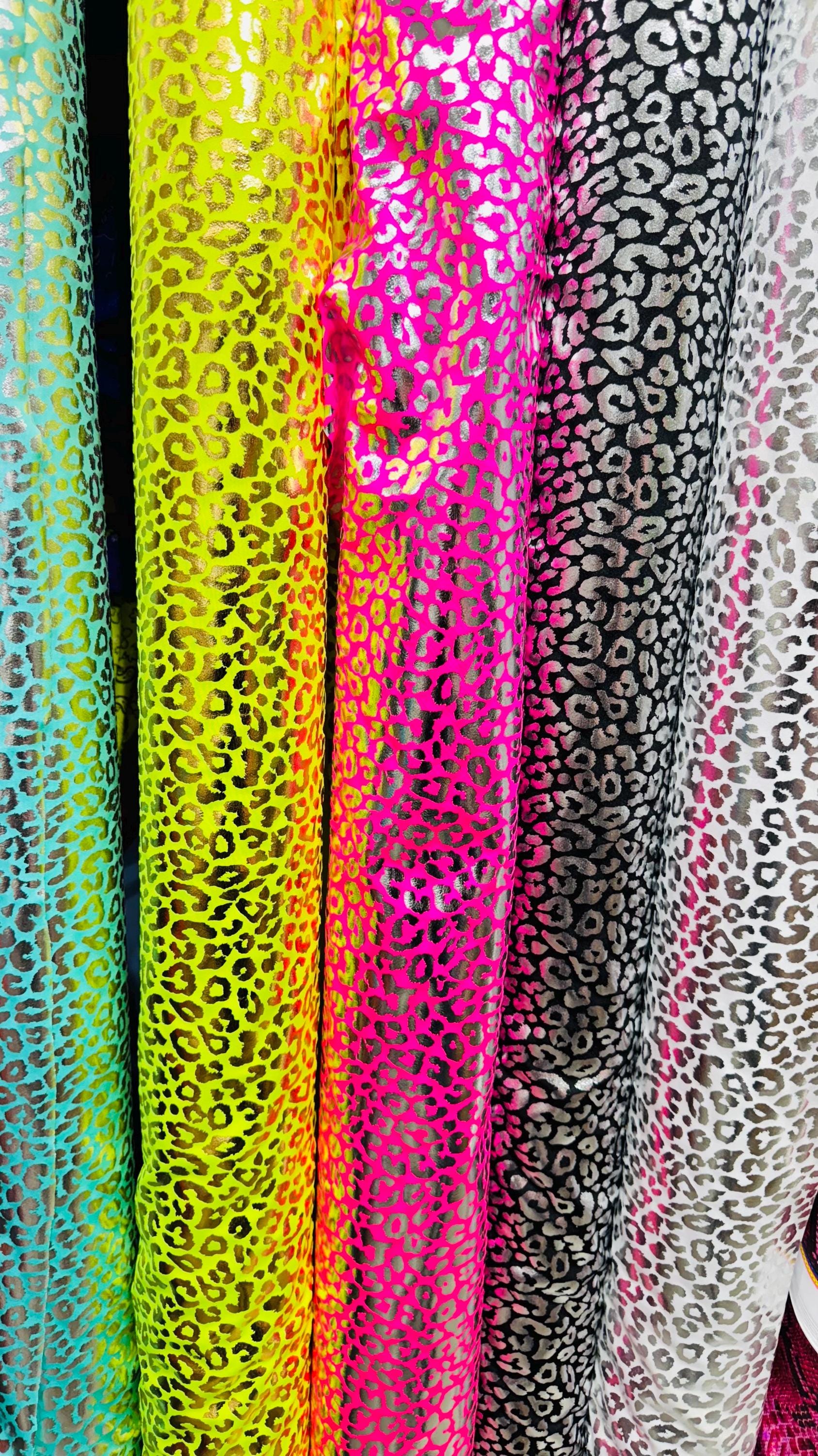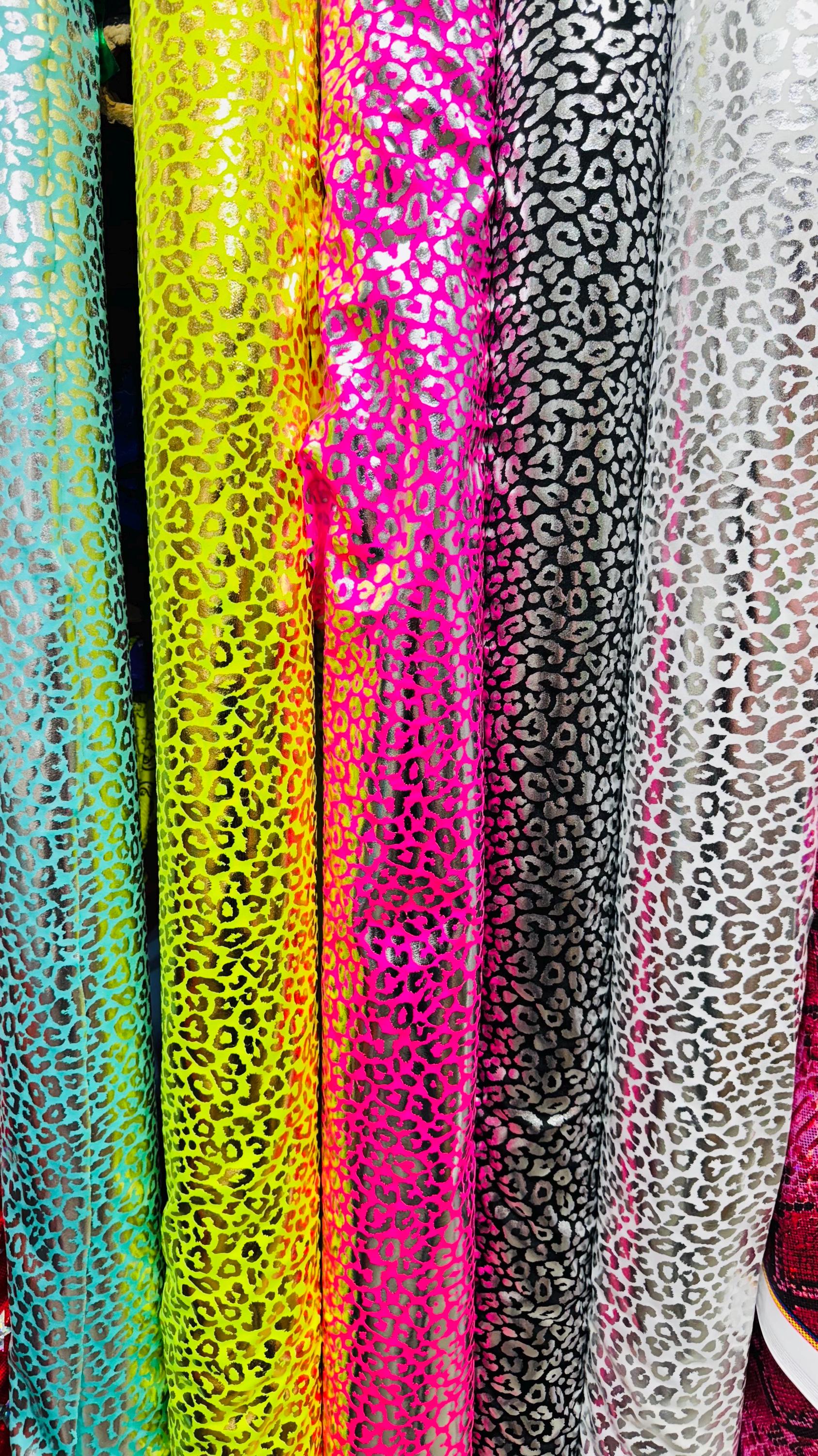New Exotic cheetah design metallic hologram nylon spandex 4-way spandex 58/60” Sold by the YD. Ships worldwide from Los Angeles California U
