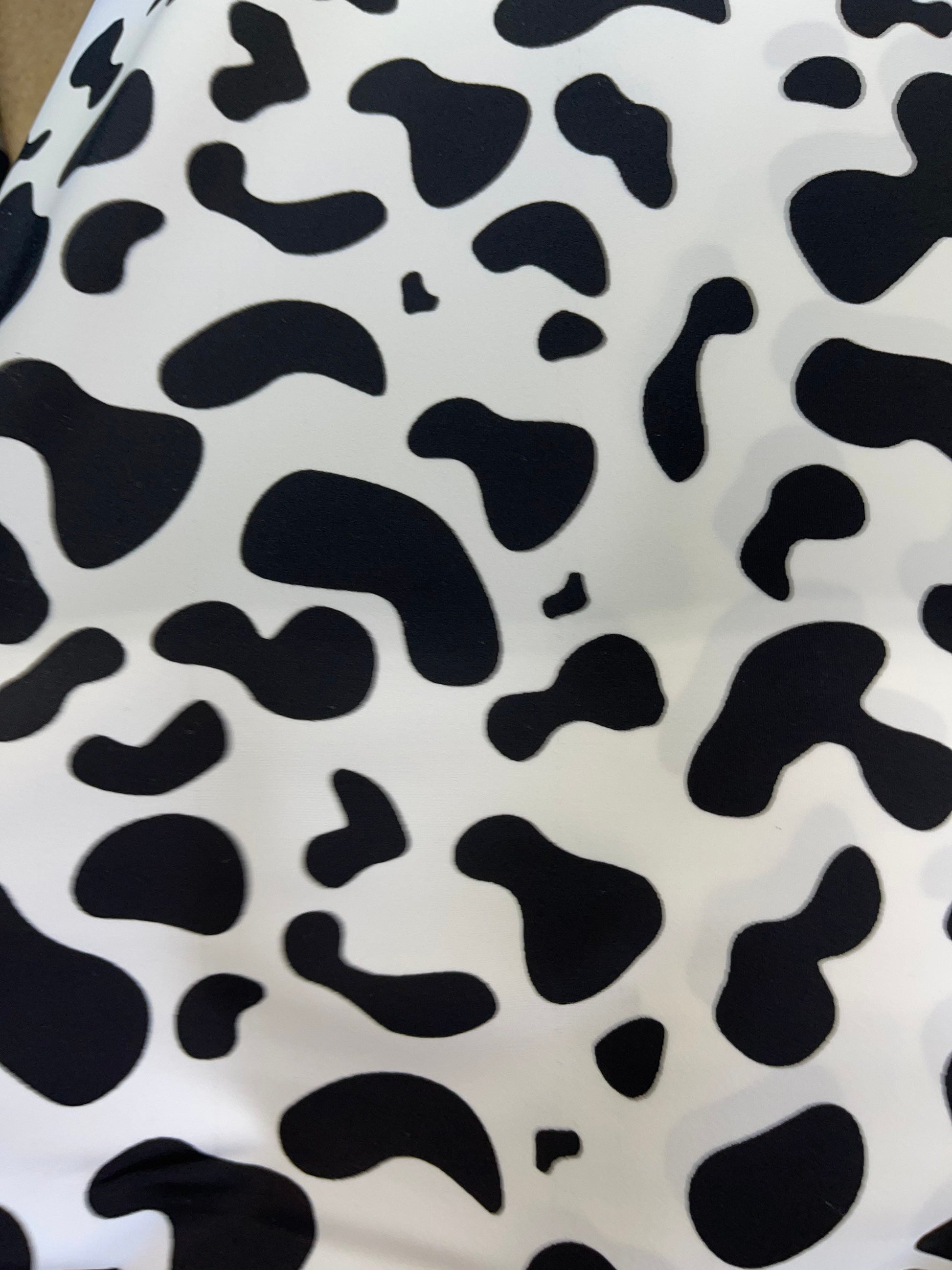 New Exotic cow design White/black print on best quality of nylon spandex 4-way stretch 58/60” Sold by the YD. Ships Worldwide from Los Angeles California USA.