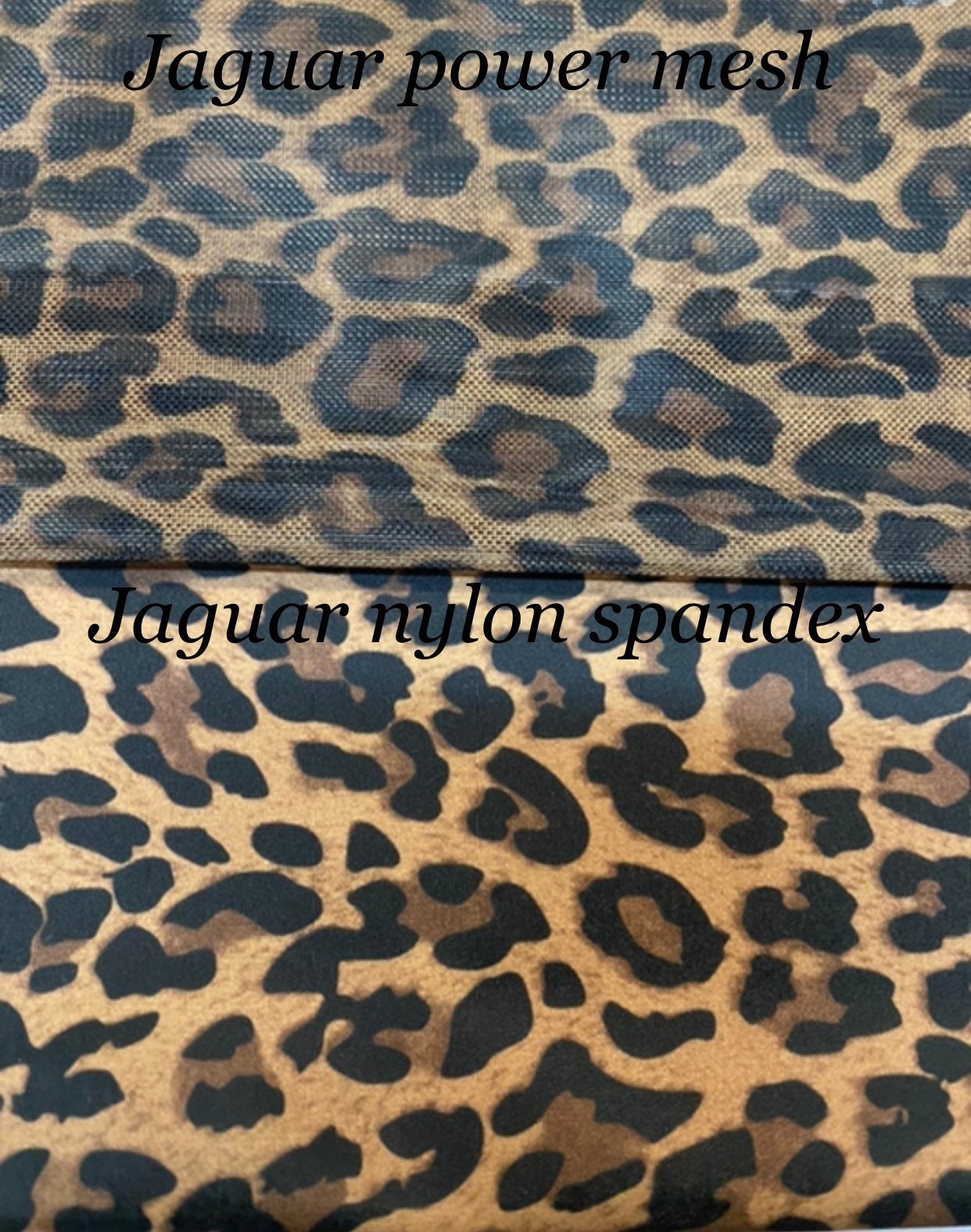 New Exotic Jaguar design print on nylon power mesh and nylon spandex 4-way stretch 58/60” Sold by the YD. Ships Worldwide from Los Angeles California USA.