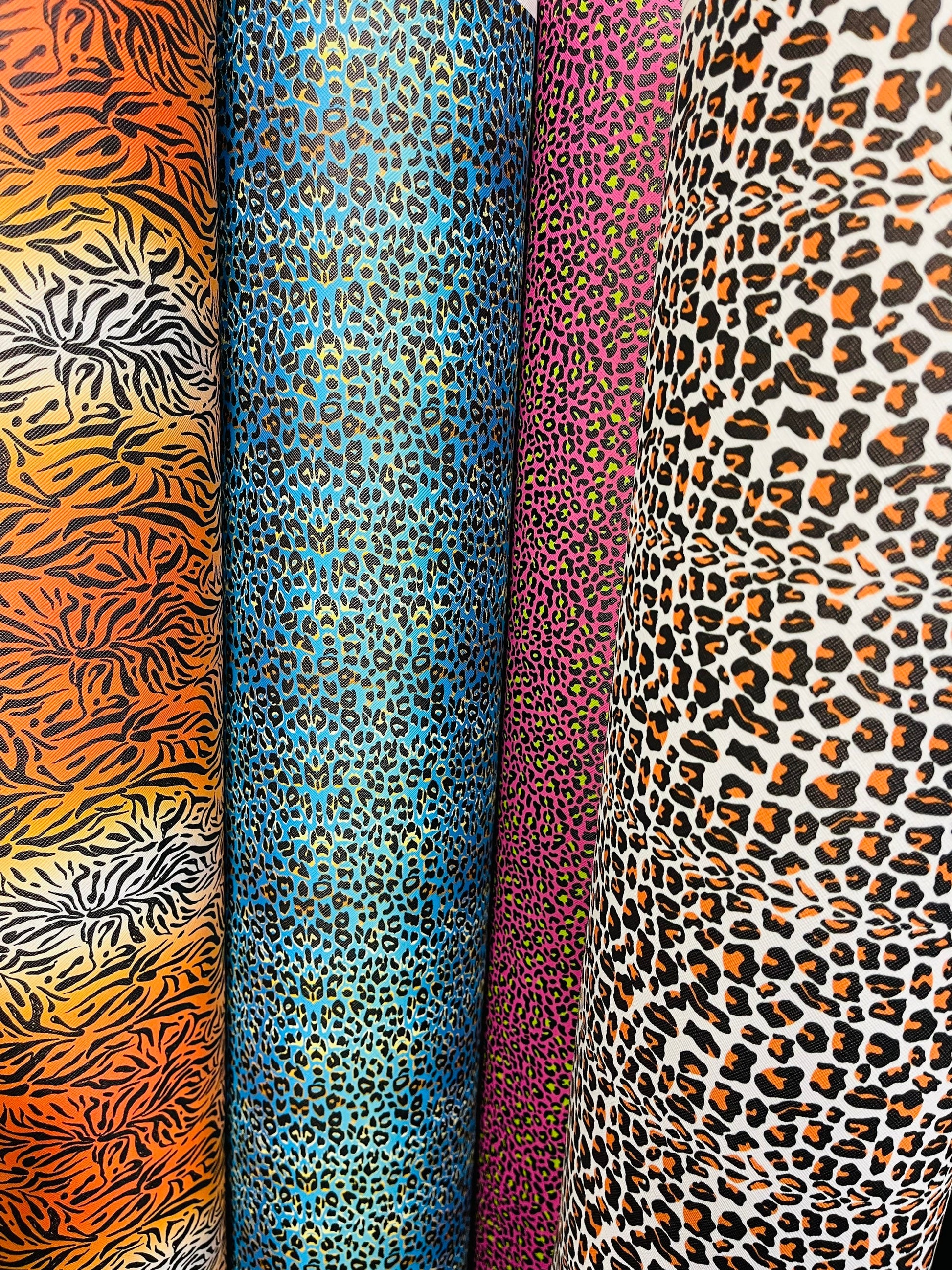 New Exotic multi animal print vinyl non stretch 57/58” Sold by the YD. Ships Worldwide from Los Angeles California USA.