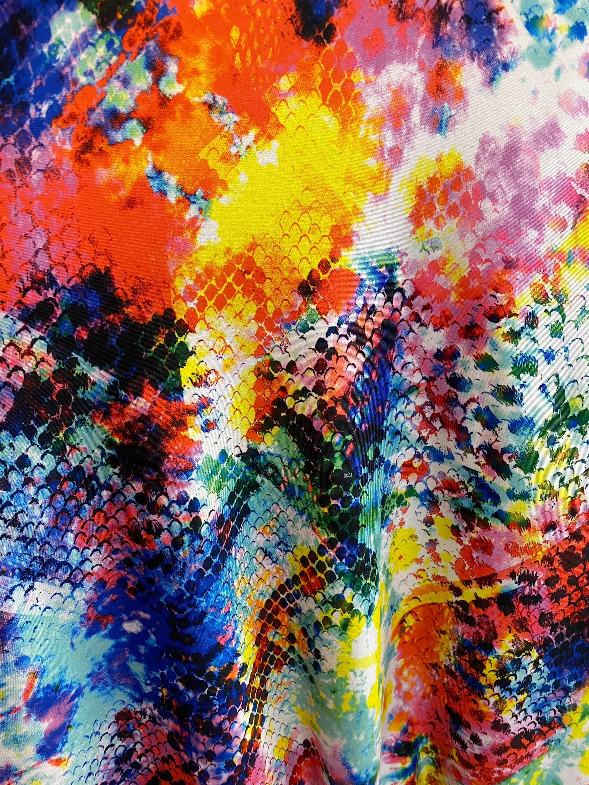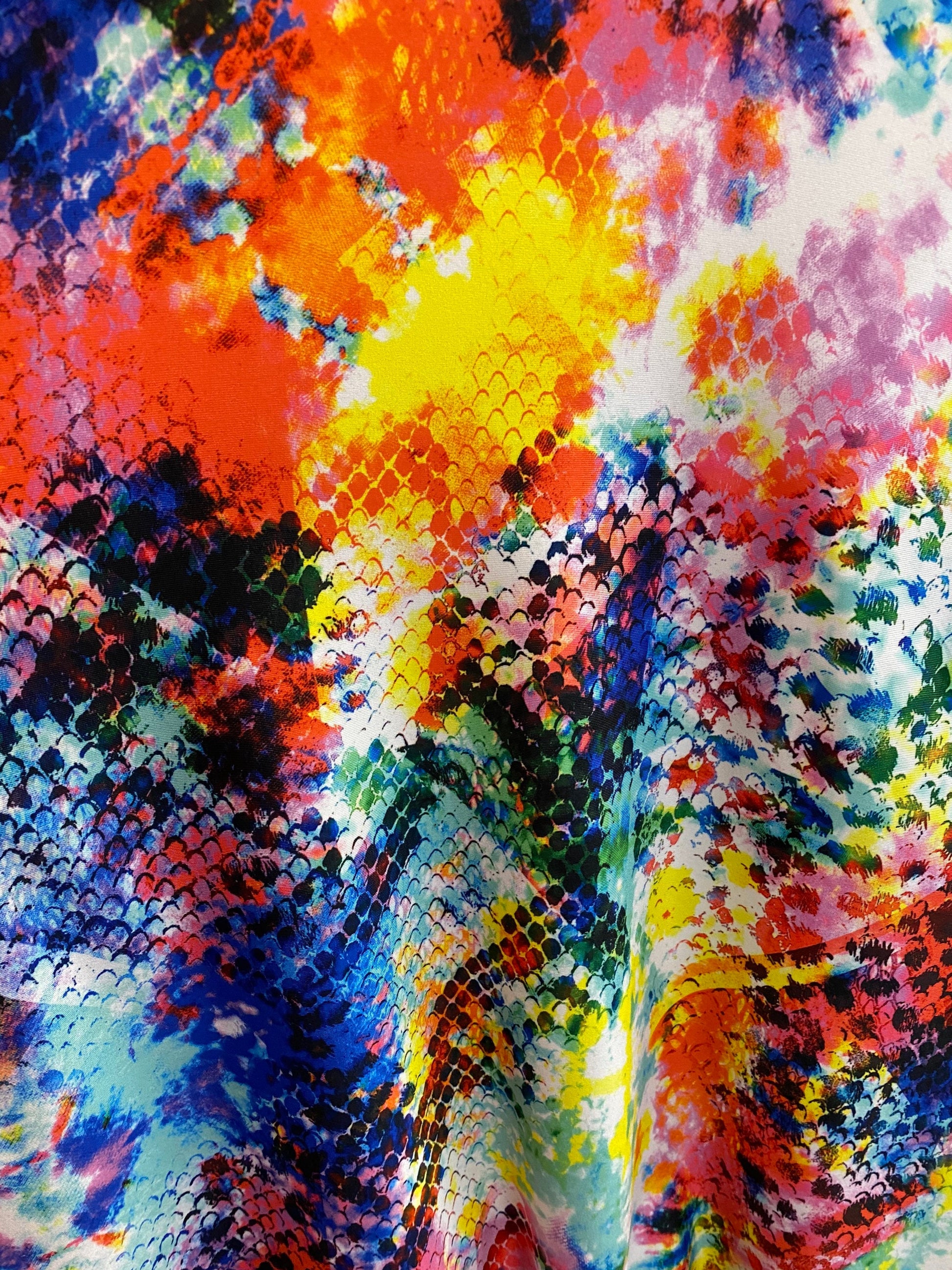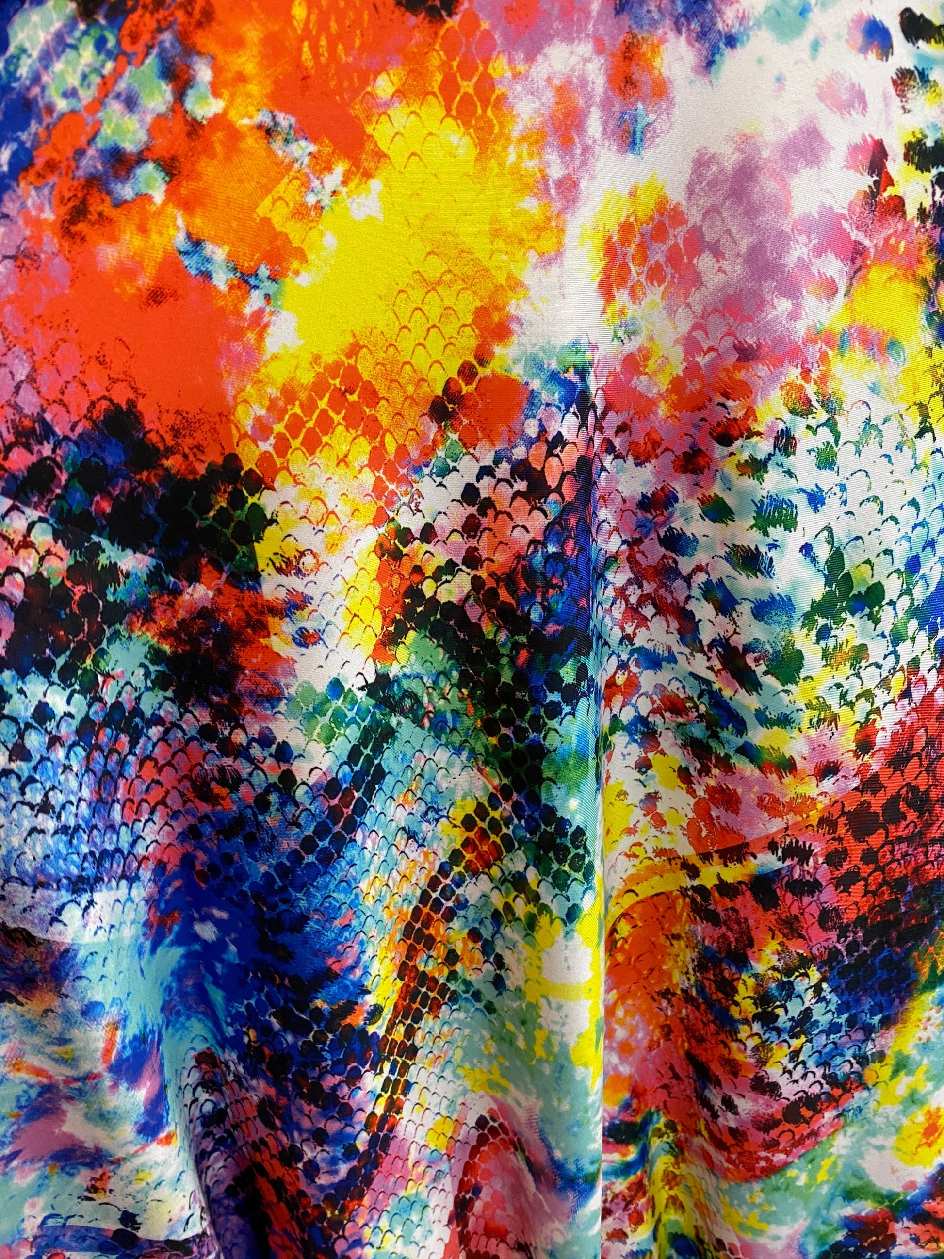 New Exotic snake design multicolor print on great quality of nylon spandex 2-way stretch 58/60” Sold by the YD. Ships Worldwide from Los Angeles California USA.