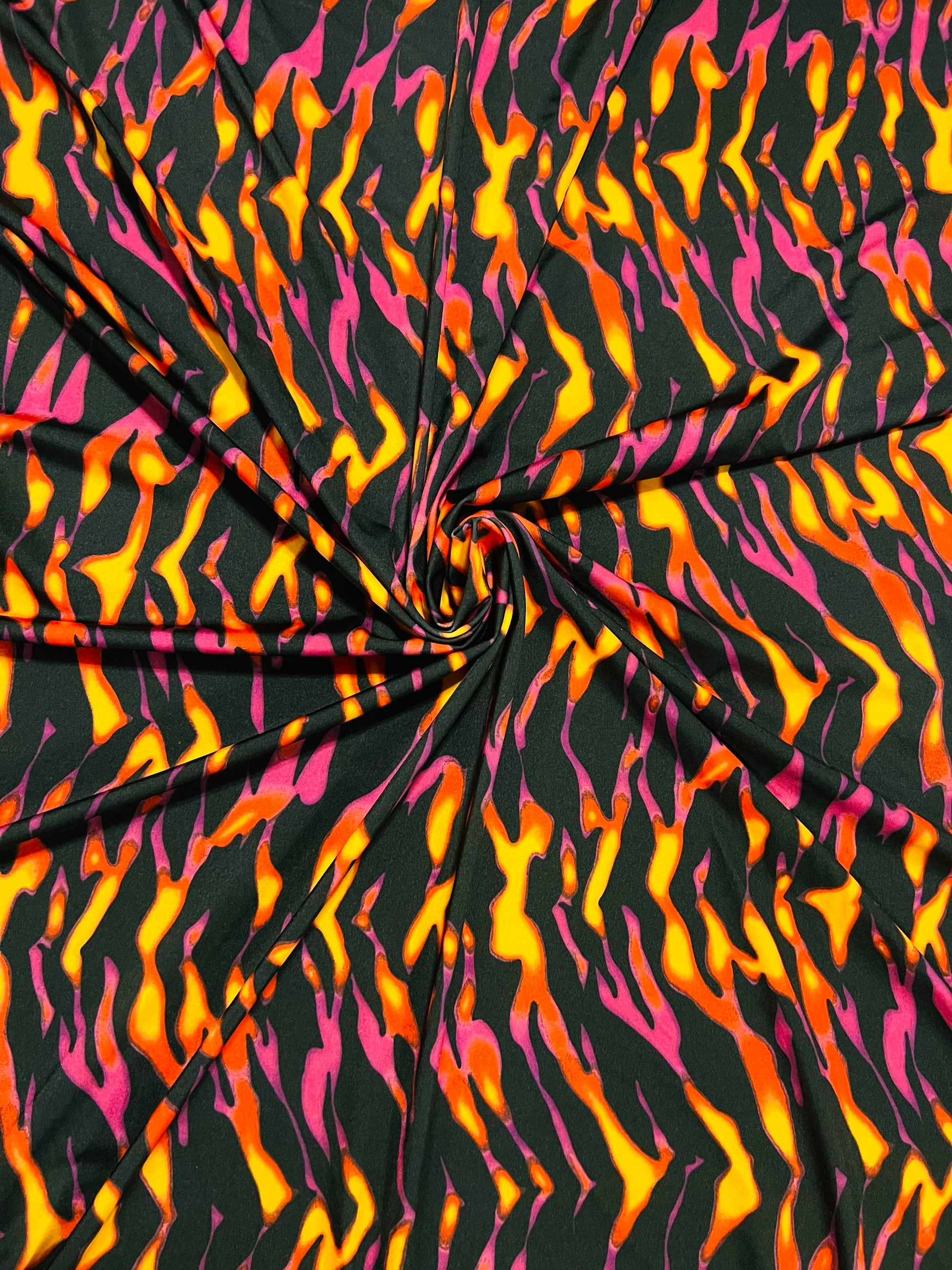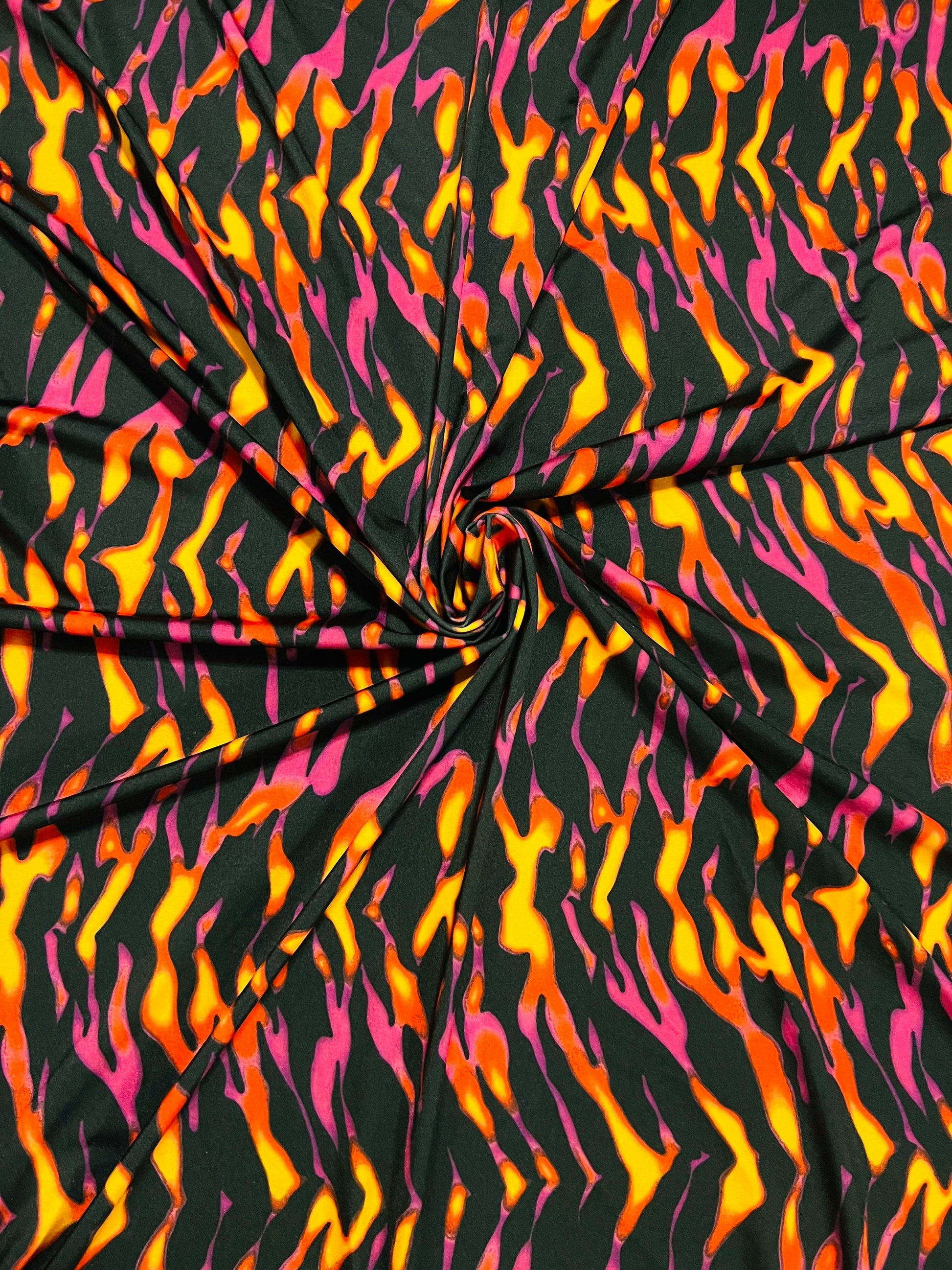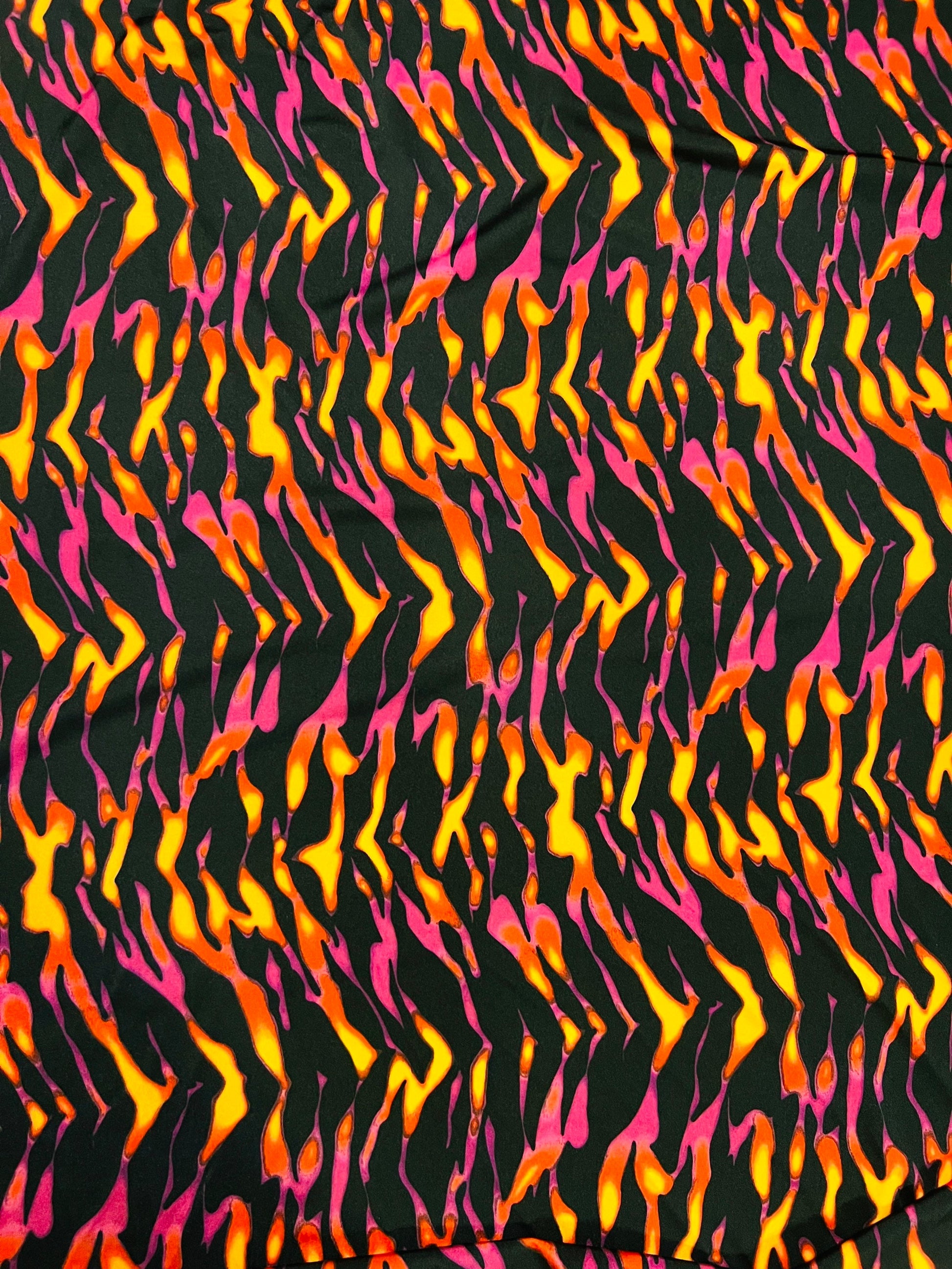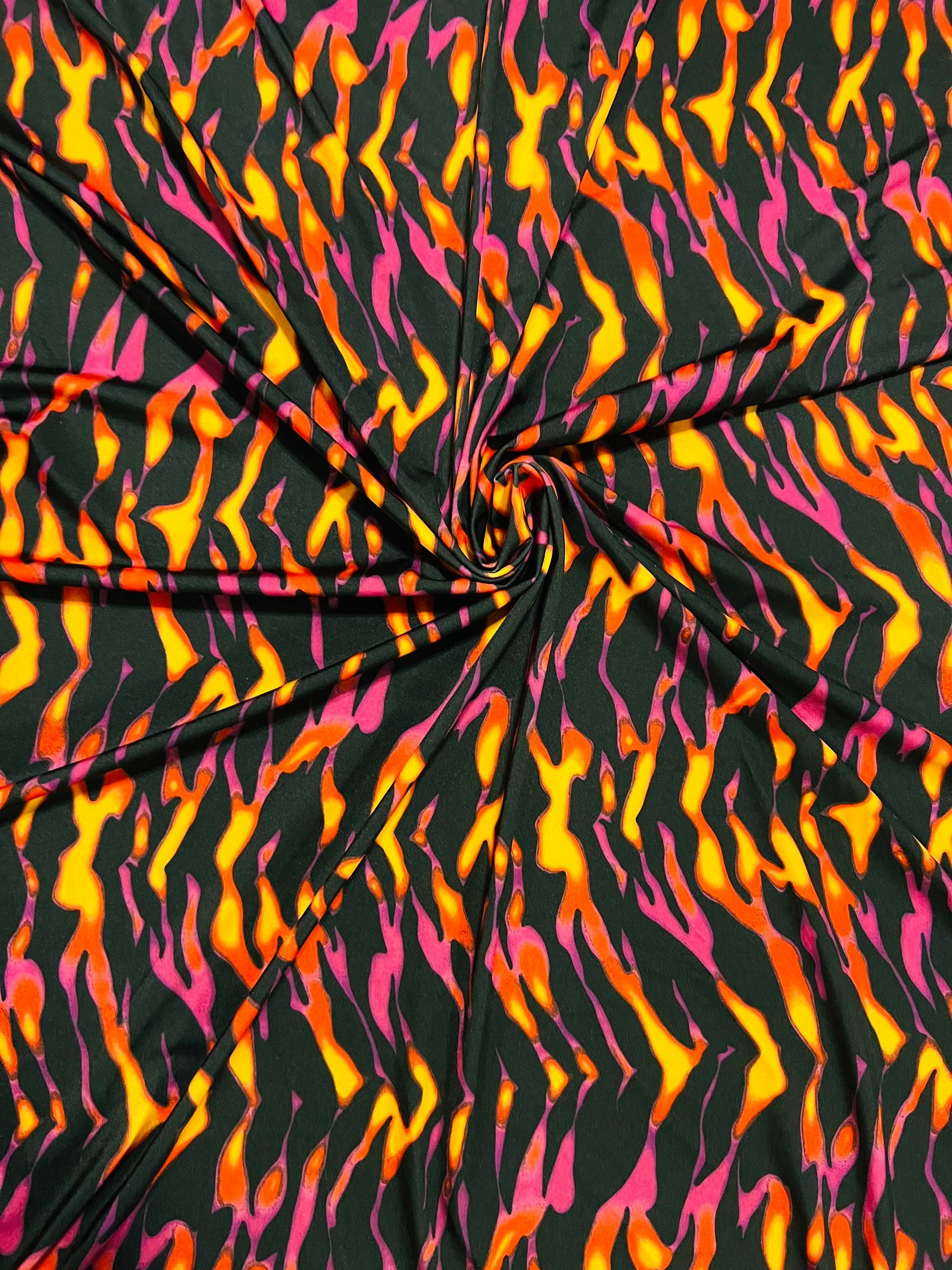 New Exotic Tiger design black/pink/orange print on great quality of Nylon Spandex 4-way stretch 58/60” Sold by the YD. Ships Worldwide from Los Angeles California USA.