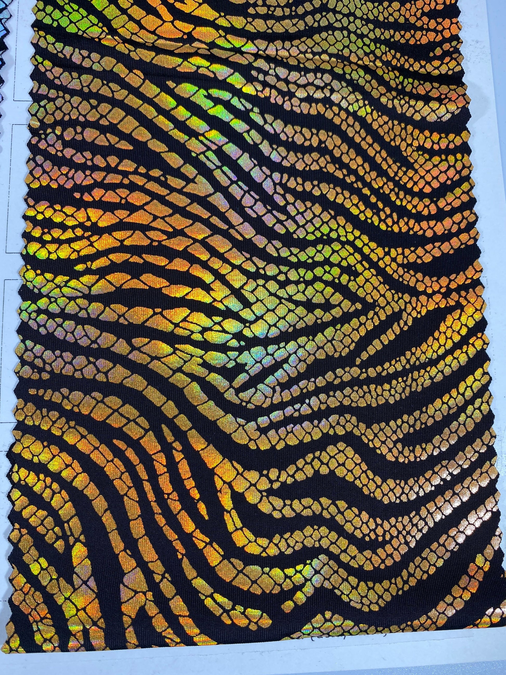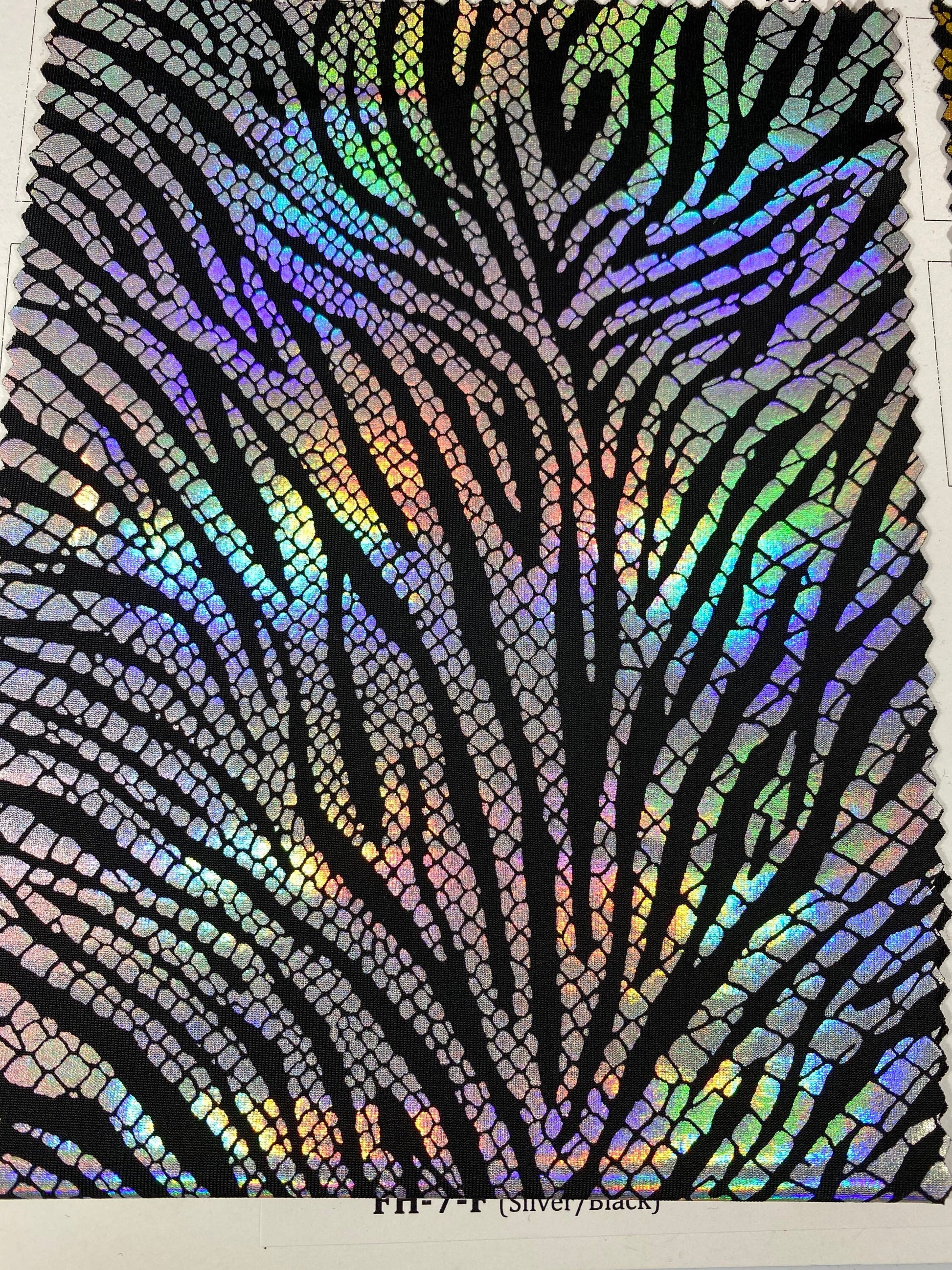 New Exotic zebra design hologram poly spandex medium weight 4-way stretch 58/60” Sold by the YD. Ships Worldwide from Los Angeles California USA.
