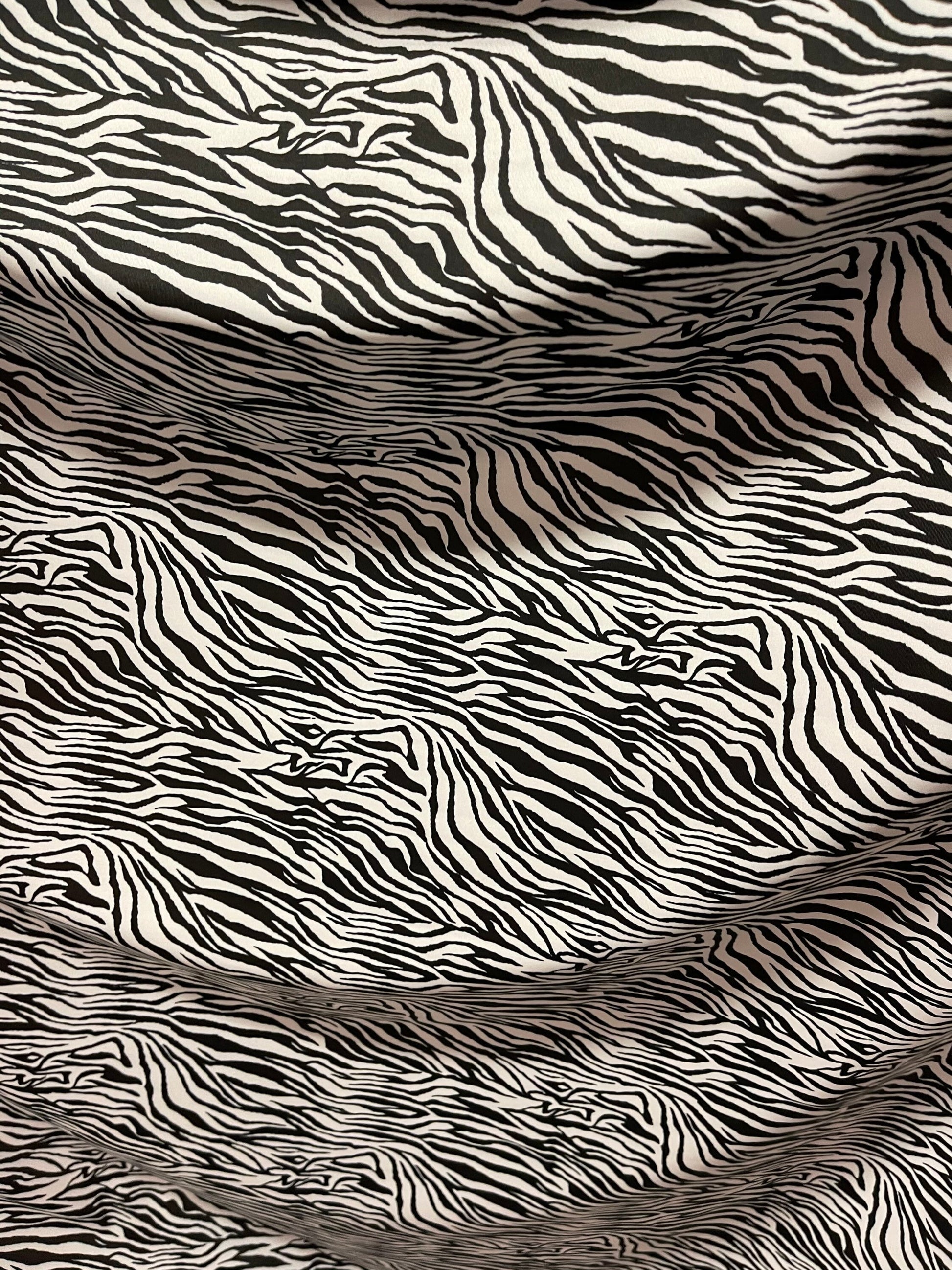 New Exotic zebra design medium size print on best quality of nylon spandex 4-way stretch 58/60” Sold by the YD. Ships Worldwide From Los Angeles California USA.