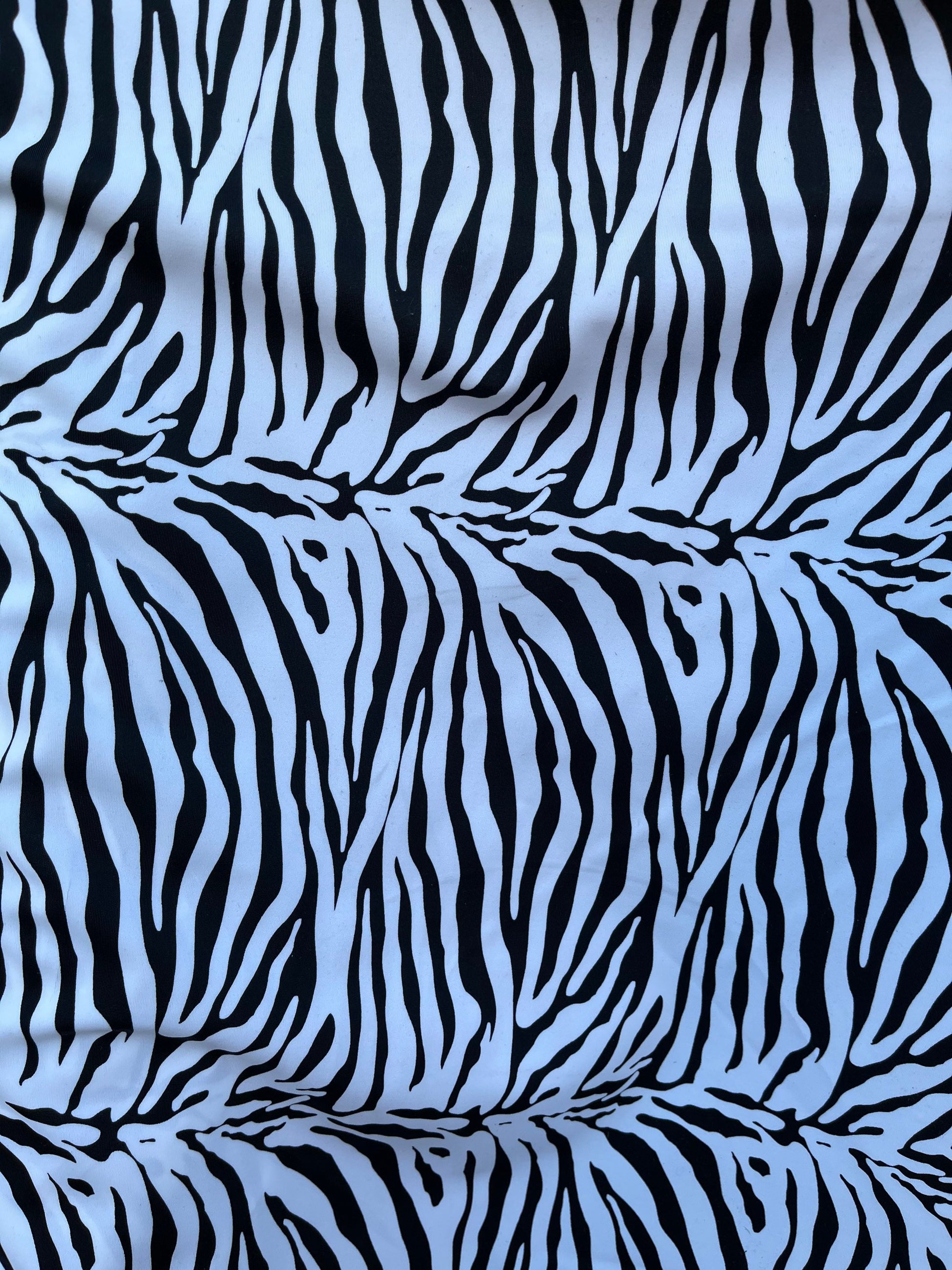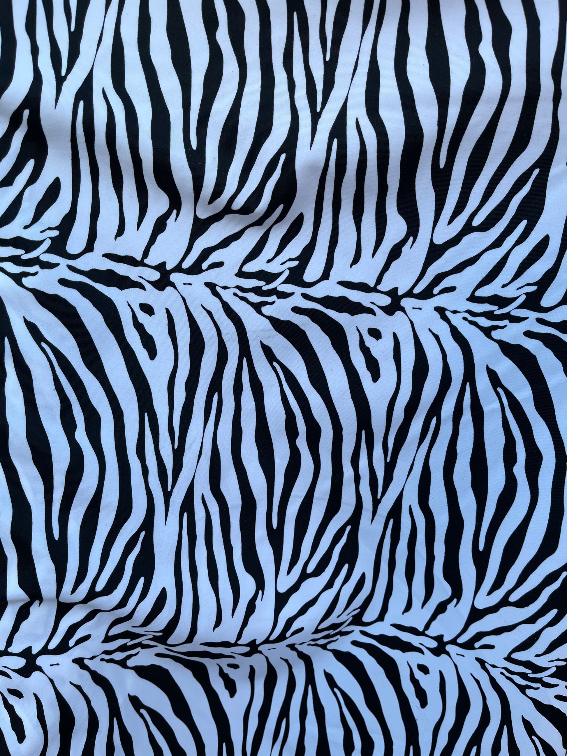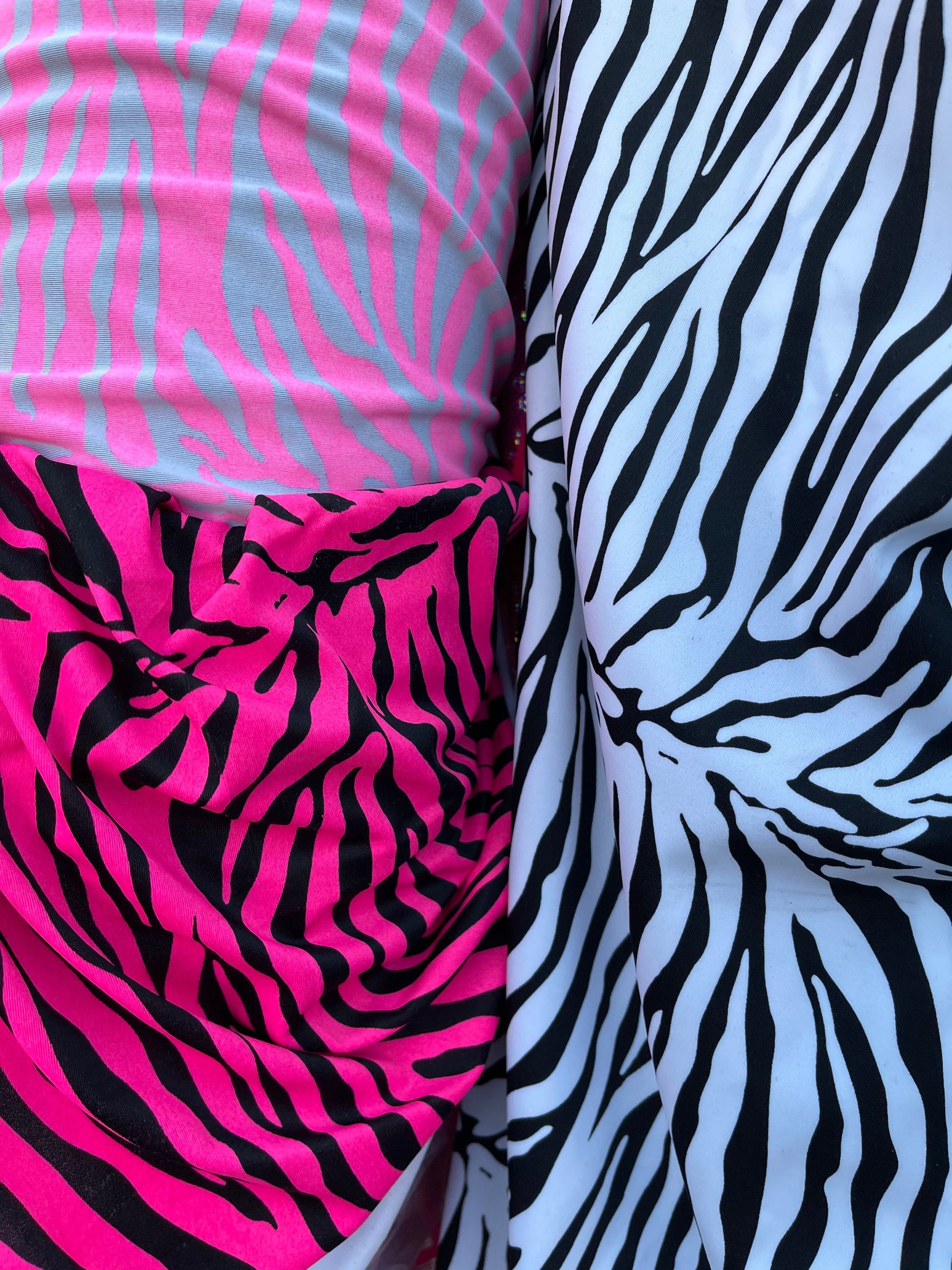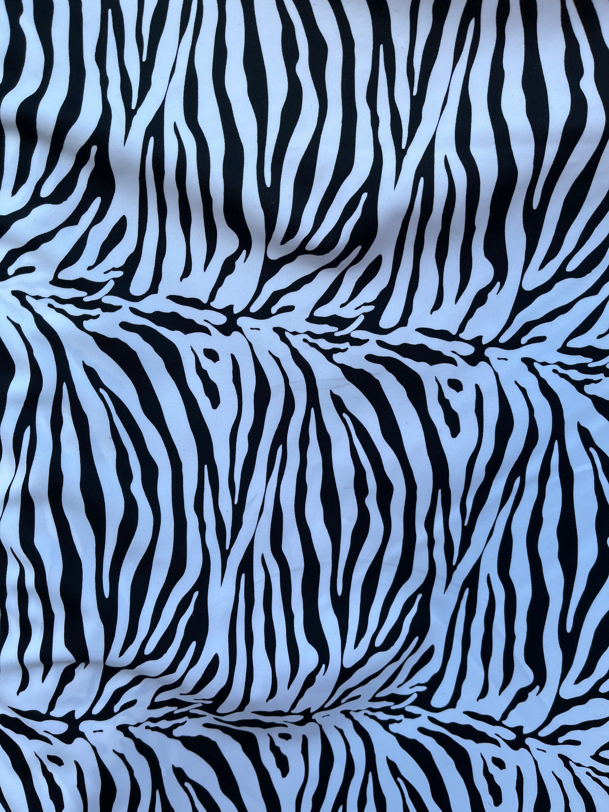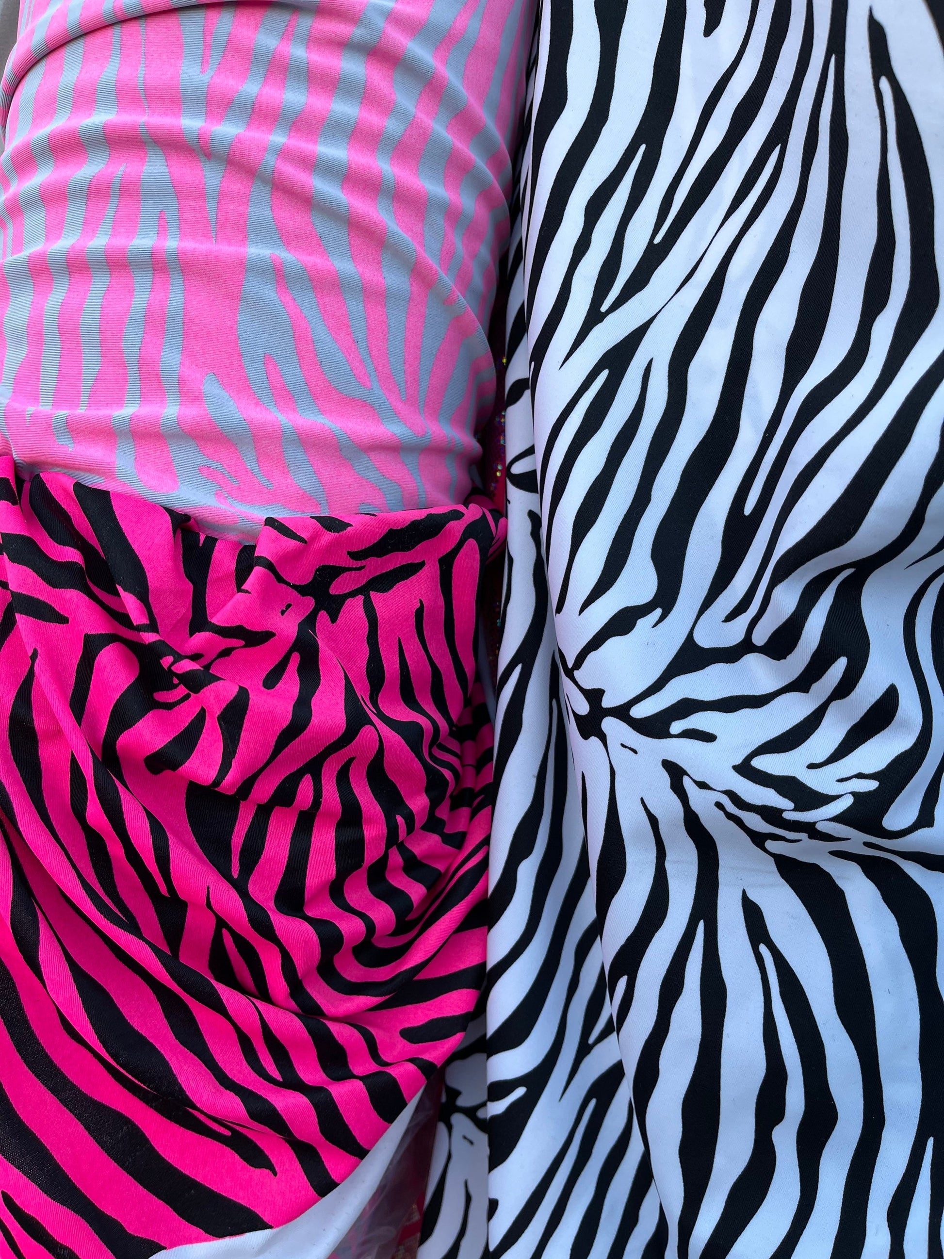 New Exotic zebra design medium size print on best quality of nylon spandex 4-way stretch 58/60” Sold by the YD. Ships Worldwide from Los Ángeles California USA.