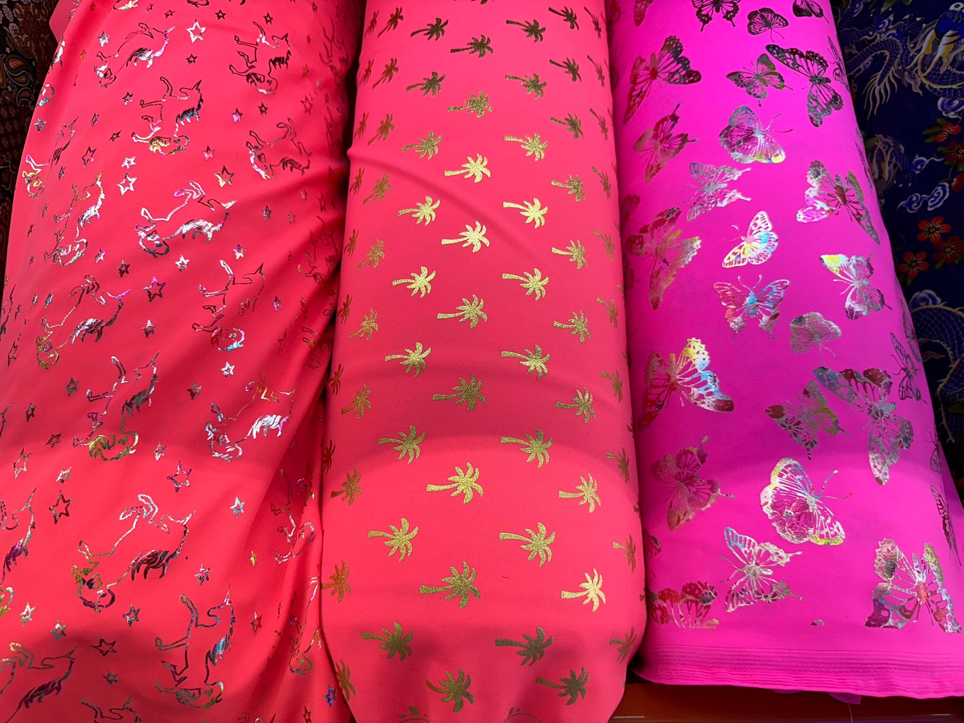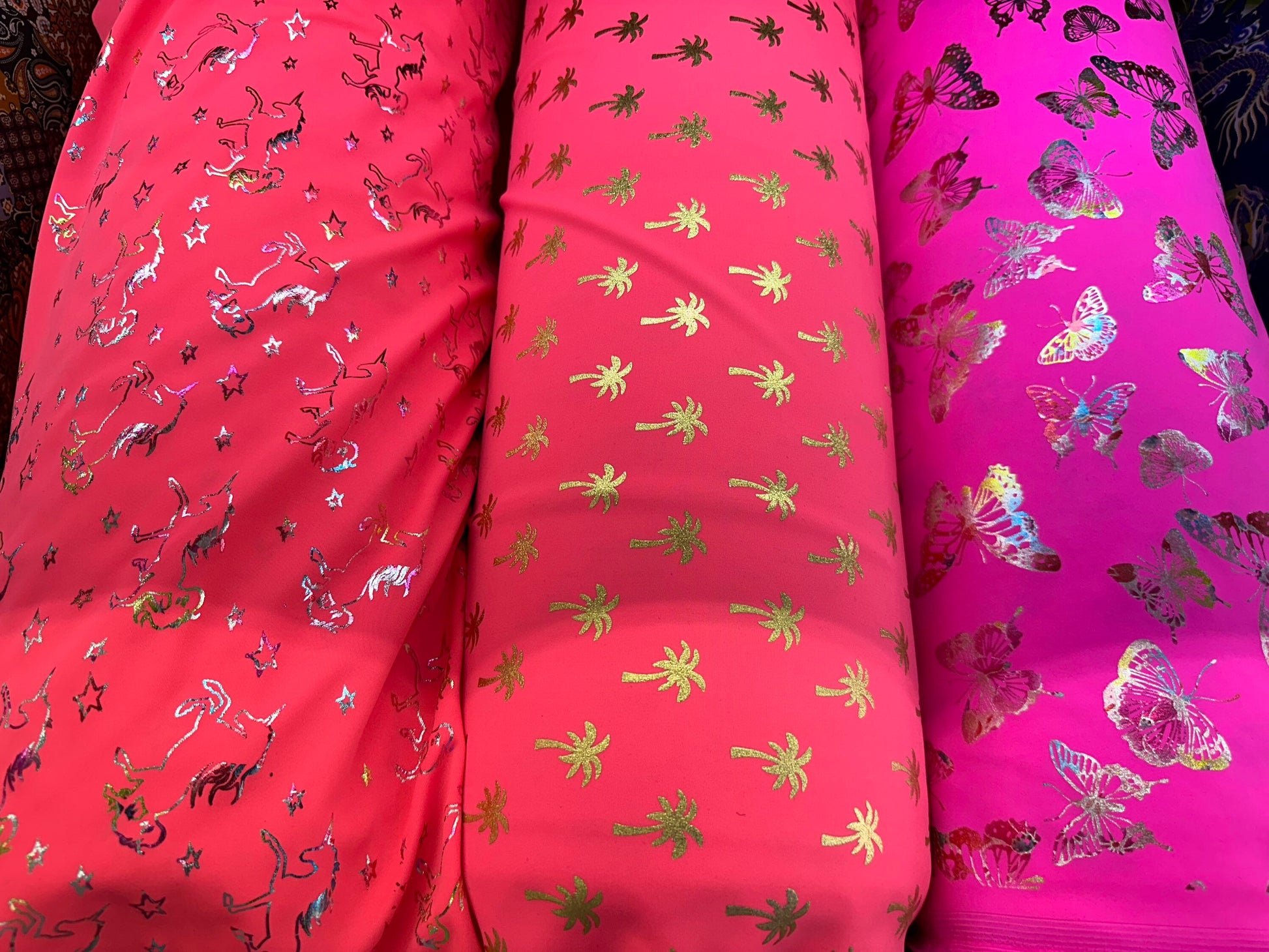 New Fabrics multiple designs neon colors high quality of nylon spandex with foil best quality in the market 4-way stretch 58/60” Sold by the YD. Ships worldwide from Los Angeles California USA