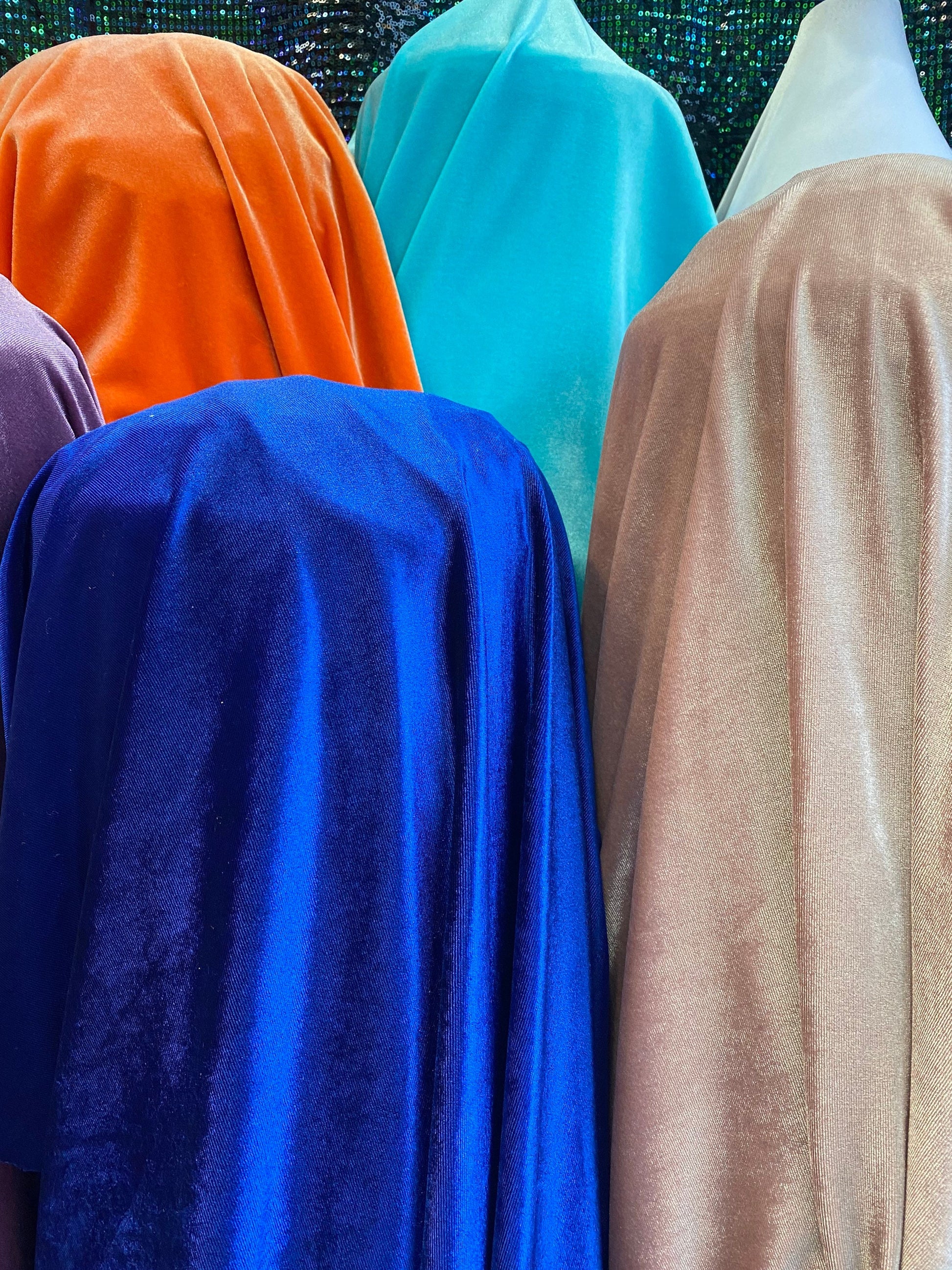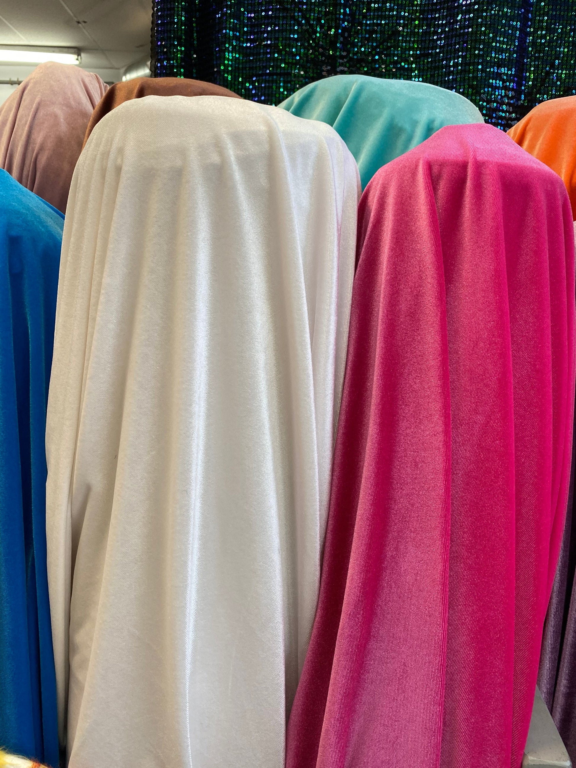 New Flat Stretch velvet heavy quality 4-way stretch 58/60” Sold by the YD. Ships worldwide from Los Angeles California USA.