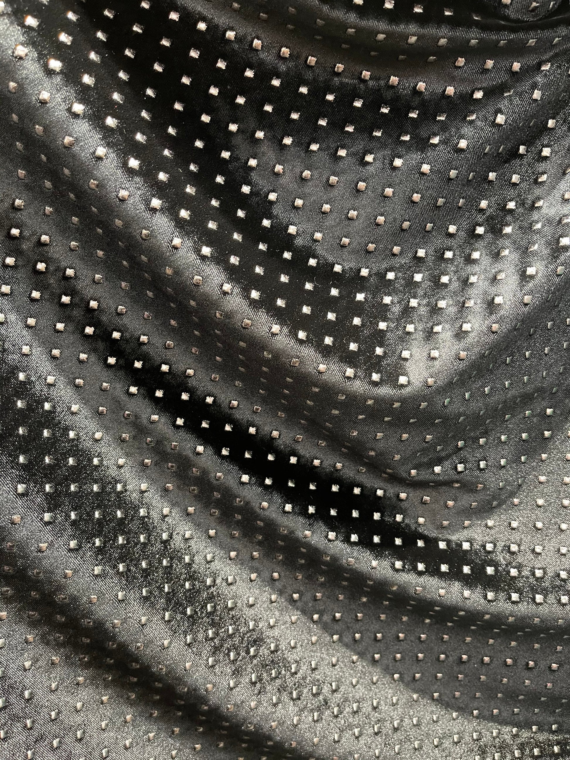 New Gladiator stretch velvet with metallic dots 4-way stretch 58/60” Sold by the YD. Ships Worldwide from Los Angeles California USA.