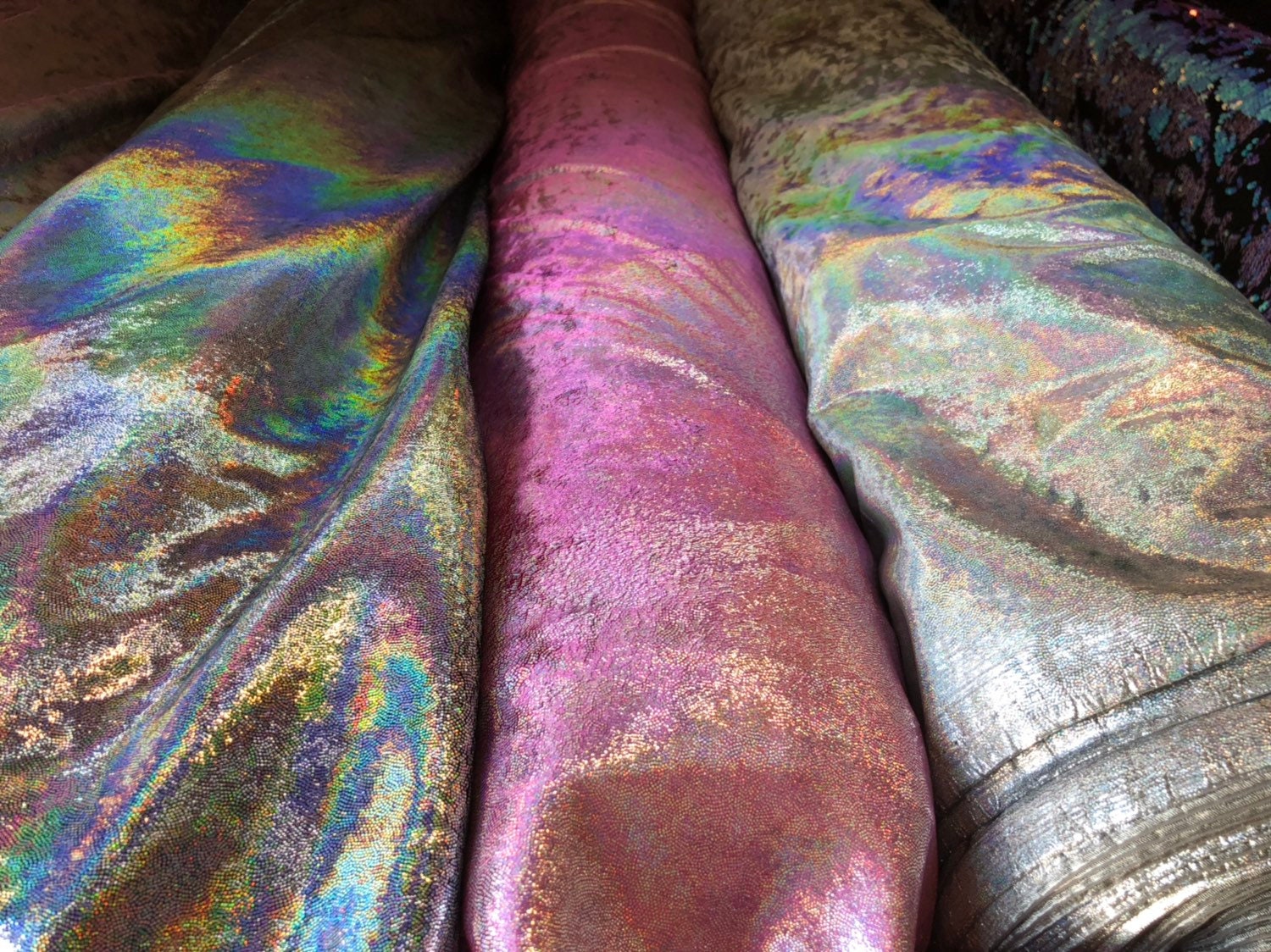 New heavy velvet with iridescent foggy foil 4way stretch 58/60" Sold by the YD. Ships worldwide from Los Angeles California USA.