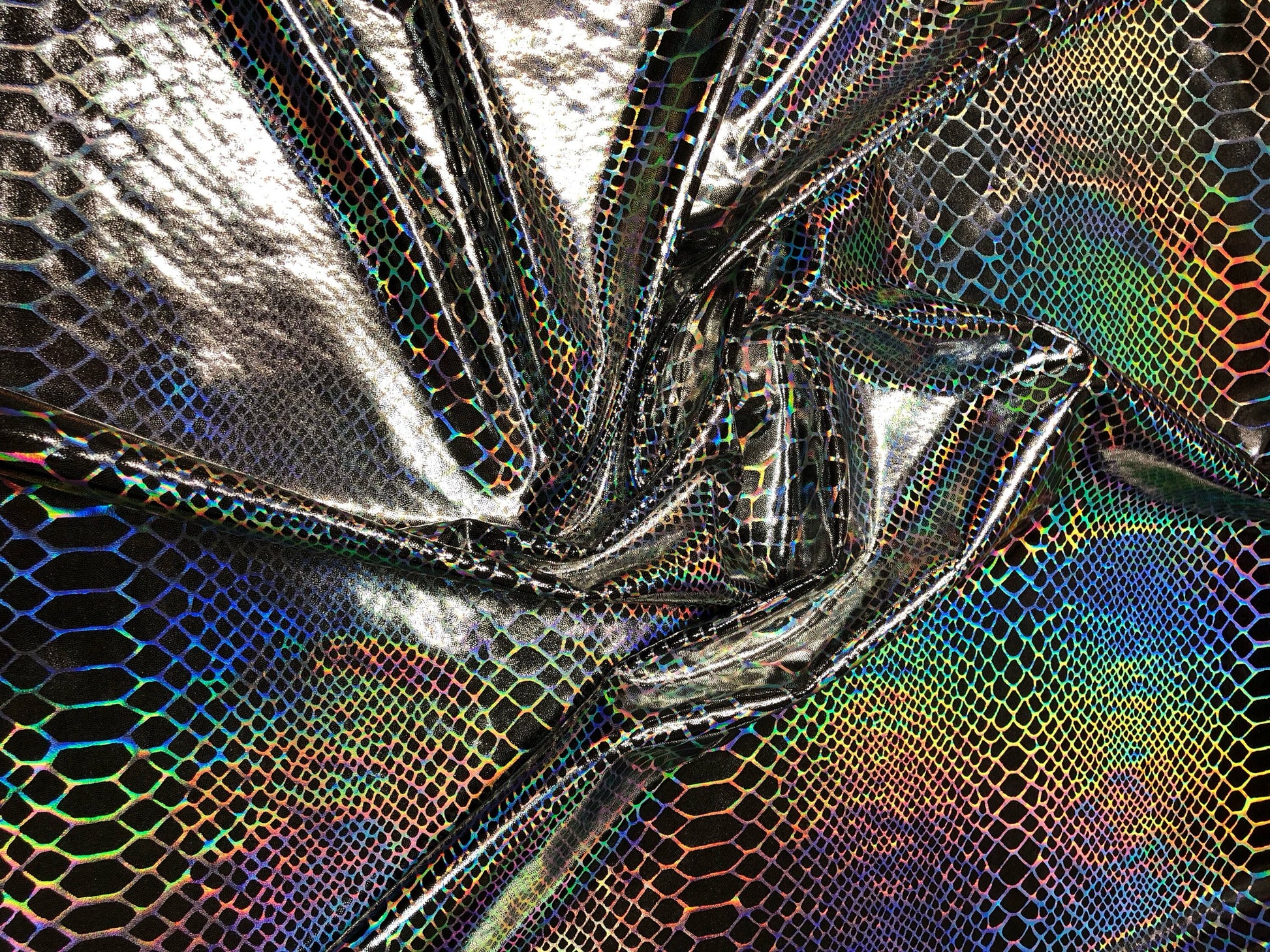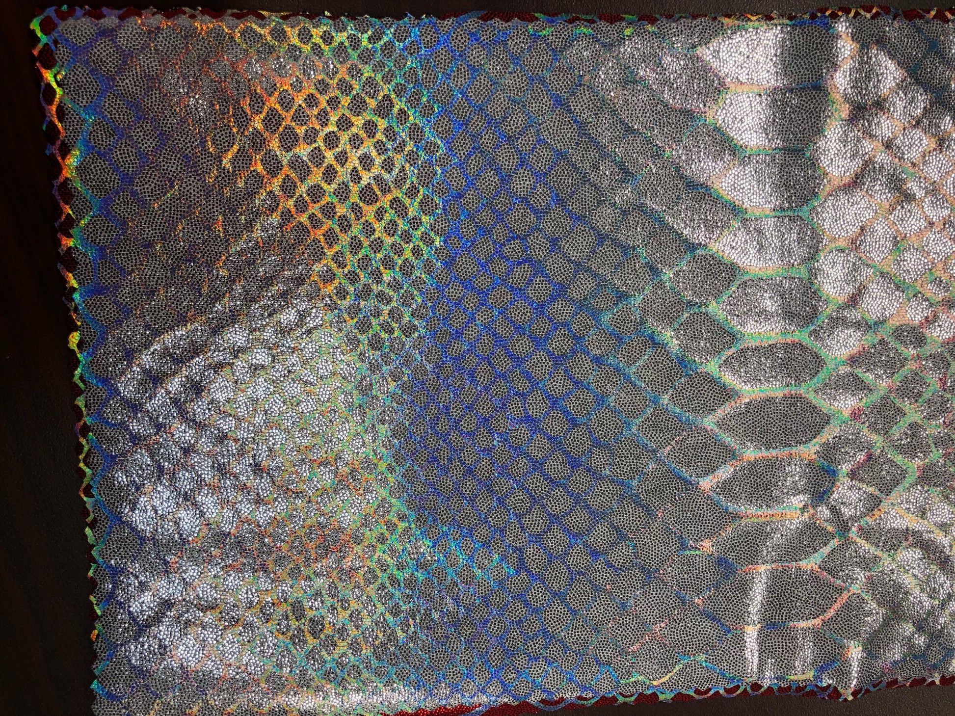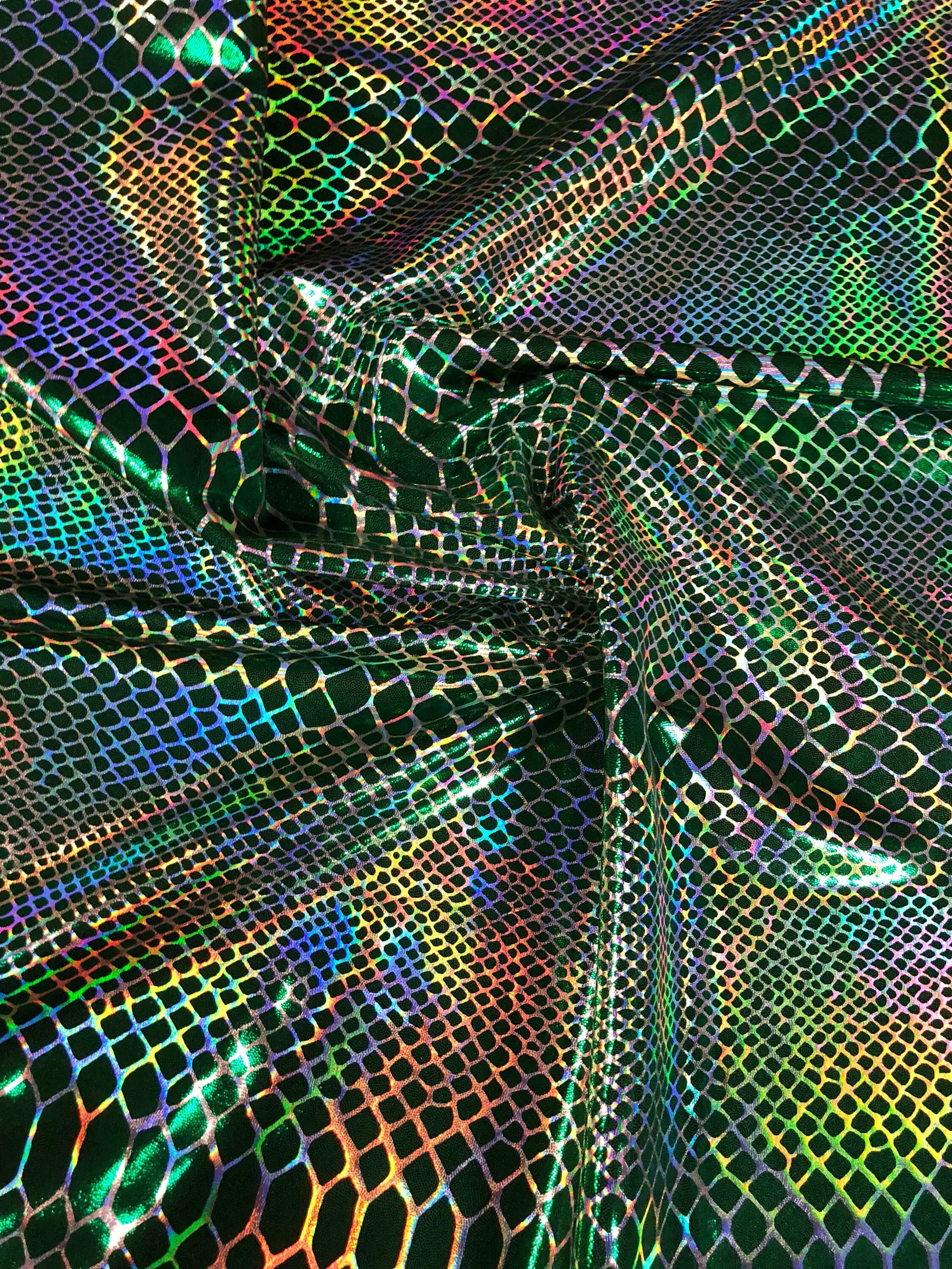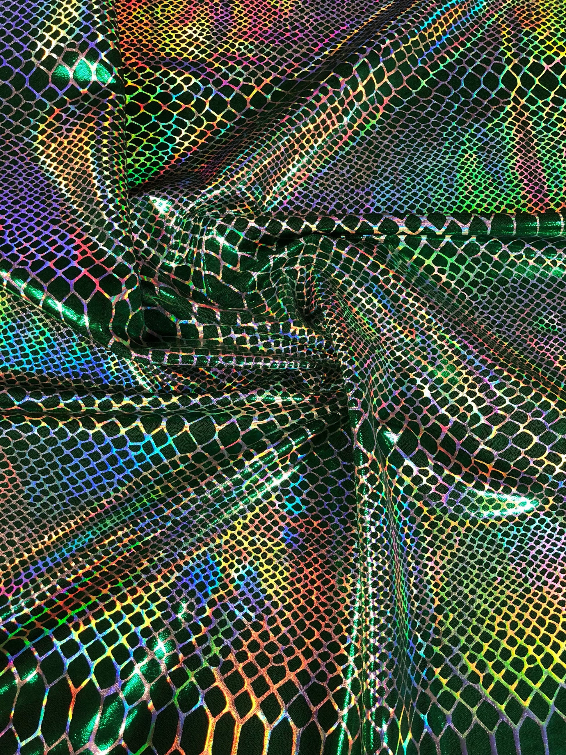 New iridescent Dragon design hologram two time foil print nylon spandex 4way Stretch 58/60" Sold by the YD. Ships worldwide from L.A CA USA