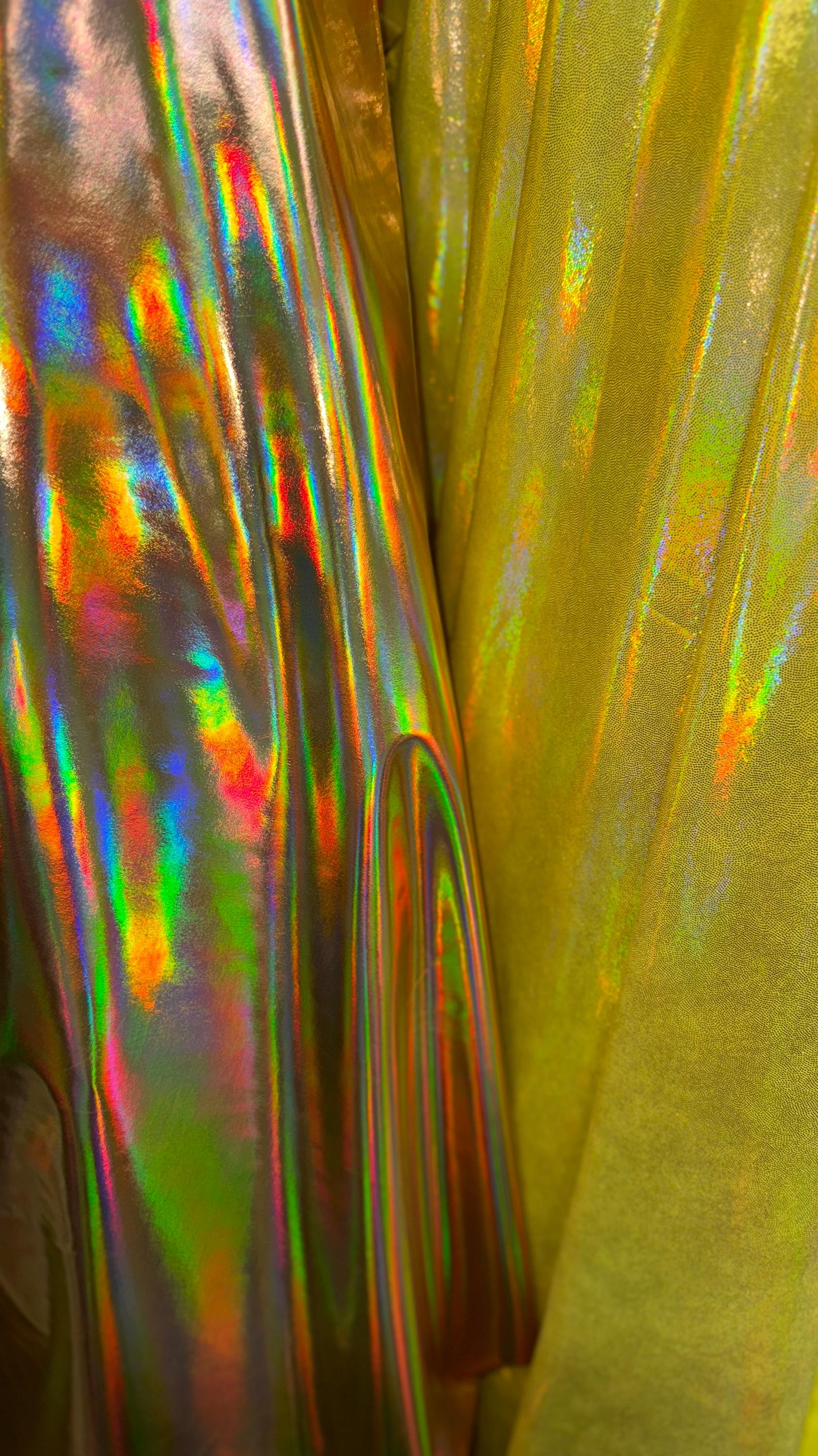 New Iridescent foggy foil oil effect metallic nylon spandex and Iridescent metallic vinyl 4way stretch Sold by the YD. Ships worldwide from Los Angeles California USA. High quality fabrics by AlexLAFabrics