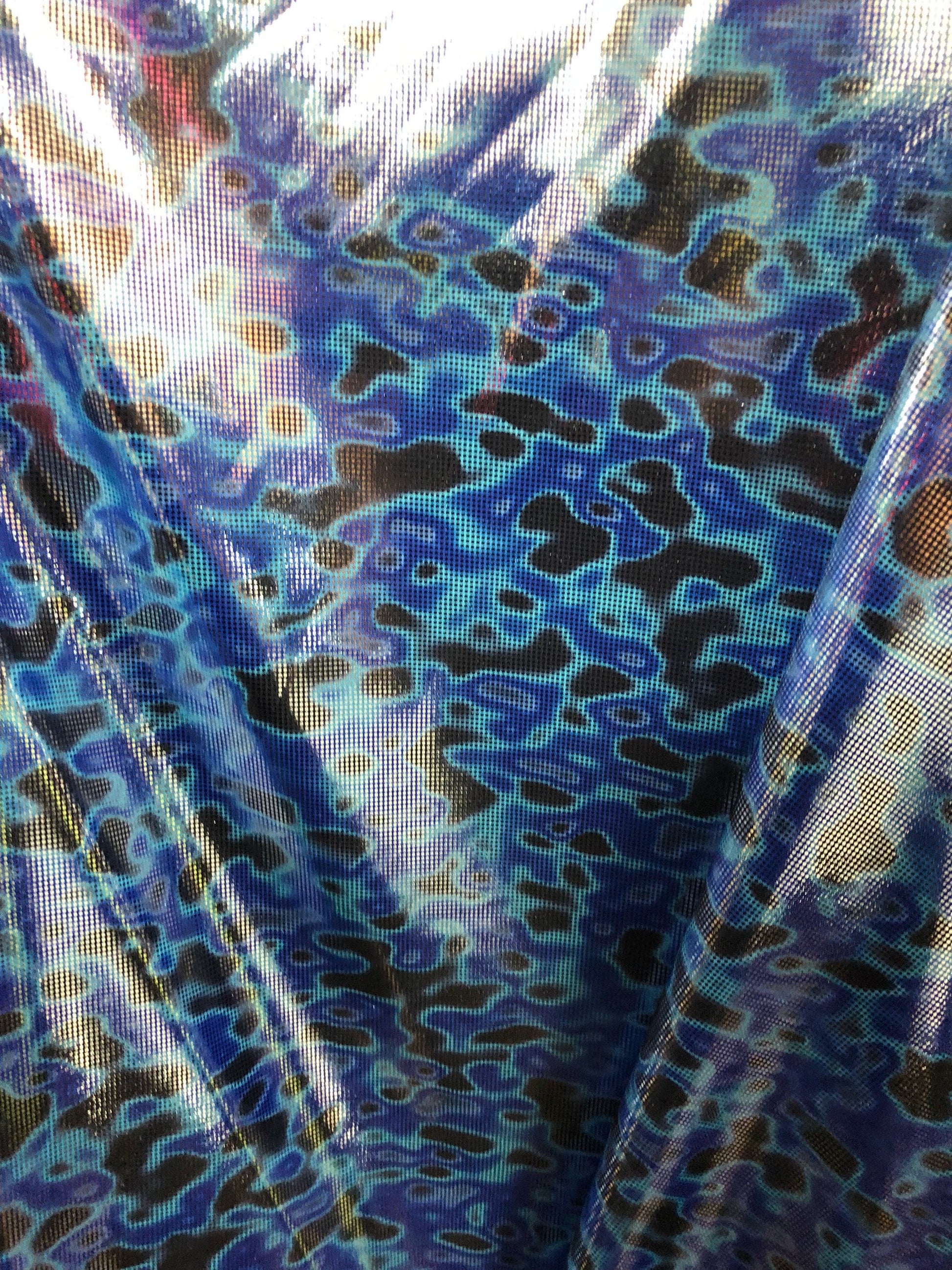 New Lava design with silver foil dots in nylon spandex 4way stretch 58/60" Sold by the YD. Ships worldwide from Los Angeles CA USA