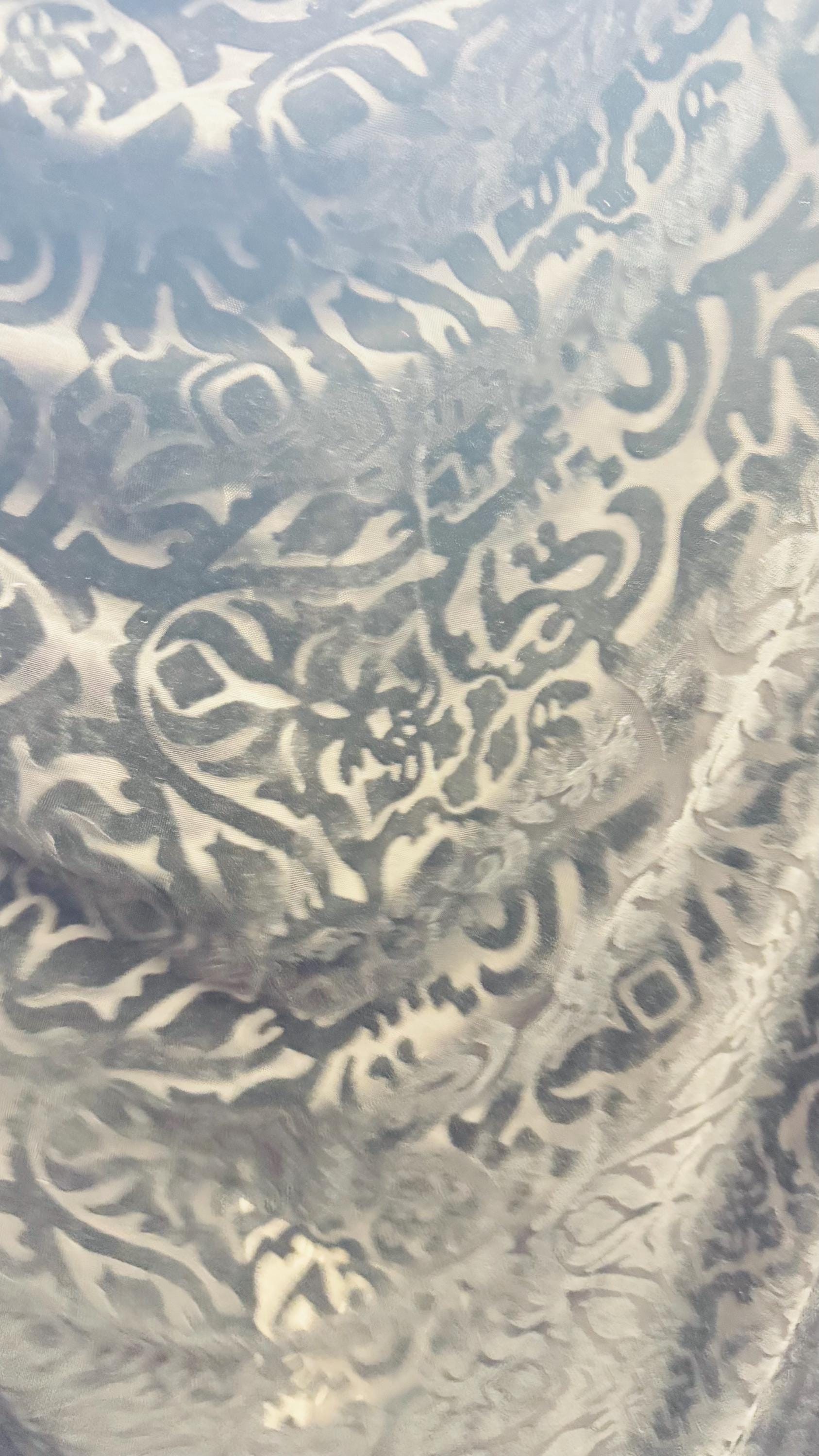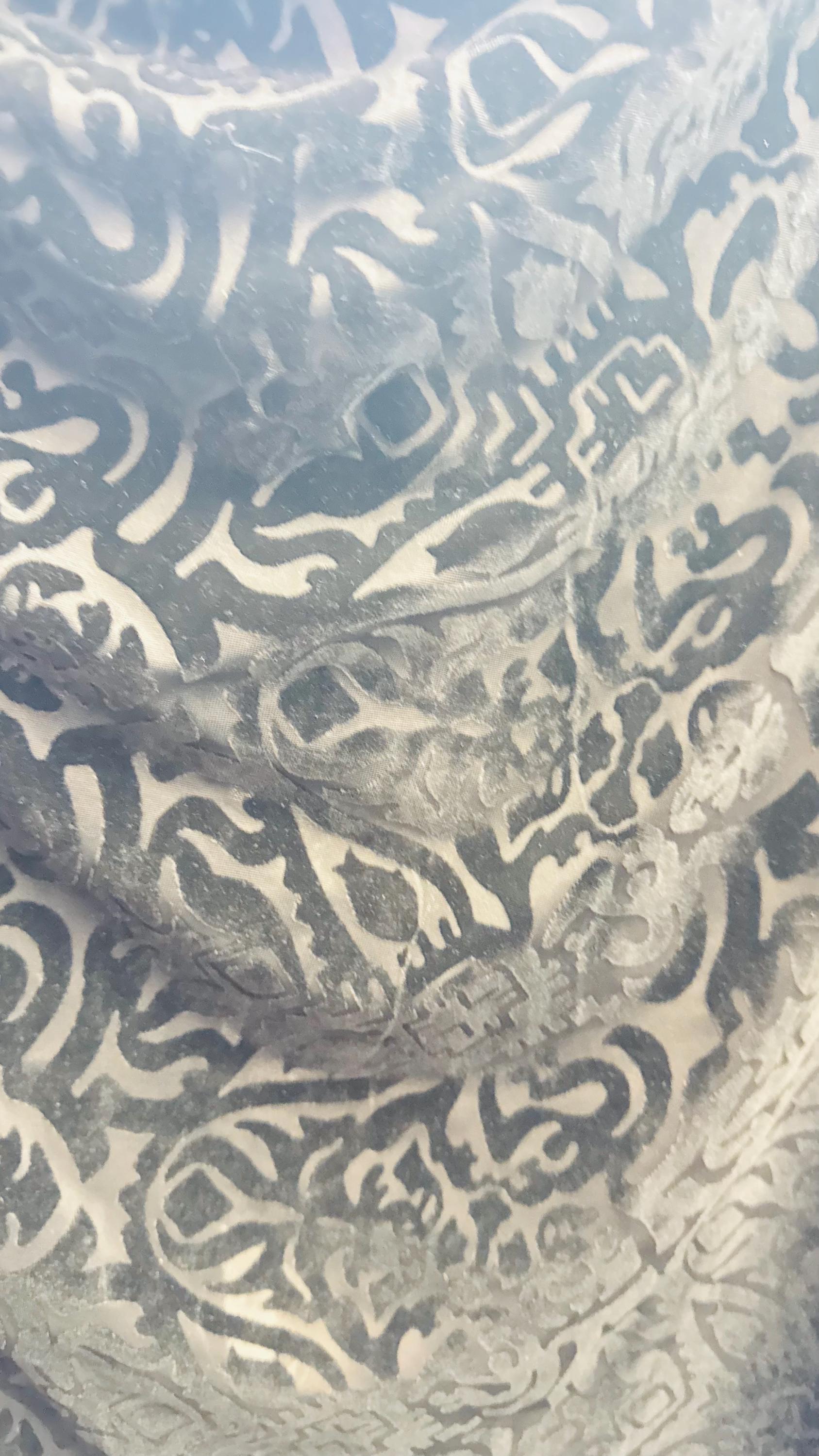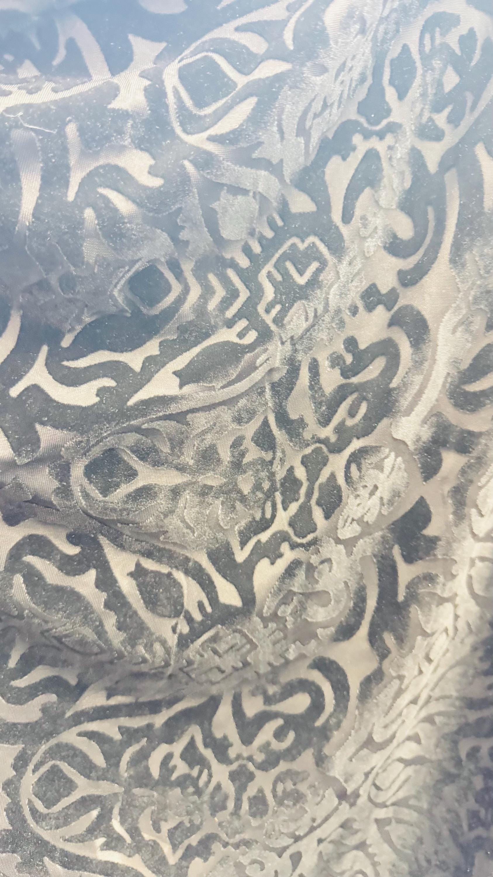 New Luxury Royalty design black burnout stretch velvet 4-way stretch 58/60” Sold by the YD. High quality fabric In the market. Ships worldwide from Los Angeles California USA