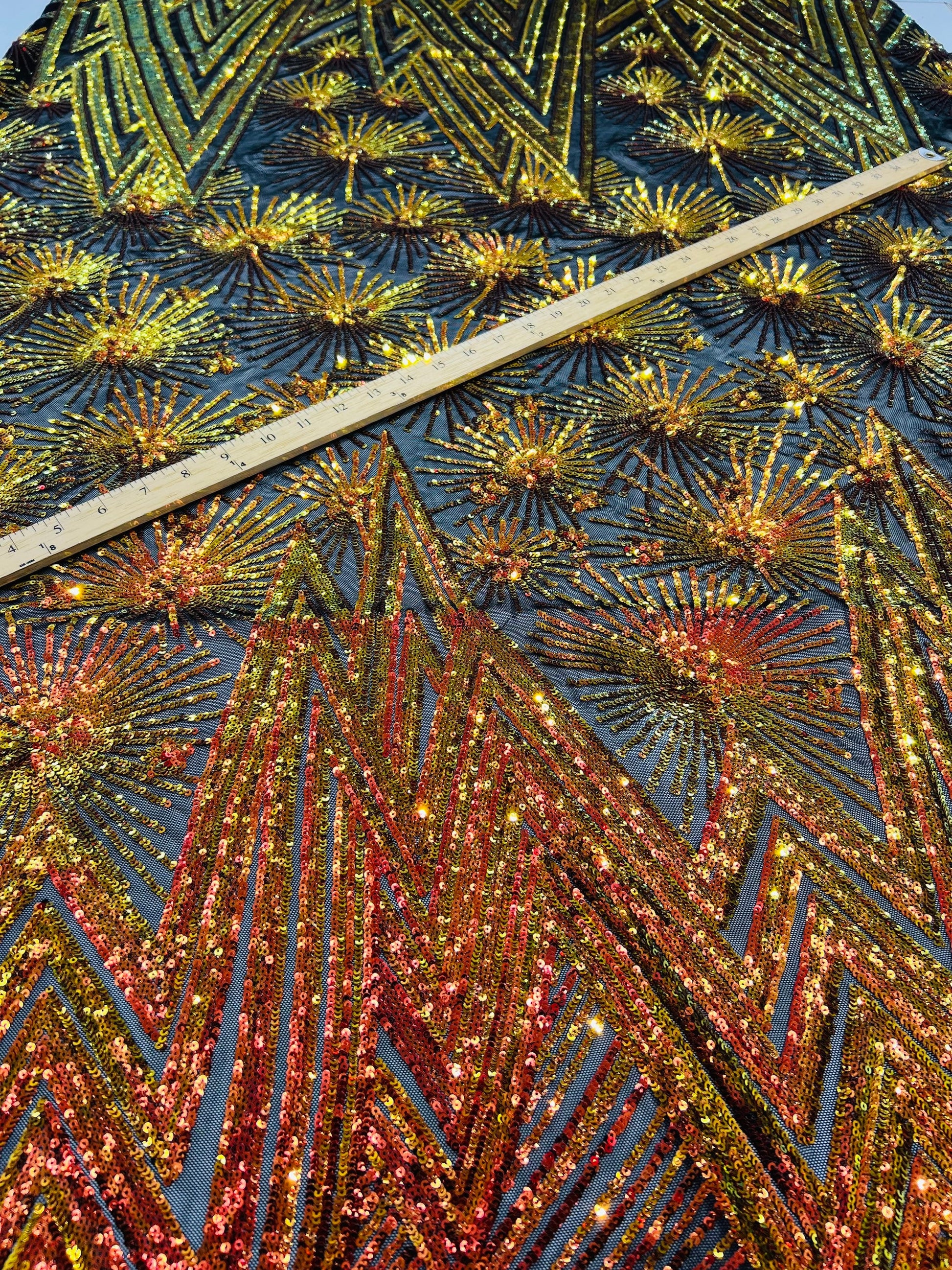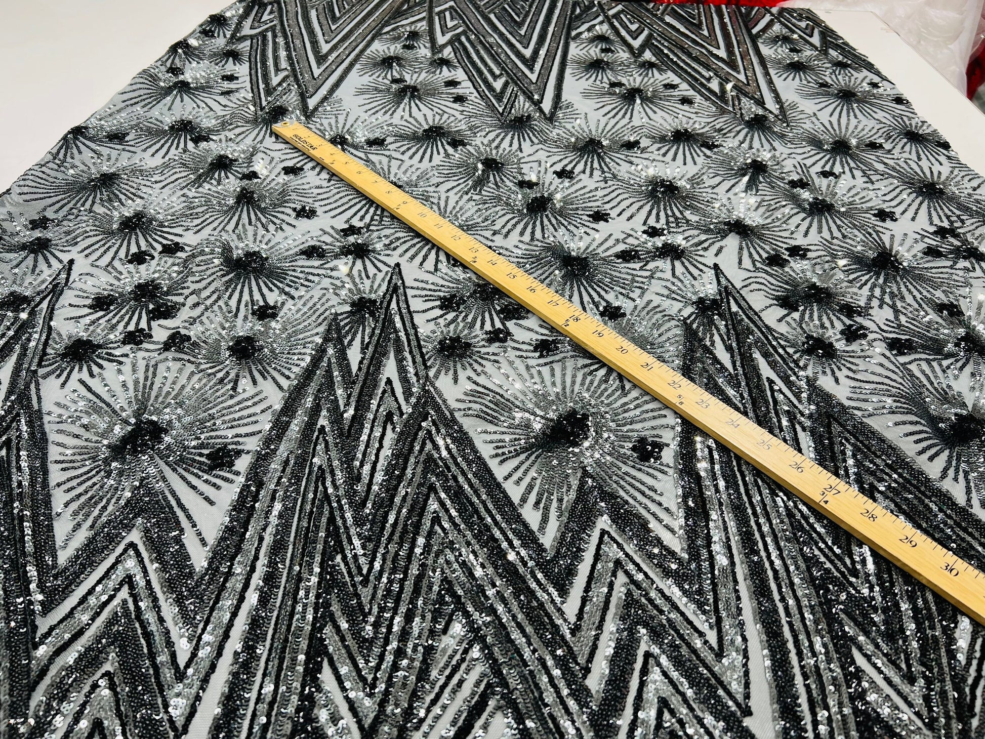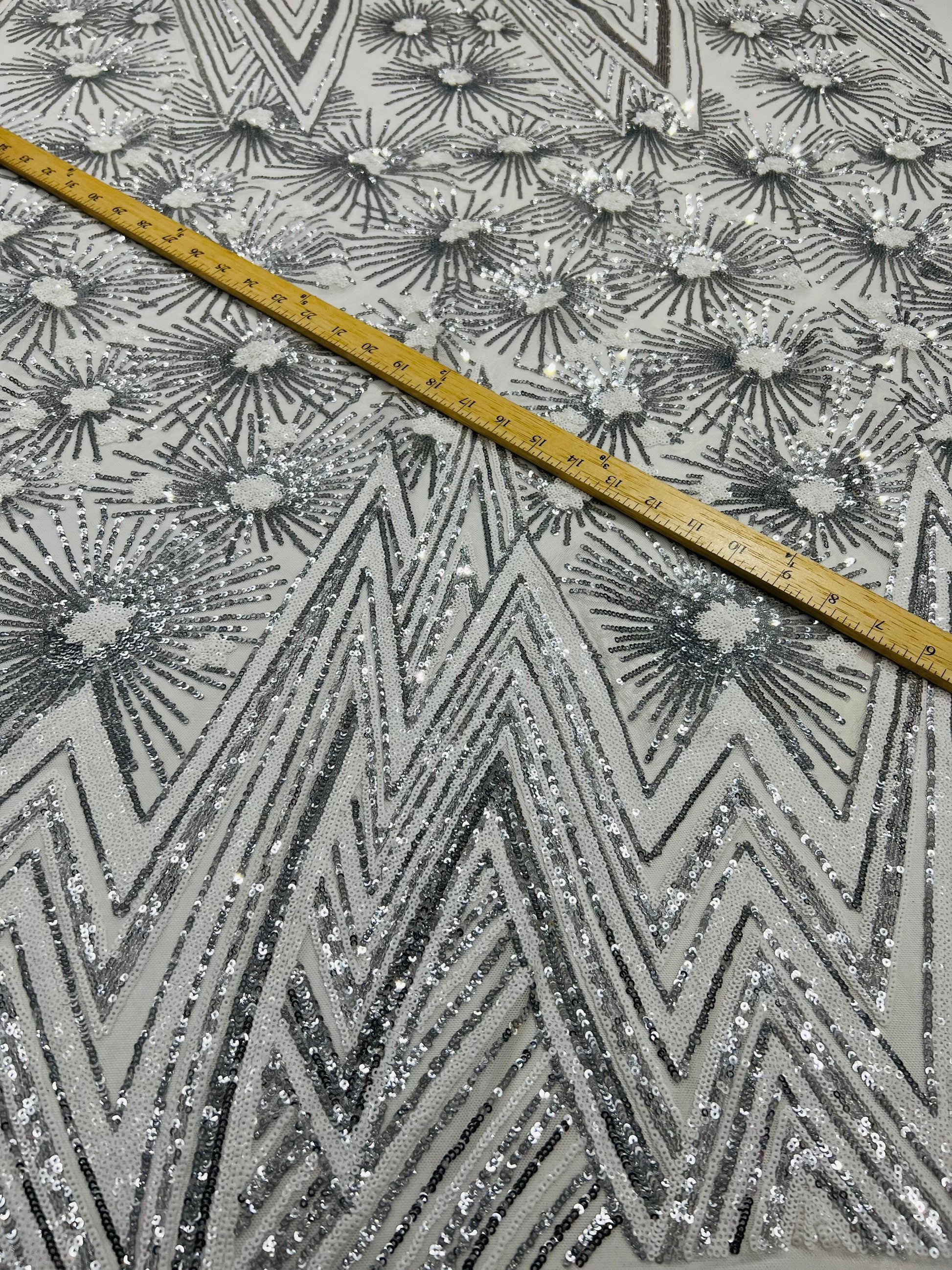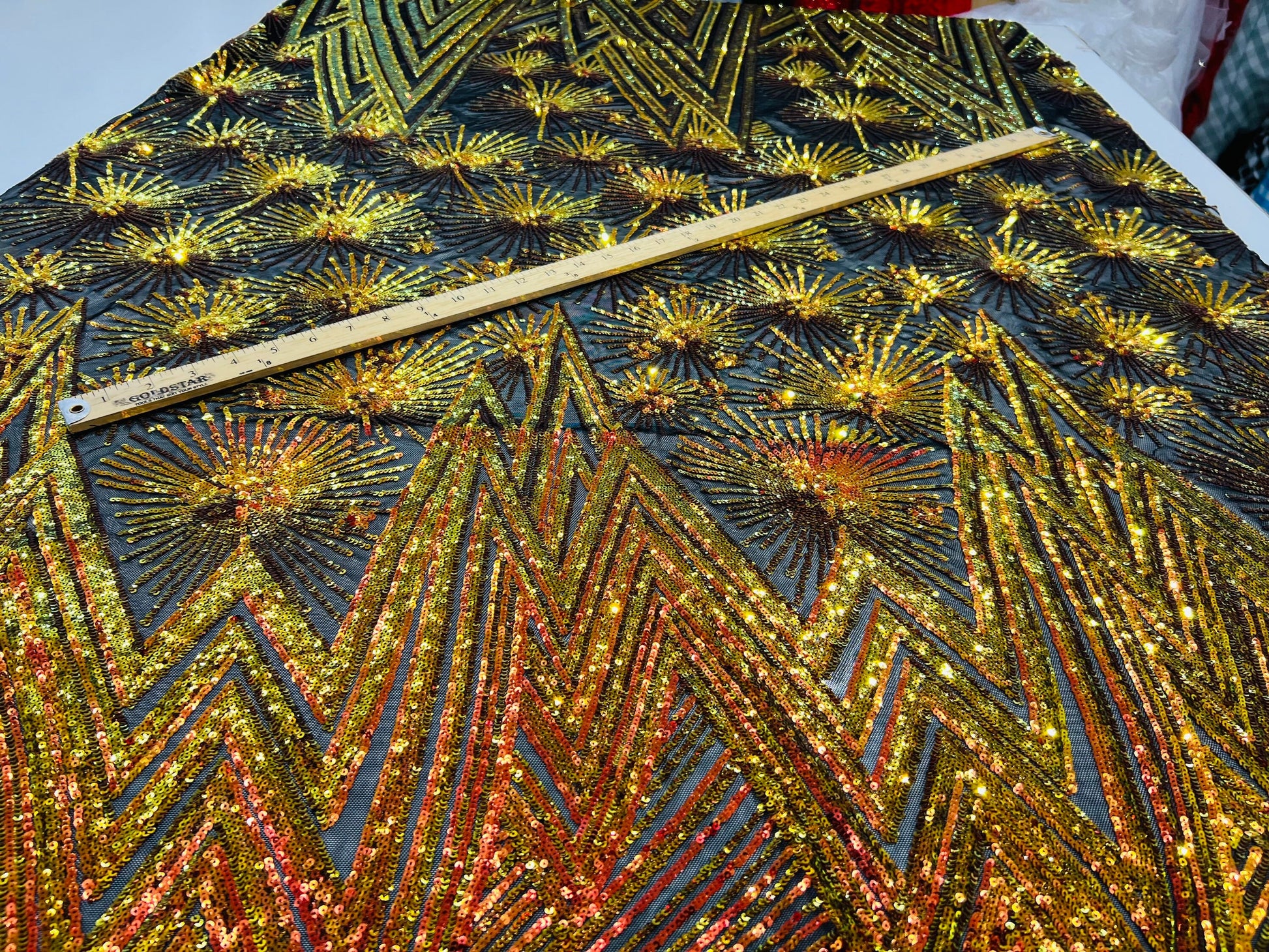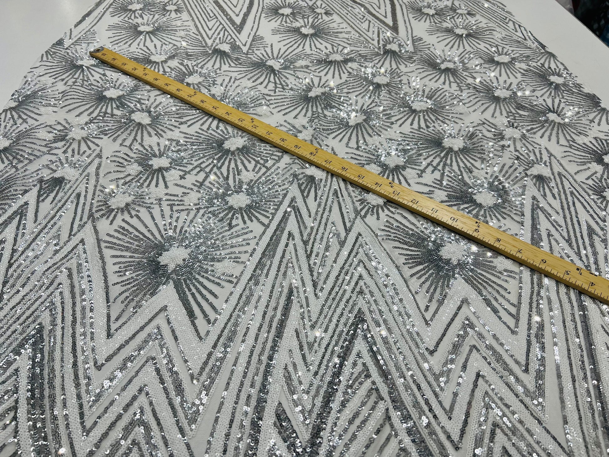 New Luxury sequins Geometric design embroidered on stretch mesh 2-way stretch 55/57” Sold by the YD. Ships Worldwide from Los Angeles California USA.